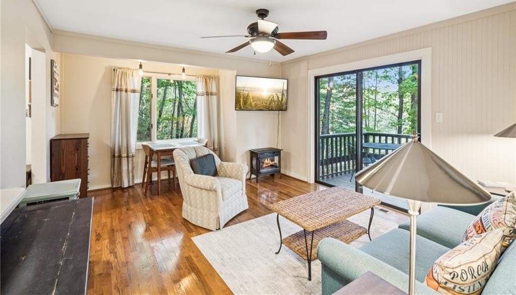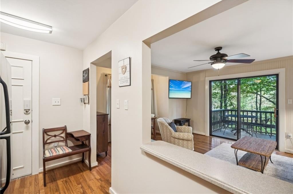 Discover the perfect mountain retreat in this beautifully updated 1 bedroom, 1 bath condo nestled in the heart of Big Canoe. Offering both comfort and style, this home features a private, covered entry with space for storage. Upon entering you will see beautiful hardwood floors throughout, a completely renovated kitchen with modern finishes including SS appliances, new cabinetry and a spacious pantry, a large living and dining space which includes a sleeper sofa with LAZBOY Tempur mattress for guests and access to a covered deck where you can where you can take in peaceful, seasonal lake views and the tranquil sounds of the forest and creek. Step into the primary suite with wooded views, his and hers closets and an updated bathroom with a spacious, newly tiled, walk-in shower and built in shelving for extra storage and a laundry closet with stackable washer and dryer. Whether you’re seeking a weekend getaway, a full-time residence, or an investment opportunity, this condo delivers the ideal blend of privacy, convenience, and mountain charm and is being sold furnished so just bring your toothbrush! It is located just minutes from Big Canoe’s amenities—including golf, tennis, pickleball, bocce, fitness center, indoor and outdoor pools, hiking trails, lakes, a marina and the clubhouse—this move-in-ready condo invites you to experience the best of mountain living in a secure, gated community just an hour north of Atlanta.