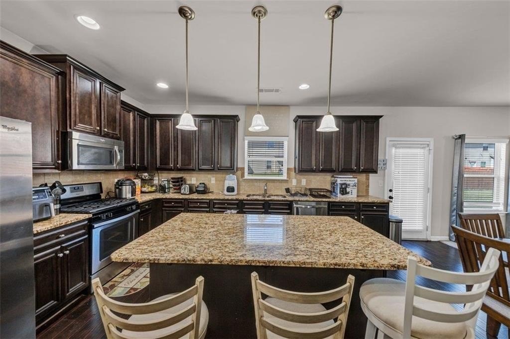 Welcome to this spacious 4-bedroom, 2.5-bath home perfectly situated in a prime location just minutes from the airport, public transit, shops, and restaurants. This beautifully designed residence features an open-concept layout with soaring ceilings on the main level, multiple entertaining areas, and a cozy fireplace in the living room. The kitchen is a chef’s dream with granite countertops, a large island, and a sunny breakfast area—ideal for casual dining and gatherings. A convenient guest restroom is also located on the main level. Retreat upstairs to the oversized primary suite, offering a luxurious ensuite bathroom with double vanity, separate shower and soaking tub, and a generous walk-in closet. Additional bedrooms provide ample space for family, guests, or a home office. Enjoy outdoor living in the spacious backyard, perfect for relaxing or entertaining. The community features sidewalks, a clubhouse, and a sparkling pool—offering a true neighborhood feel with resort-style amenities. Don’t miss this exceptional opportunity in one of the area’s most convenient and connected locations!