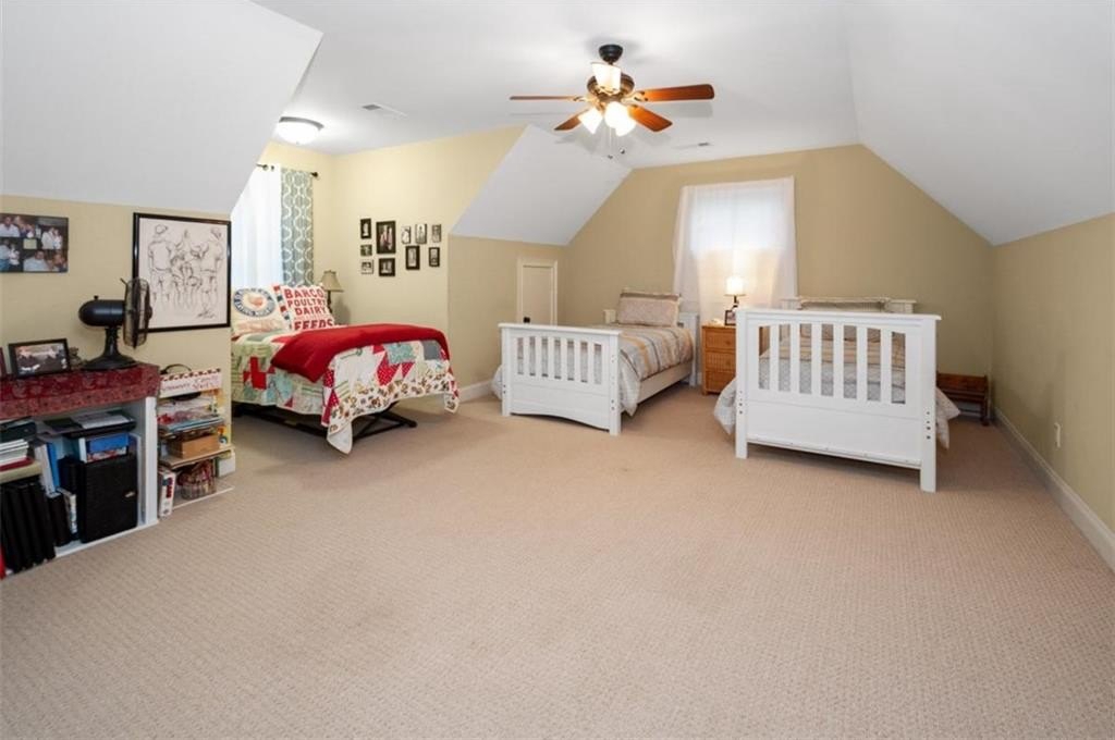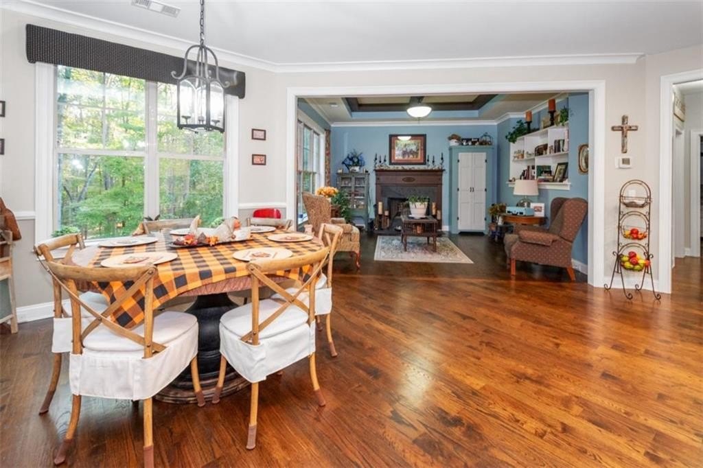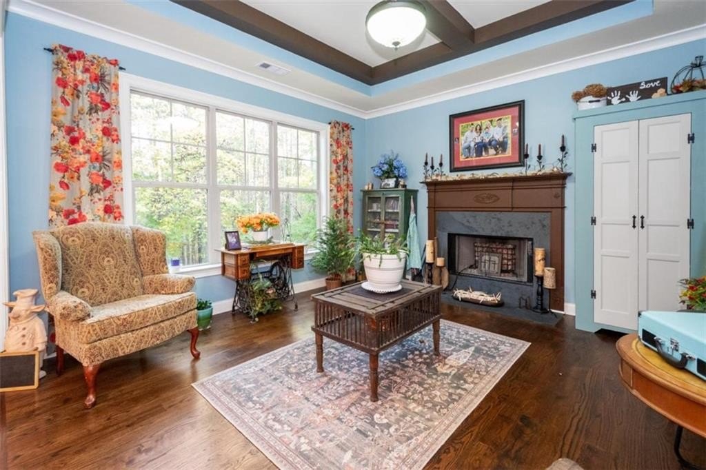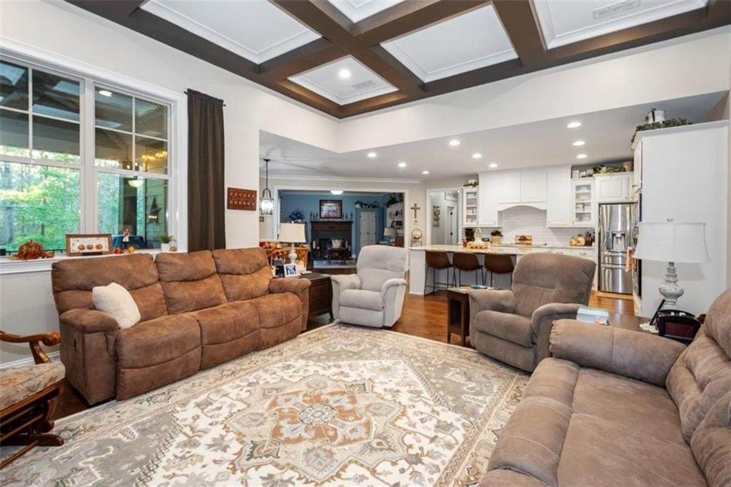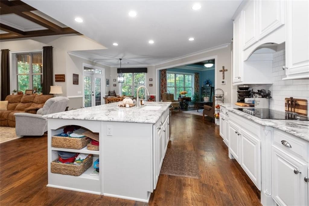 Discover timeless craftsmanship and modern comfort in this beautiful 4 bedroom, 5 full bath home nestled on 3.5 acres with a flowing creek at the back of the property. Designed for both elegance and everyday living, this home offers spacious interiors, high-end finishes and a layout that perfectly blends functionality with luxury. Step into the grand foyer that opens to a formal dining room with coffered ceiling and ample space for entertaining. The family room features a wood-burning fireplace creating a warm, inviting atmosphere that overlooks a private deck. A keeping room with its own fireplace and a bright breakfast area adjoin the gourmet kitchen, complete with granite countertops, custom cabinetry, stainless steel appliances, massive island and a butlers pantry for added convenience. A private home office, mudroom and medium office/study offer flexible spaces for work and organization. The main level primary suite serves as a peaceful retreat, featuring a luxurious ensuite bath with dual vanities, a soaking tub, separate shower and a spacious walk-in closet. The upper floor includes two spacious bedrooms, each with access to its own full bath, plus a bonus room ideal for a playroom or media space. The fully finished basement provides exceptional flexibility, offering the perfect setup for an in-law suite or private apartment with living space, kitchenette, bedroom and full bath. Additional storage areas, storm shelter and a wine cellar space ready to be finished add even more appeal. Enjoy the peaceful setting with 3.5 acres of perfectly manicured lawn with a seven zone irrigation system, mature trees complemented by a flowing creek enhances the property's charm. A 12X40 workshop provides ample room for hobbies, projects, or equipment storage, while the two car garage ensures convenience, as well as, ample space for additional parking. This exceptional property combines luxury living with natural beauty- ideal for those seeking space, privacy and craftsmanship in a stunning setting.
