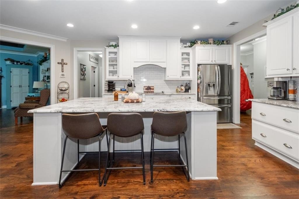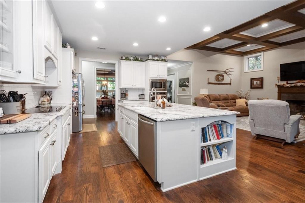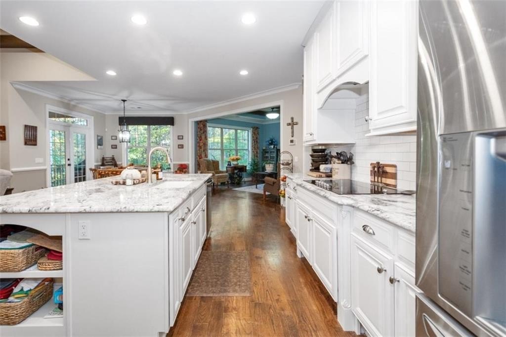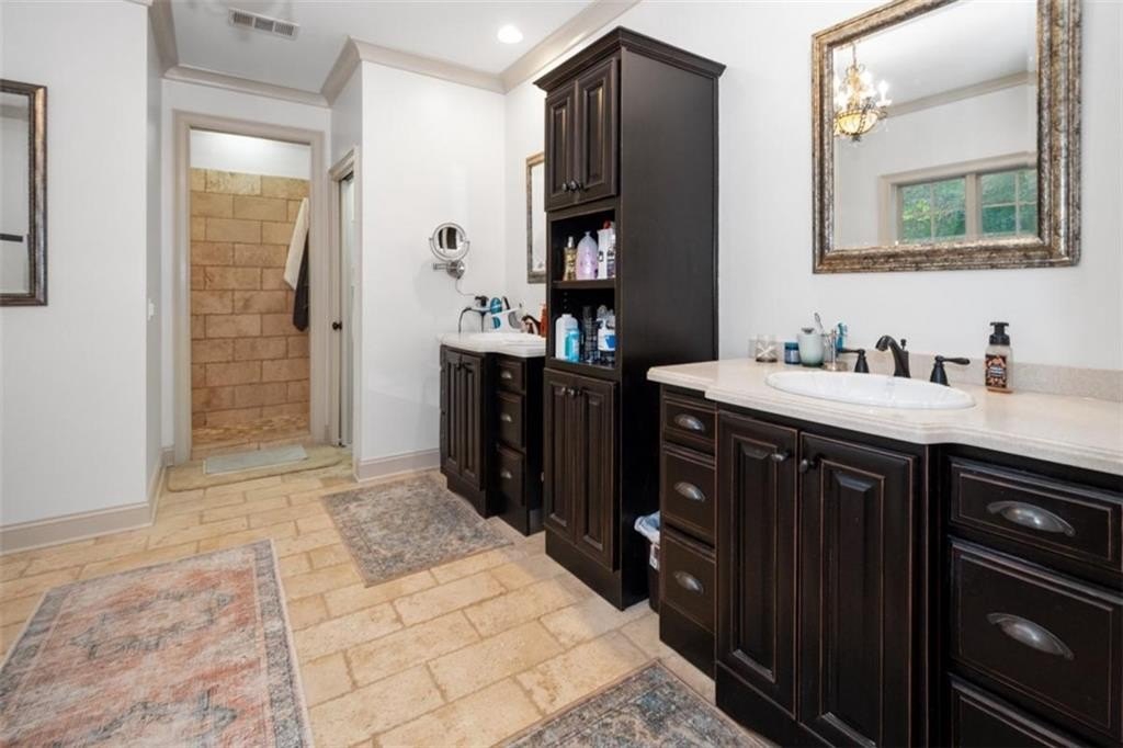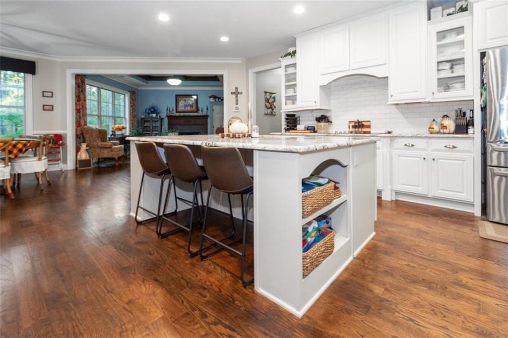 Discover timeless craftsmanship and modern comfort in this beautiful 4 bedroom, 5 full bath home nestled on 3.5 acres with a flowing creek at the back of the property. Designed for both elegance and everyday living, this home offers spacious interiors, high-end finishes and a layout that perfectly blends functionality with luxury. Step into the grand foyer that opens to a formal dining room with coffered ceiling and ample space for entertaining. The family room features a wood-burning fireplace creating a warm, inviting atmosphere that overlooks a private deck. A keeping room with its own fireplace and a bright breakfast area adjoin the gourmet kitchen, complete with granite countertops, custom cabinetry, stainless steel appliances, massive island and a butlers pantry for added convenience. A private home office, mudroom and medium office/study offer flexible spaces for work and organization. The main level primary suite serves as a peaceful retreat, featuring a luxurious ensuite bath with dual vanities, a soaking tub, separate shower and a spacious walk-in closet. The upper floor includes two spacious bedrooms, each with access to its own full bath, plus a bonus room ideal for a playroom or media space. The fully finished basement provides exceptional flexibility, offering the perfect setup for an in-law suite or private apartment with living space, kitchenette, bedroom and full bath. Additional storage areas, storm shelter and a wine cellar space ready to be finished add even more appeal. Enjoy the peaceful setting with 3.5 acres of perfectly manicured lawn with a seven zone irrigation system, mature trees complemented by a flowing creek enhances the property's charm. A 12X40 workshop provides ample room for hobbies, projects, or equipment storage, while the two car garage ensures convenience, as well as, ample space for additional parking. This exceptional property combines luxury living with natural beauty- ideal for those seeking space, privacy and craftsmanship in a stunning setting.