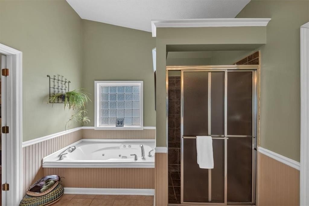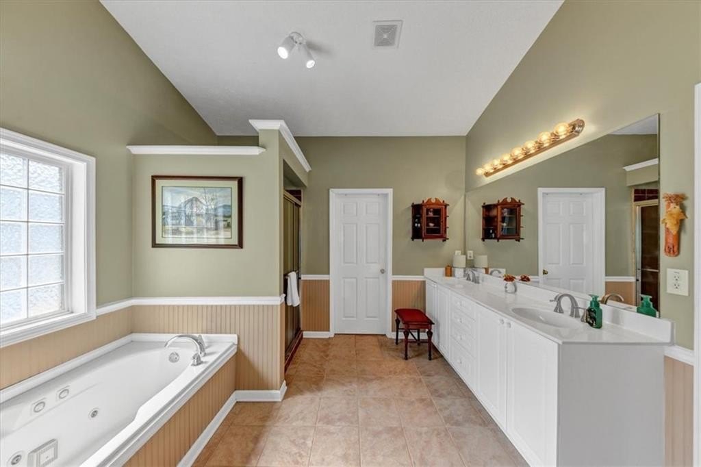 The primary suite offers a private retreat with a double vanity, garden tub, separate shower, private water closet, and a large walk-in closet. Two generous secondary bedrooms, a spacious laundry room, and a full bathroom with linen closet complete the main level.