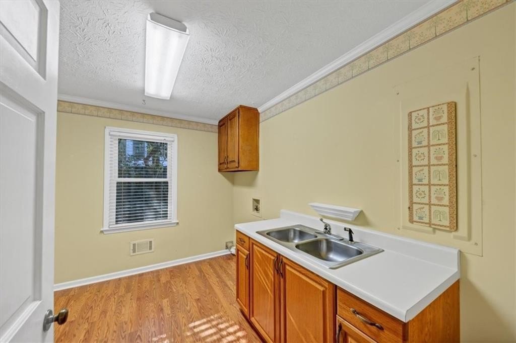 The family room centers around a cozy fireplace with built-in cabinets, creating a comfortable space for everyday living. Separate living and dining rooms offer additional areas for entertaining, quiet gatherings or a home office. A spacious laundry room with a built in sink and cabinets, as well as a storage closet, keep things organized and functional.