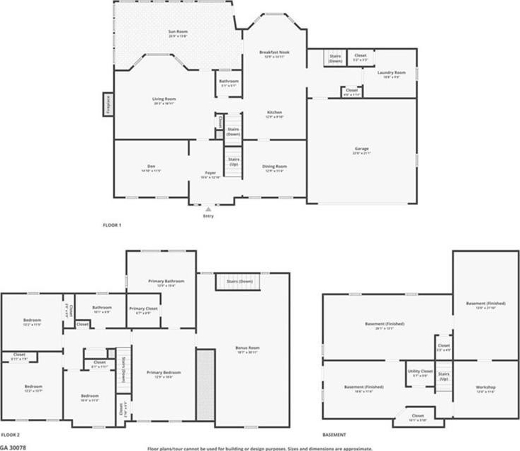 Upstairs, the primary suite offers plenty of space with two closets, a soaking tub, walk-in shower, and double vanity. Three additional bedrooms and a bonus room provide flexibility for guests, work, or play.