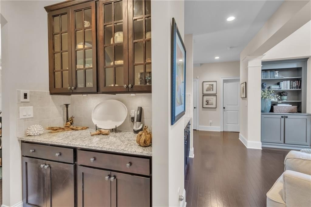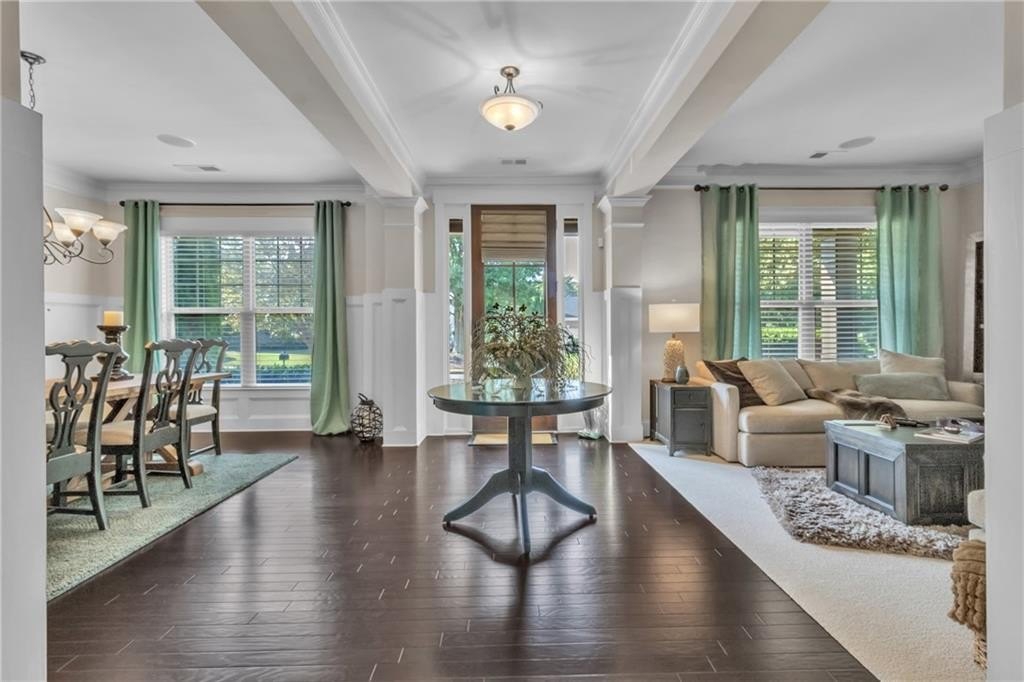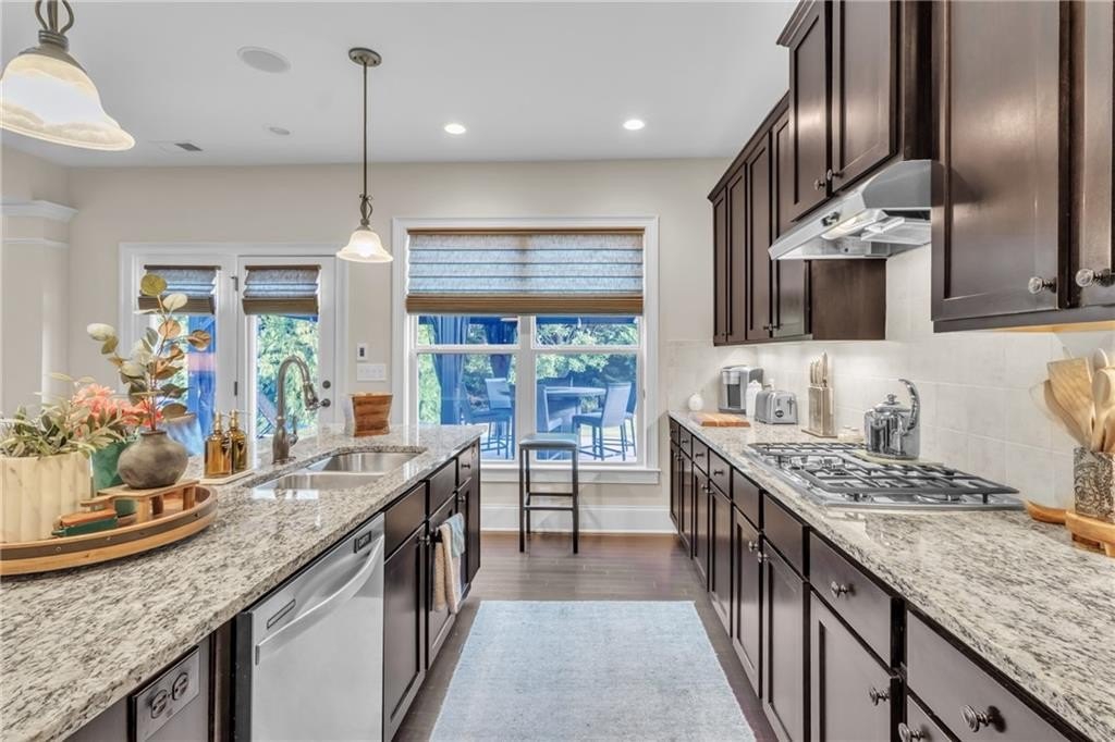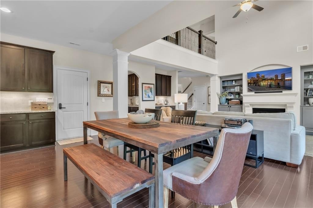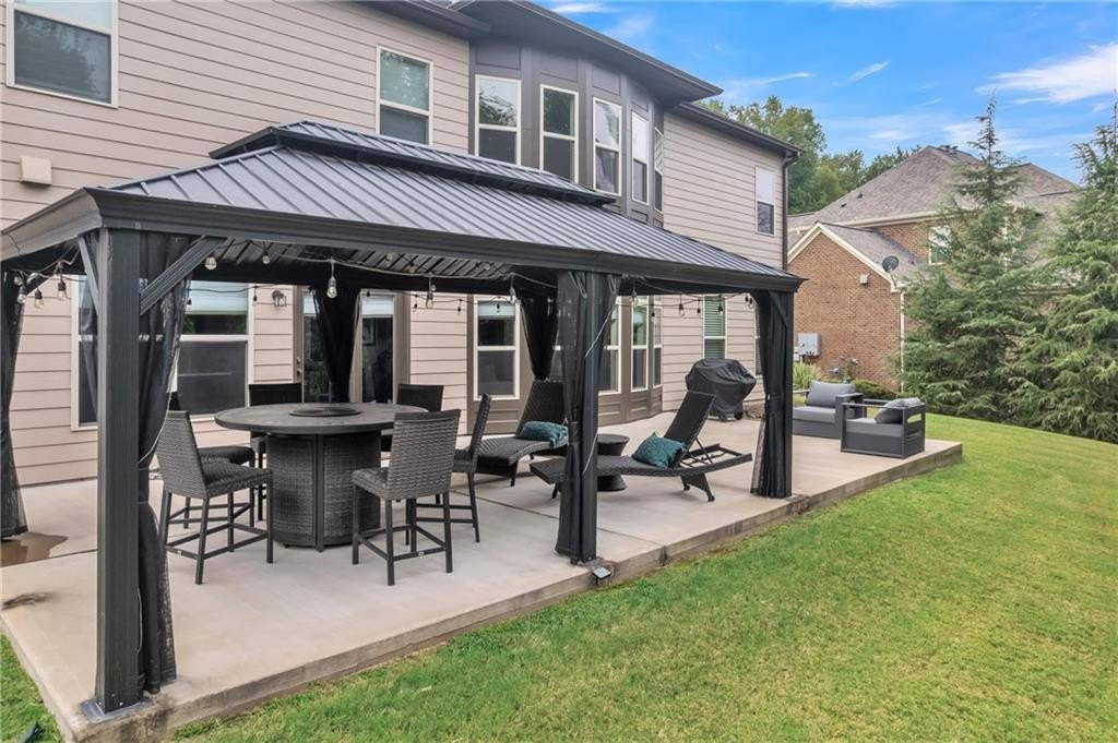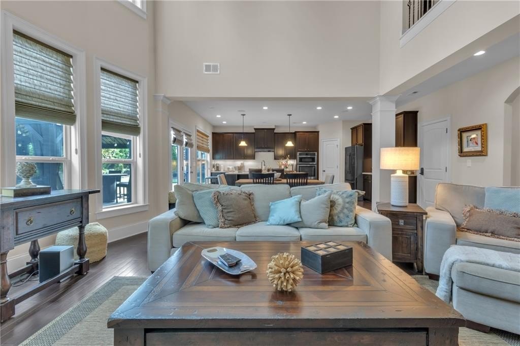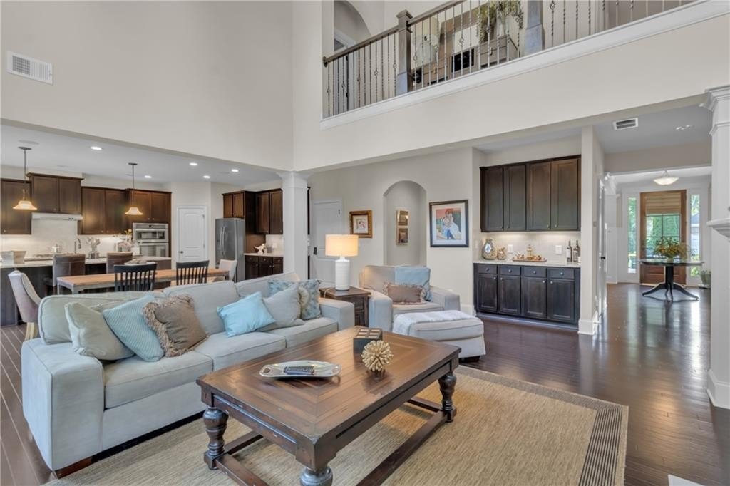 Welcome to a home where thoughtful upgrades meet everyday livability in one of Cumming's most desirable communities, Marseille. Offering approximately 3,465 square feet, five bedrooms, and three full baths, this residence delivers space, style, and an exceptional location designed for both daily life and effortless entertaining. Curb appeal makes a strong first impression with professional landscaping, an extended driveway, and a three-car garage. Inside, the main level is anchored by rich mocha oak hardwoods, soaring ceilings, and abundant natural light. Formal living and dining rooms create an ideal setting for gatherings, while a main-level guest suite with full bath adds flexibility for visitors or multigenerational living. At the center of the home, the open-concept family room features elegant built-ins, a fireplace, and dramatic floor-to-ceiling windows with tailored window treatments. The space flows seamlessly into the gourmet kitchen, complete with granite countertops, upgraded cabinetry, under-cabinet lighting, a cohesive tile backsplash, and a large island perfect for hosting or casual meals. Upstairs, the primary suite offers a true retreat, highlighted by a private coffee bar and a spa-inspired bath designed for unwinding at the end of the day. Secondary bedrooms provide generous, versatile space for home offices, playrooms, or media use, all enhanced by new carpeting installed in 2025 and updated lighting. This home is equipped with smart features throughout, including a Google Nest thermostat, smart locks, whole-home surround sound, and automated lighting. Recent improvements provide peace of mind with a new AC system in 2021, new garage doors in 2024, and fresh interior paint. Step outside to a private, fenced backyard designed for both relaxation and entertaining. The custom patio and pavilion, paired with an irrigation system and lush lawn, create a true outdoor living experience, whether hosting summer gatherings or enjoying quiet evenings under the stars. Residents of Marseille enjoy access to tennis courts, a community pool, and family-friendly amenities, all just minutes from Vickery Village, Cumming City Center, Halcyon, and Avalon.