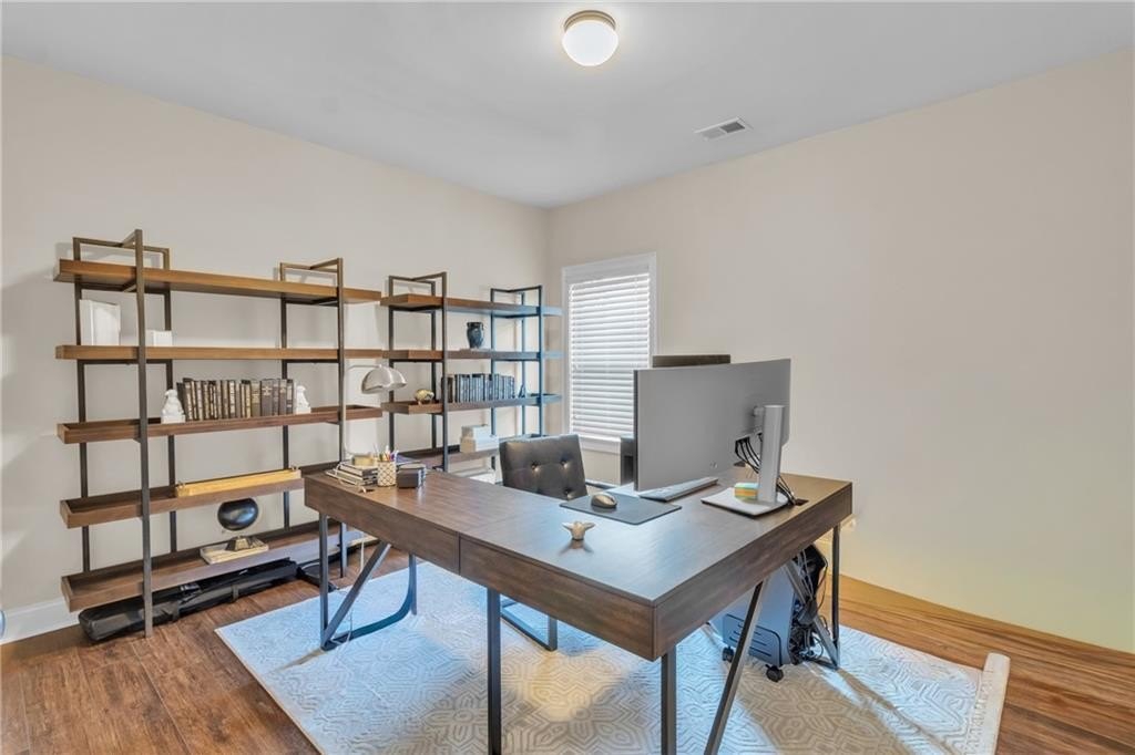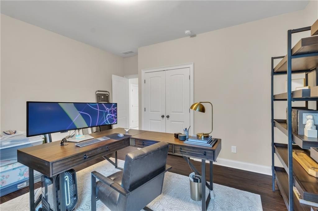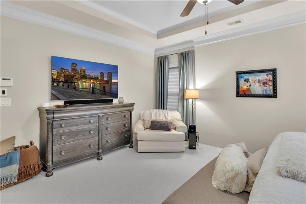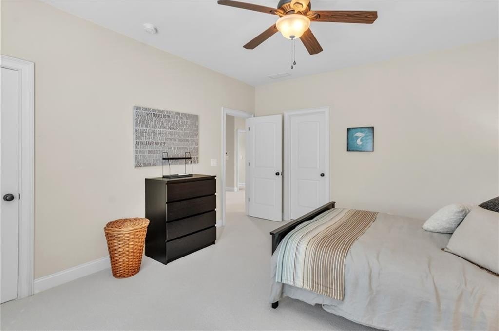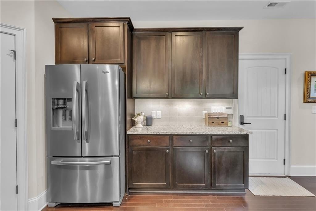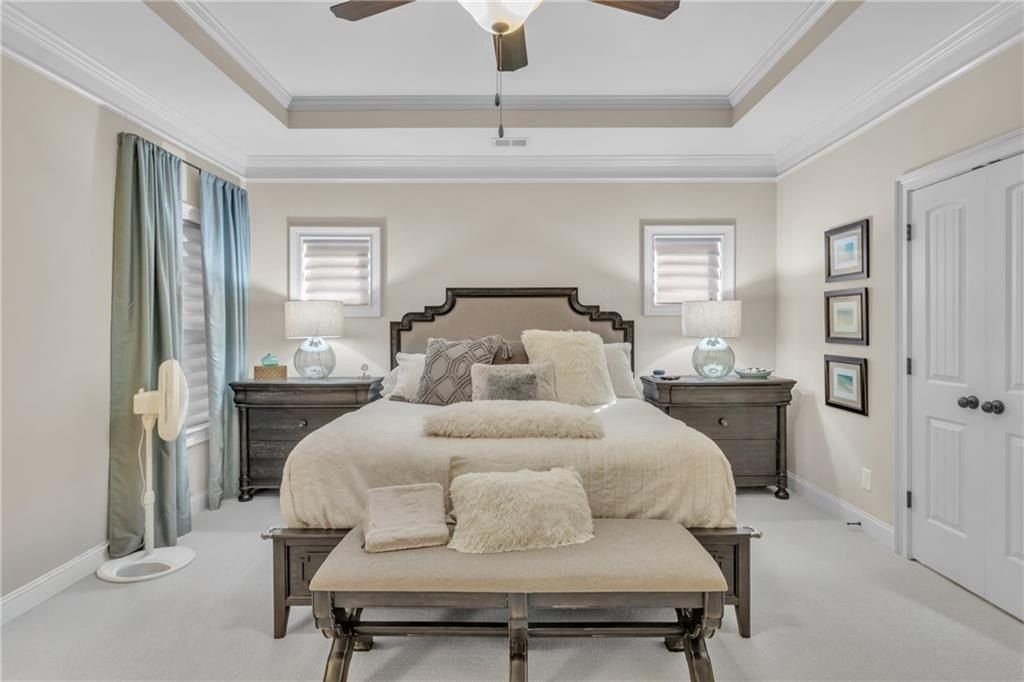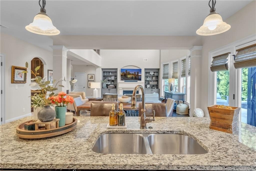 Welcome to a home where thoughtful upgrades meet everyday livability in one of Cumming's most desirable communities, Marseille. Offering approximately 3,465 square feet, five bedrooms, and three full baths, this residence delivers space, style, and an exceptional location designed for both daily life and effortless entertaining. Curb appeal makes a strong first impression with professional landscaping, an extended driveway, and a three-car garage. Inside, the main level is anchored by rich mocha oak hardwoods, soaring ceilings, and abundant natural light. Formal living and dining rooms create an ideal setting for gatherings, while a main-level guest suite with full bath adds flexibility for visitors or multigenerational living. At the center of the home, the open-concept family room features elegant built-ins, a fireplace, and dramatic floor-to-ceiling windows with tailored window treatments. The space flows seamlessly into the gourmet kitchen, complete with granite countertops, upgraded cabinetry, under-cabinet lighting, a cohesive tile backsplash, and a large island perfect for hosting or casual meals. Upstairs, the primary suite offers a true retreat, highlighted by a private coffee bar and a spa-inspired bath designed for unwinding at the end of the day. Secondary bedrooms provide generous, versatile space for home offices, playrooms, or media use, all enhanced by new carpeting installed in 2025 and updated lighting. This home is equipped with smart features throughout, including a Google Nest thermostat, smart locks, whole-home surround sound, and automated lighting. Recent improvements provide peace of mind with a new AC system in 2021, new garage doors in 2024, and fresh interior paint. Step outside to a private, fenced backyard designed for both relaxation and entertaining. The custom patio and pavilion, paired with an irrigation system and lush lawn, create a true outdoor living experience, whether hosting summer gatherings or enjoying quiet evenings under the stars. Residents of Marseille enjoy access to tennis courts, a community pool, and family-friendly amenities, all just minutes from Vickery Village, Cumming City Center, Halcyon, and Avalon.