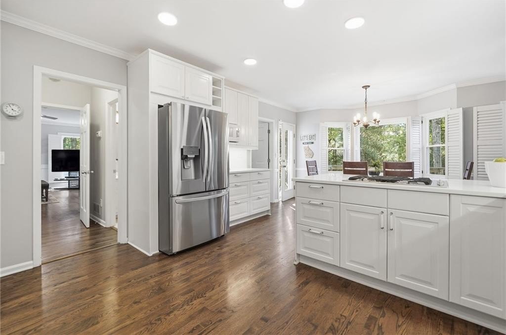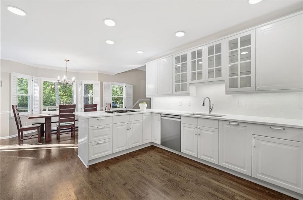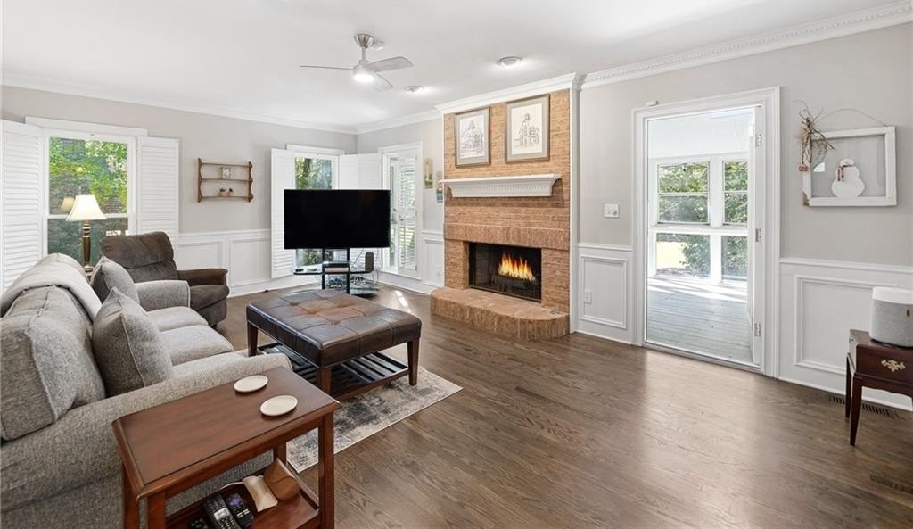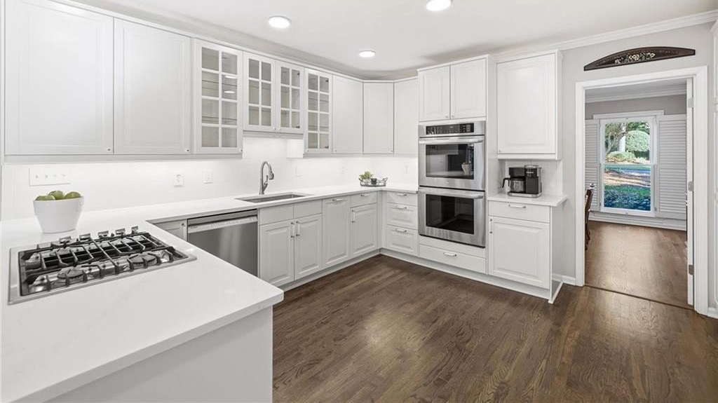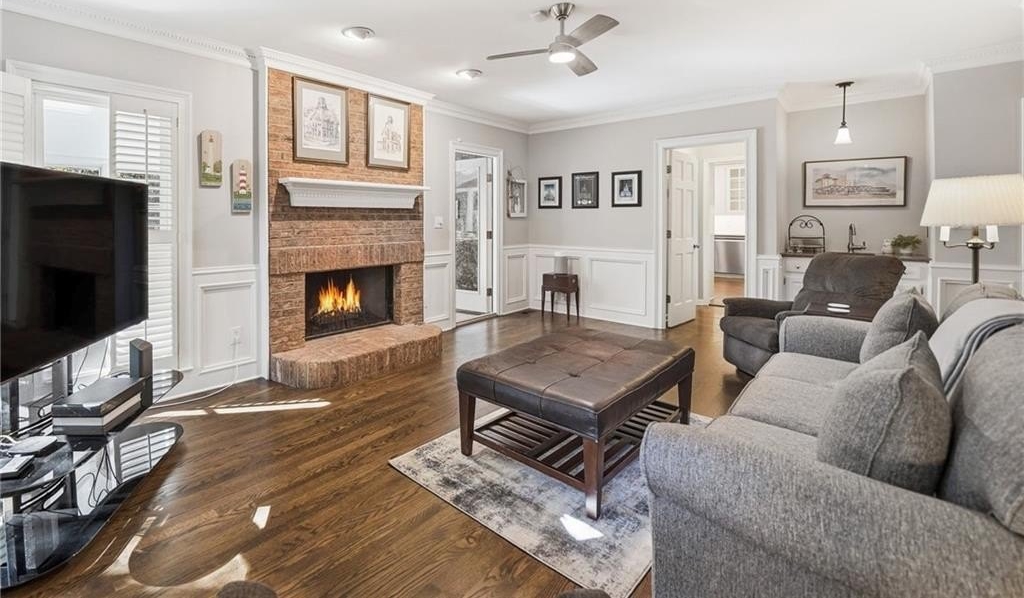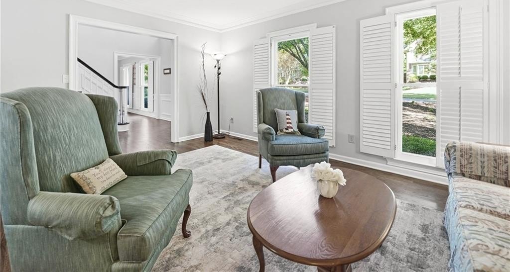 Don't miss the opportunity to make this beautiful 5 bedroom, 4.5 bath home in highly sought-after Country Club of Roswell - Willow Springs your own! Perched on the 7th tee box of the CCR golf course, this fabulous Hardcoat stucco home offers hardwood floors, spacious bedrooms, cozy sunroom overlooking the wooded backyard, and more! The main living level includes a two-story foyer, formal dining room, formal living room, fireside family room with convenient wet bar, sunroom, bonus room perfect for a home office, and a spacious updated kitchen complete with new quartz countertops, double oven, breakfast bar, and adjacent breakfast area! Upstairs, you’ll find 3 sizable guest bedrooms, two guest bathrooms, and the oversized primary bedroom with trey ceiling detail, walk-in closet, and large fully renovated ensuite bath with separate vanities, walk-in shower, and separate soaking tub! The full, finished daylight walkout terrace level includes a large open multi-purpose space, guest bedroom, and full guest bathroom, as well as additional storage space. This home offers plenty of opportunity for outdoor activities and entertaining with a low-maintenance Trex deck off of the main living level, and large tree-lined backyard adjacent to the golf course! The Country Club of Roswell (membership not included) offers tons of fabulous amenities such as a pool, golf course, tennis courts, workout facilities, bar, wine club/dinners, full dining service, and much more! Very active HOA with loads of family activities, concerts/movies at the park and more throughout the year! DON'T WAIT, be sure to schedule your showings ASAP!