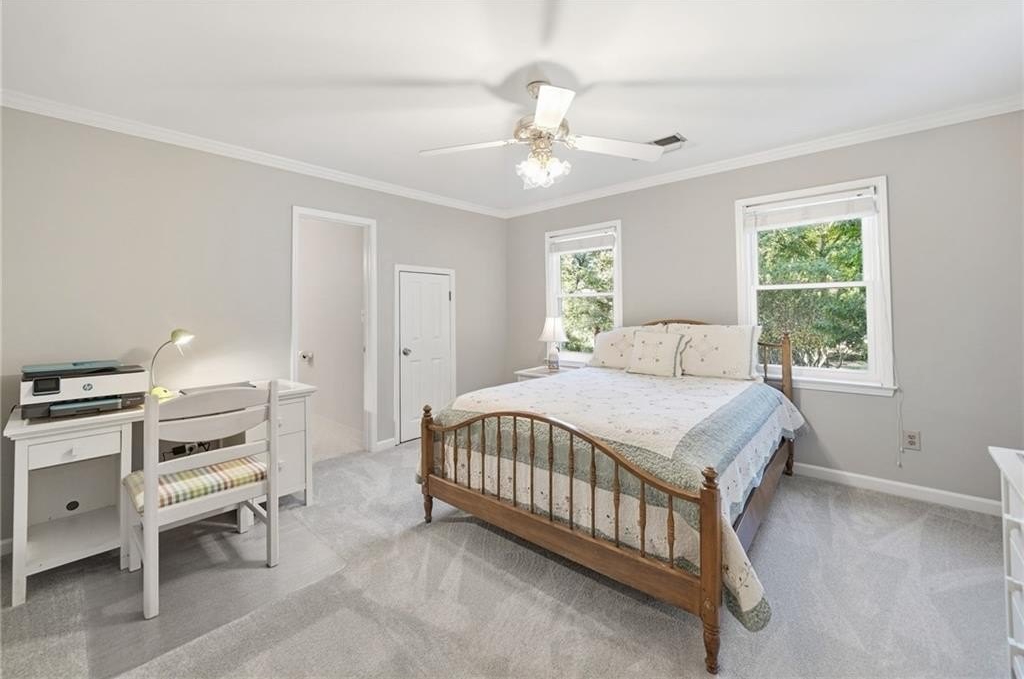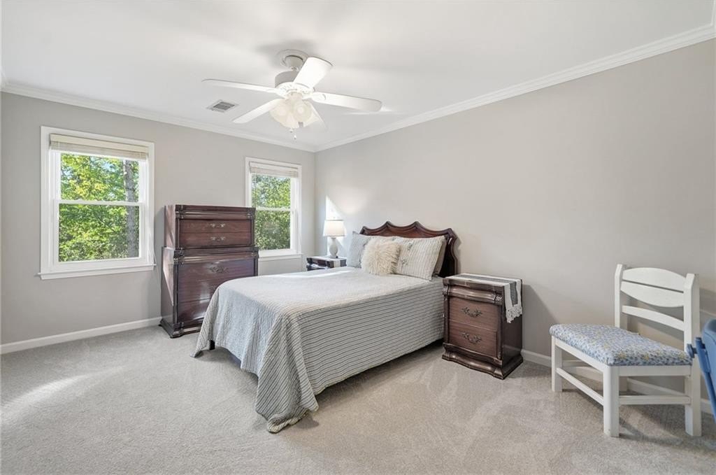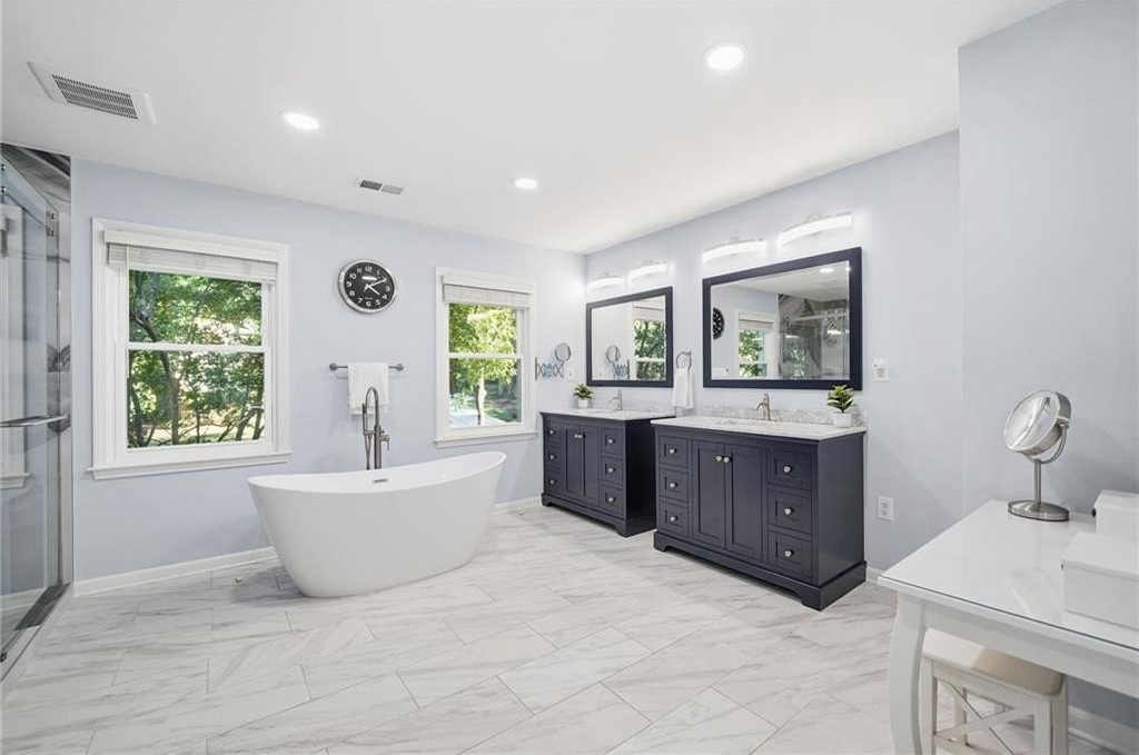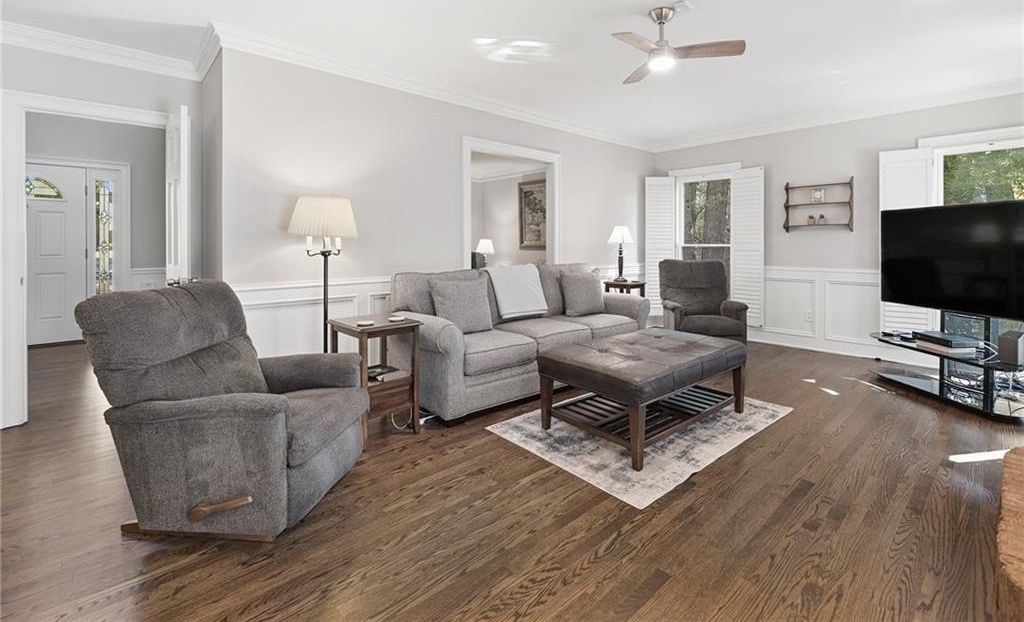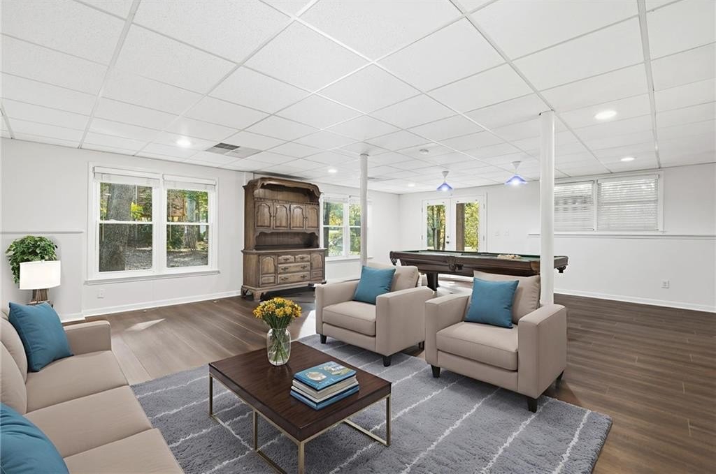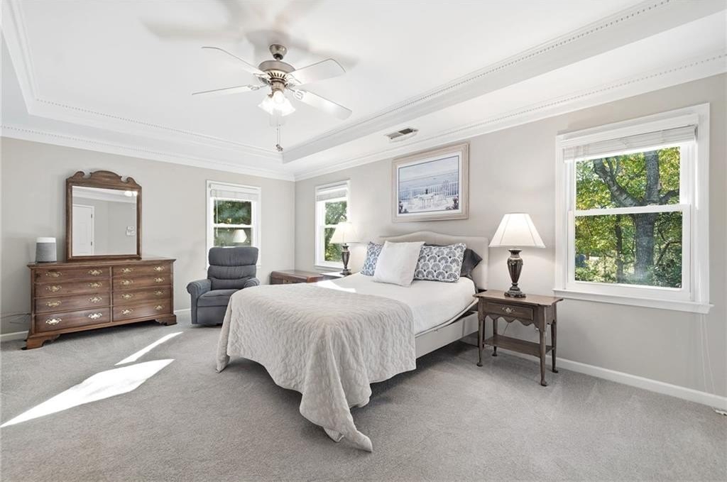 Don't miss the opportunity to make this beautiful 5 bedroom, 4.5 bath home in highly sought-after Country Club of Roswell - Willow Springs your own! Perched on the 7th tee box of the CCR golf course, this fabulous Hardcoat stucco home offers hardwood floors, spacious bedrooms, cozy sunroom overlooking the wooded backyard, and more! The main living level includes a two-story foyer, formal dining room, formal living room, fireside family room with convenient wet bar, sunroom, bonus room perfect for a home office, and a spacious updated kitchen complete with new quartz countertops, double oven, breakfast bar, and adjacent breakfast area! Upstairs, you’ll find 3 sizable guest bedrooms, two guest bathrooms, and the oversized primary bedroom with trey ceiling detail, walk-in closet, and large fully renovated ensuite bath with separate vanities, walk-in shower, and separate soaking tub! The full, finished daylight walkout terrace level includes a large open multi-purpose space, guest bedroom, and full guest bathroom, as well as additional storage space. This home offers plenty of opportunity for outdoor activities and entertaining with a low-maintenance Trex deck off of the main living level, and large tree-lined backyard adjacent to the golf course! The Country Club of Roswell (membership not included) offers tons of fabulous amenities such as a pool, golf course, tennis courts, workout facilities, bar, wine club/dinners, full dining service, and much more! Very active HOA with loads of family activities, concerts/movies at the park and more throughout the year! DON'T WAIT, be sure to schedule your showings ASAP!