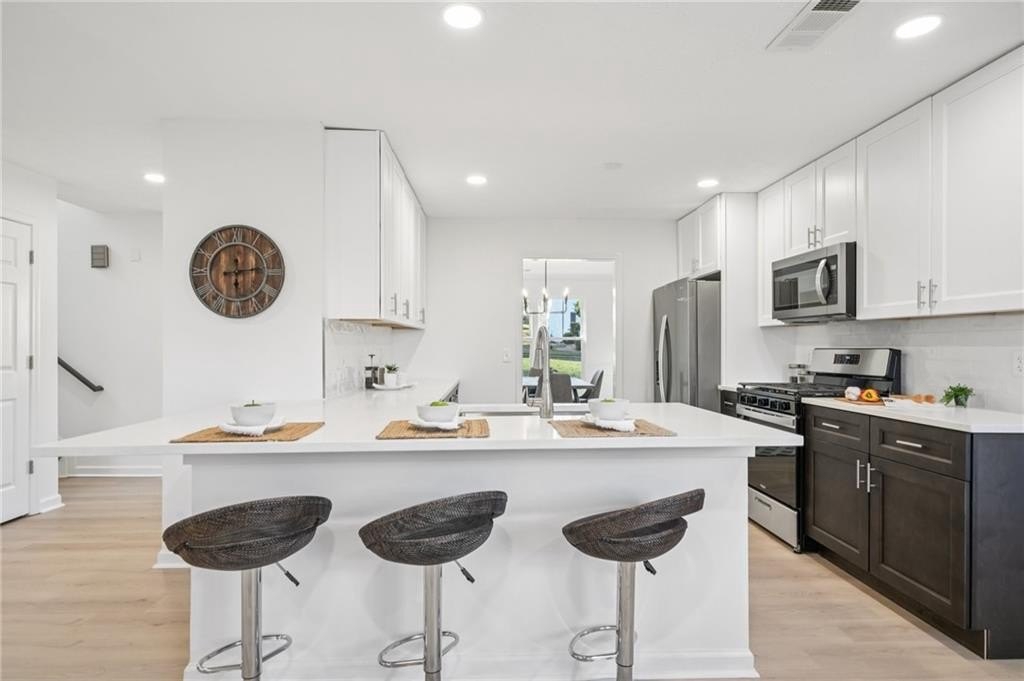 LIKE NEW CONSTRUCTION in the heart of Lawrenceville! 537 Sydney Michelle Lane is unlike any other home you'll see. Refinished from top to bottom, brand new landscaping, custom upgrades and so much more! As soon as you enter this home you're greeted by a freshly sod yard, and clean exterior. Inside you're greeted by a formal foyer with views into the private dining & living room. Gorgeous light brand new luxury vinyl plank floors, freshly painted interior, BRAND NEW WINDOWS, carpet and lighting! Not one thing has gone untouched in this Lawrenceville home! The dining room is open and inviting and leads to a sparkling kitchen. Kitchen has custom cabinets, quartz countertops, tile backsplash, walk-in pantry and BRAND NEW stainless steel appliances that cost $3,000. Breakfast bar counters overlook the eat in kitchen and family room. Fireside family room is light and bright with recessed lighting and clear windows. Water views are seen from every room of this home! It's like NEW CONSTRUCTION! Upstairs includes four beds, two and a half baths and TONS of storage. Primary suite has tall vaulted ceilings, new carpet and a true spa-like bathroom! Walk in tile shower with seamless glass and dual head systems, new toilet, double vanities with plenty of storage and massive walk in closet. Three more well sized bedrooms all have the same fresh feel and large closets. Laundry room and bonus storage space are an added bonus! BRAND NEW two level deck built October 9th overlooks the private yard and water for year round seasonal views. Hot Water Heater, NEW Windows, Garage Door, EVERYTHING installed October 2025. Located walking distance & across the street to Discovery High School and Benefield Elementary School. 2 Miles from Northside Gwinnett Hospital, Grocery Stores, Restaurants, 3 miles to Gwinnett Technical College and so much more. Prime location with NO Rental Restrictions in a great school district. Over 100k in upgrades all make this home impeccable!