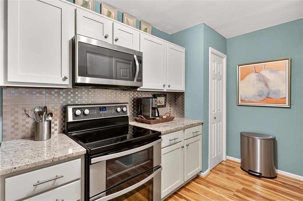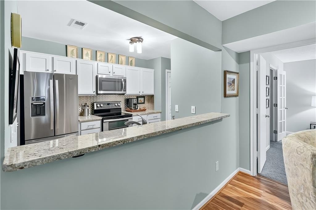 Welcome to this stunning 2-bedroom, 2-bath condo just minutes from Marietta Square. Fully updated, it features stainless steel appliances, granite countertops, beautiful hardwood floors, and new lighting in the kitchen and dining area. The main living area has had popcorn ceilings removed, giving it a fresh, modern feel. Enjoy the bright sunroom with plenty of windows and relax on your private lot in a quiet, beautifully maintained community, just down the street from Laura Park, a perfect blend of comfort, style, and convenience.