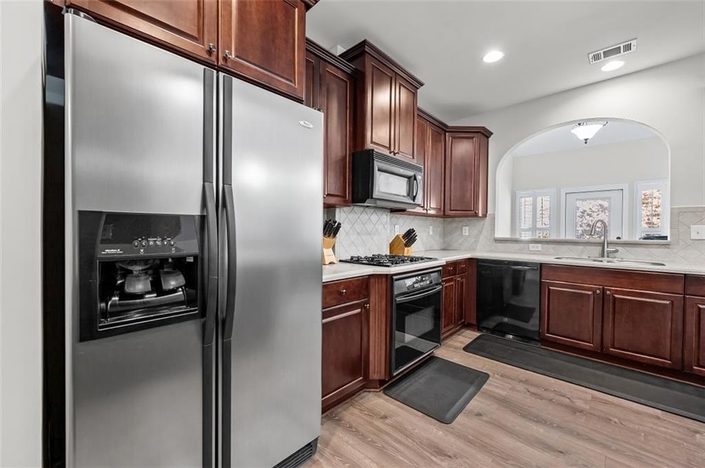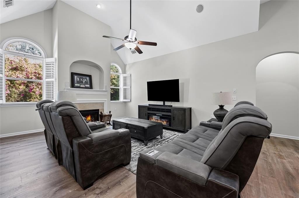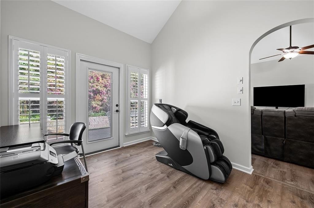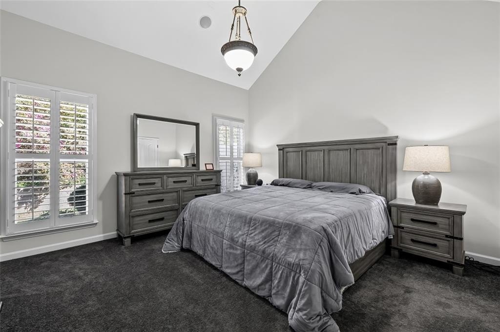 This beautifully refreshed Claremore Lake home is ready for you! It's been freshly painted throughout and has brand-new flooring in the main-level common areas. Everything feels light, bright, and ready for you to move right in. From the step-free entrance, you're welcomed into an open foyer that flows seamlessly into the den and kitchen which is perfect for gatherings, entertaining, or simply relaxing at home. The primary suite on the main level is a peaceful retreat with vaulted ceilings and a tranquil view of the private back patio with great landscaping. Another spacious bedroom and a full bath complete the main floor, while upstairs offers a versatile third bedroom with its own private bath which is ideal for guests, an office, or hobby space. Life in Claremore Lake is all about ease and connection. Enjoy a clubhouse, pool, exercise room, lawn care, exterior maintenance, and planned social activities, giving you more time to simply enjoy your surroundings. Step outside your door and walk to shopping, dining, and Onelife Fitness, or take a short drive to Downtown Woodstock and I-575 for even more convenience. With new roofs installed by the HOA in 2022, you can move in with confidence and peace of mind. This isn't just a house... it's a low-maintenance lifestyle, ready and waiting for you to make it your own.