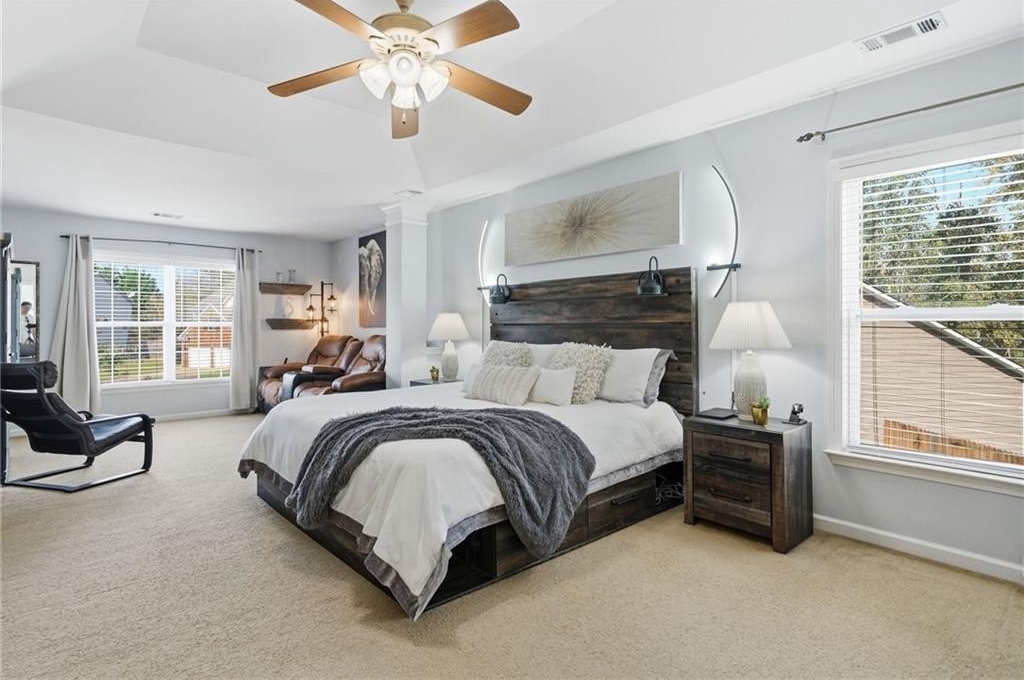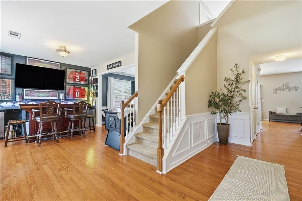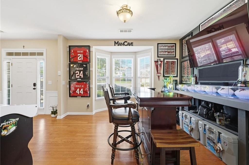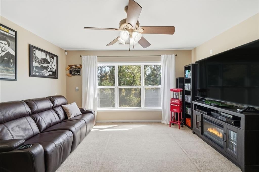 Tucked in a peaceful cul-de-sac with jaw-dropping curb appeal, this home will capture your heart before you even step inside! Located in sought-after Forsyth County, this beautiful home features a newer architectural-shingle roof, two new HVAC and furnace systems, and over $30k invested in luxury bathroom renovations. Built on a slab foundation, offering a long-term structural stability and low maintenance. As you enter, you’re greeted by a bright two-story foyer. To your left is a versatile room currently used as a bar and entertaining space, which can easily be converted back into a cozy sitting area if preferred. A large, separate dining room provides plenty of space for family gatherings and holiday dinners. The kitchen opens directly to the family room and includes a breakfast area, newer microwave and dishwasher, and generous counter space. From the kitchen, step out to the patio with a pergola perfect for outdoor entertaining or relaxing evenings. The fully fenced, flat backyard offers privacy and room to play. The two-car garage provides direct and convenient access to the kitchen, making unloading groceries a breeze. Upstairs, the oversized primary suite includes a sitting area, walk-in closet, and a fully renovated bath with double vanities, a soaking tub, and a separate shower. Three additional bedrooms plus a versatile loft/media room, laundry with newer washer and dryer, and another fully updated bathroom complete the upper level. Forsyth County continues to experience remarkable growth and development, making it one of the most desirable areas. With top-rated schools, expanding retail and dining options, nearby parks, and ongoing community improvements, this area offers the perfect blend of convenience, lifestyle, and long-term value. The neighborhood also features a pool, playground, tennis courts, perfect for staying active close to home. This home has been freshly painted on the exterior (2023), includes a termite bond, and has been lovingly maintained - ready for you to come see in person and move into your new home just in time for the holidays!