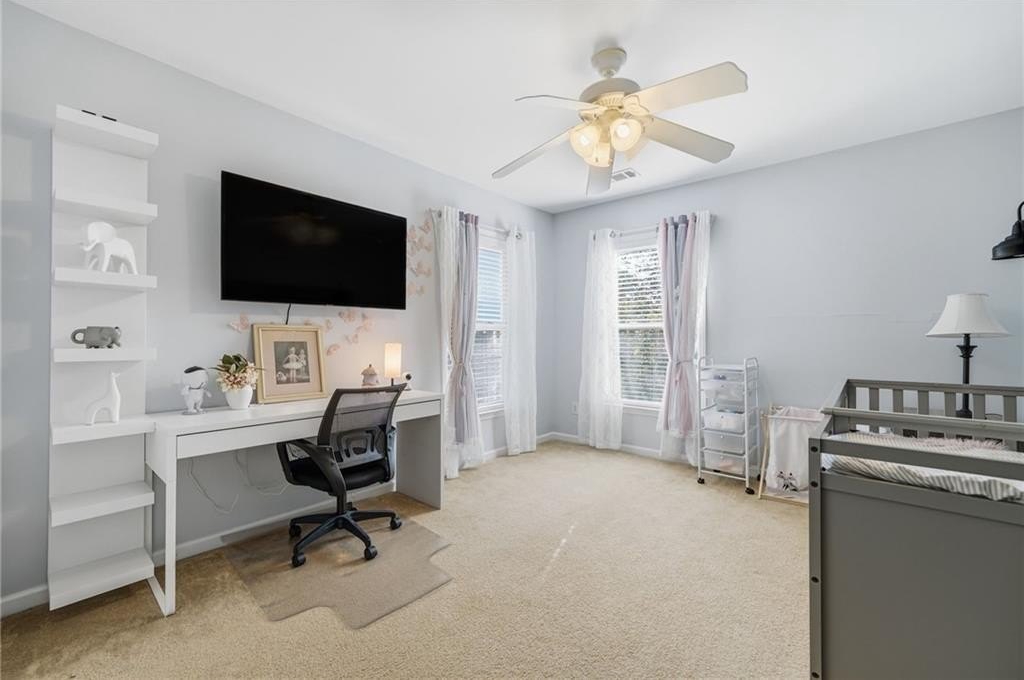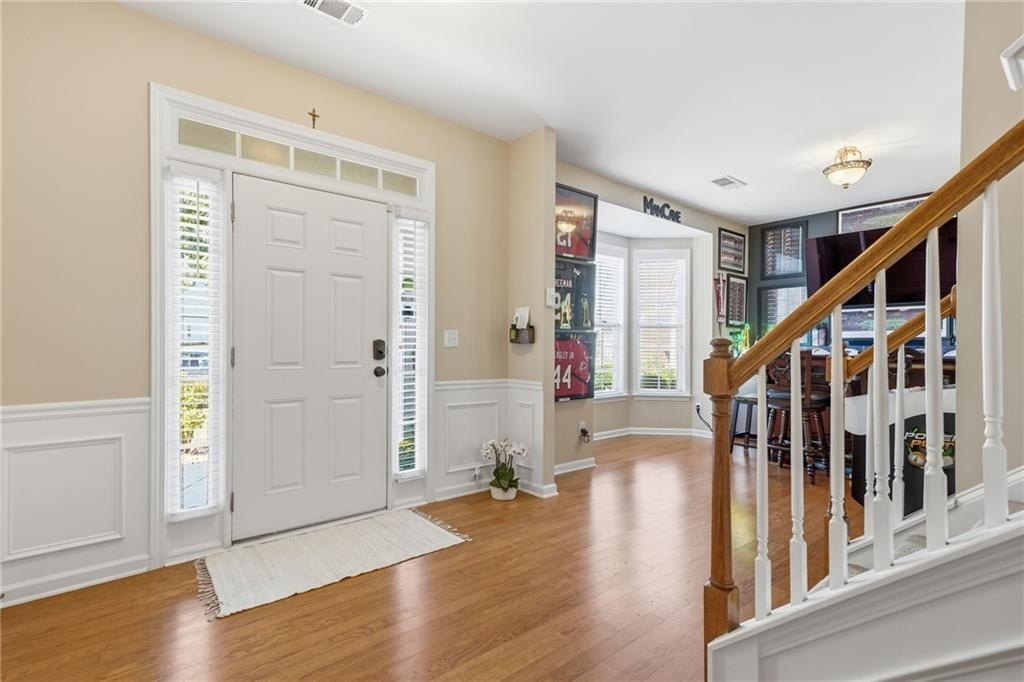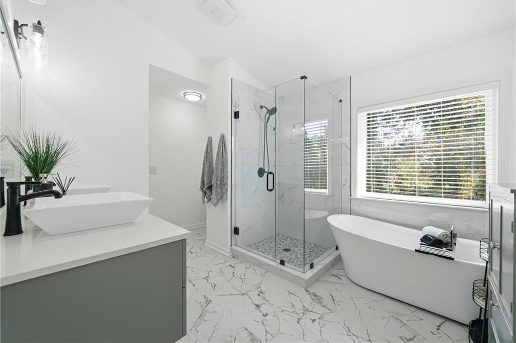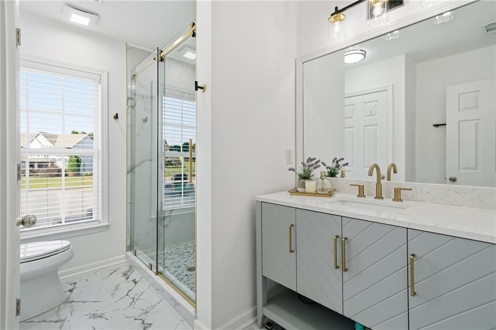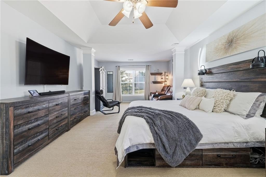 Tucked in a peaceful cul-de-sac with jaw-dropping curb appeal, this home will capture your heart before you even step inside! Located in sought-after Forsyth County, this beautiful home features a newer architectural-shingle roof, two new HVAC and furnace systems, and over $30k invested in luxury bathroom renovations. Built on a slab foundation, offering a long-term structural stability and low maintenance. As you enter, you’re greeted by a bright two-story foyer. To your left is a versatile room currently used as a bar and entertaining space, which can easily be converted back into a cozy sitting area if preferred. A large, separate dining room provides plenty of space for family gatherings and holiday dinners. The kitchen opens directly to the family room and includes a breakfast area, newer microwave and dishwasher, and generous counter space. From the kitchen, step out to the patio with a pergola perfect for outdoor entertaining or relaxing evenings. The fully fenced, flat backyard offers privacy and room to play. The two-car garage provides direct and convenient access to the kitchen, making unloading groceries a breeze. Upstairs, the oversized primary suite includes a sitting area, walk-in closet, and a fully renovated bath with double vanities, a soaking tub, and a separate shower. Three additional bedrooms plus a versatile loft/media room, laundry with newer washer and dryer, and another fully updated bathroom complete the upper level. Forsyth County continues to experience remarkable growth and development, making it one of the most desirable areas. With top-rated schools, expanding retail and dining options, nearby parks, and ongoing community improvements, this area offers the perfect blend of convenience, lifestyle, and long-term value. The neighborhood also features a pool, playground, tennis courts, perfect for staying active close to home. This home has been freshly painted on the exterior (2023), includes a termite bond, and has been lovingly maintained - ready for you to come see in person and move into your new home just in time for the holidays!