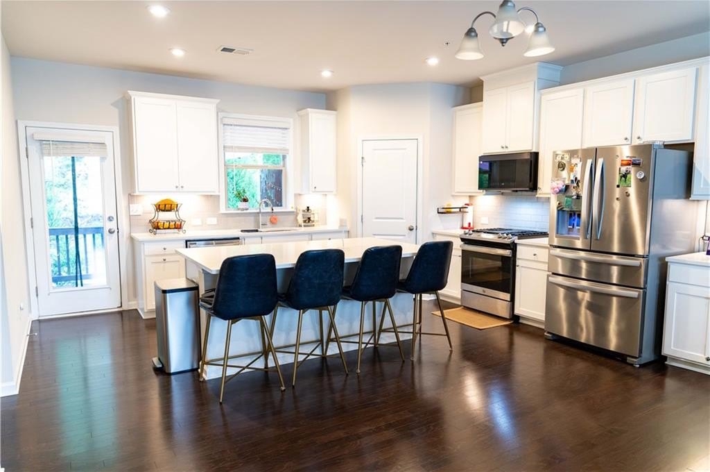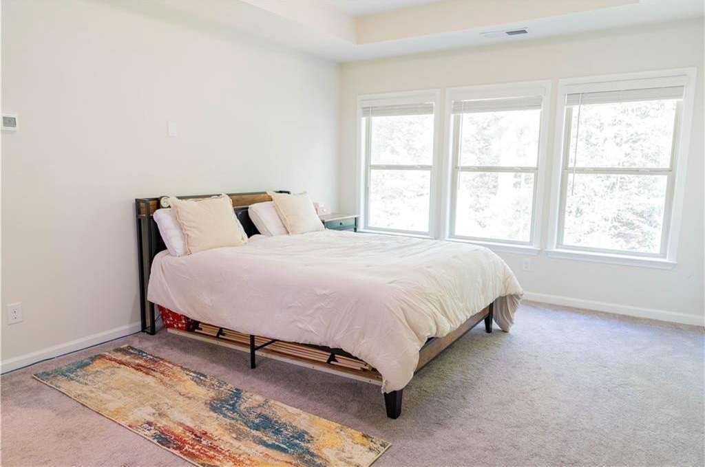 Like-new three-story townhome in a prime location with easy access to I-285, the airport, and Midtown Atlanta. This beautiful, light-filled home features an open floor plan with a spacious living and dining area, modern kitchen, and large private deck perfect for entertaining. The first floor includes two bedrooms and a full bath, while the third floor offers a large master suite with a private bath and walk-in closet for ultimate privacy. The extra-long driveway provides additional parking, and the well-maintained community offers great amenities, including a pool, dog park and walking paths around the lake. This townhome combines comfort, style, and convenience — perfect for modern living!