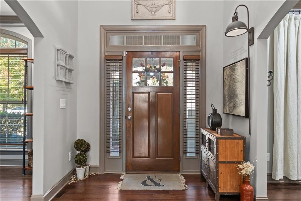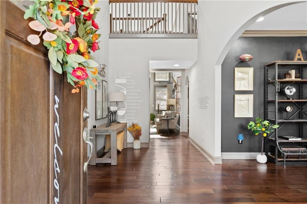 As you step inside, a grand two-story foyer greets you with a bright, open, and airy feel. To the right, the formal living room offers a classic and elegant space, perfect for quiet reading or conversation.
