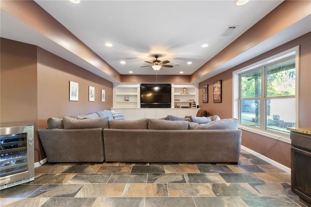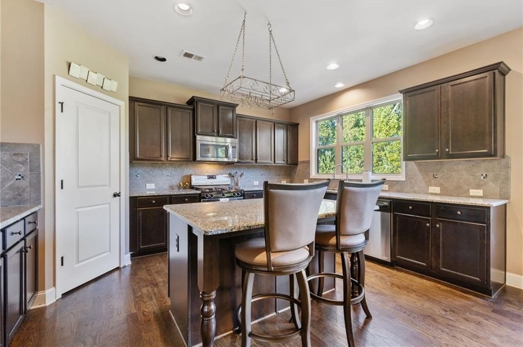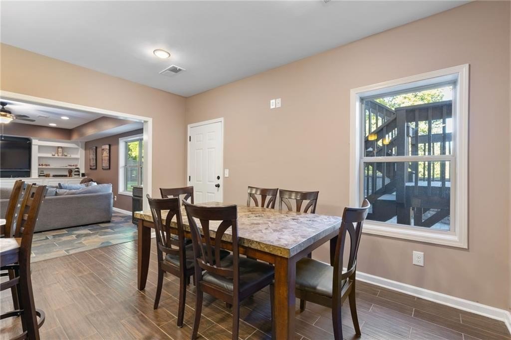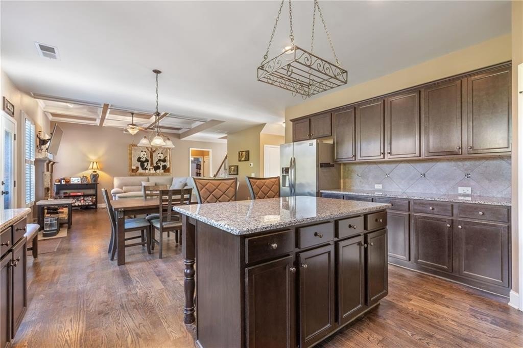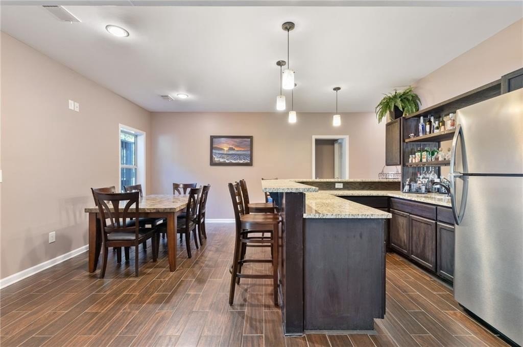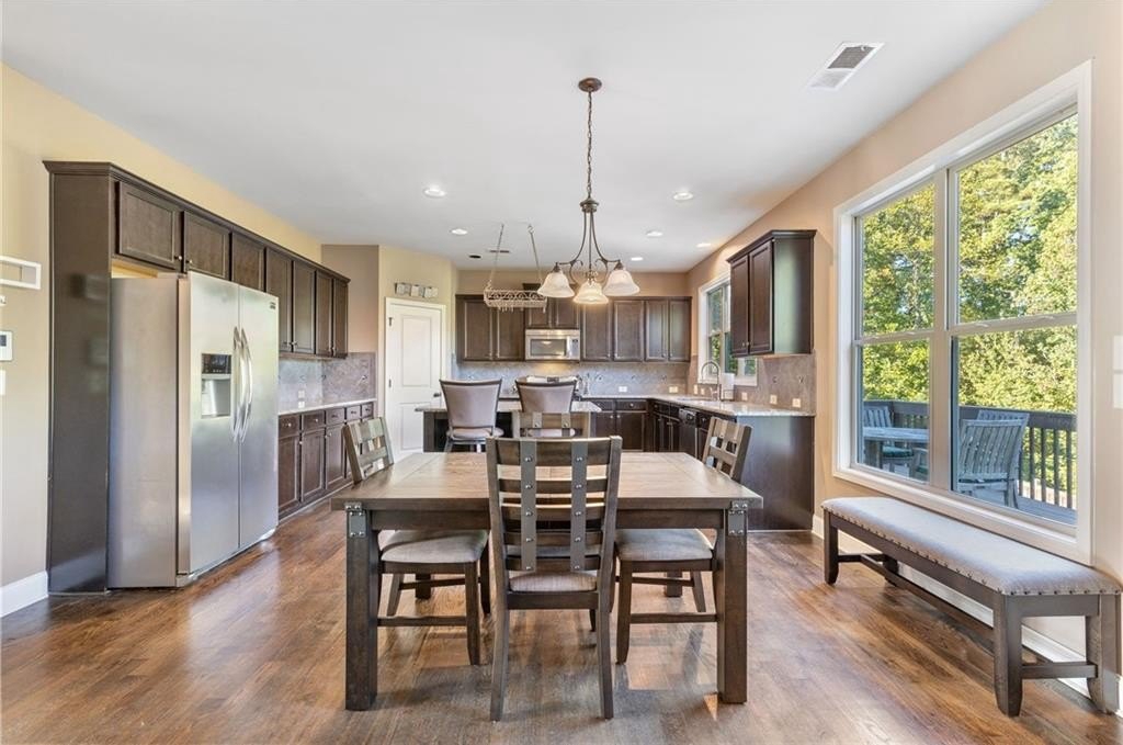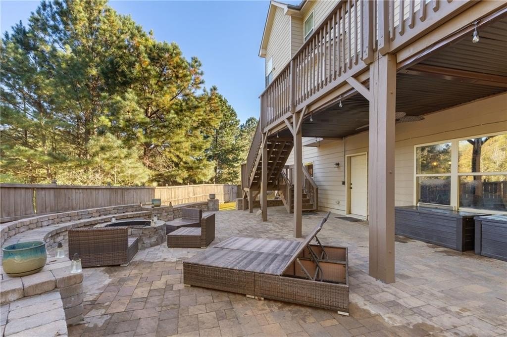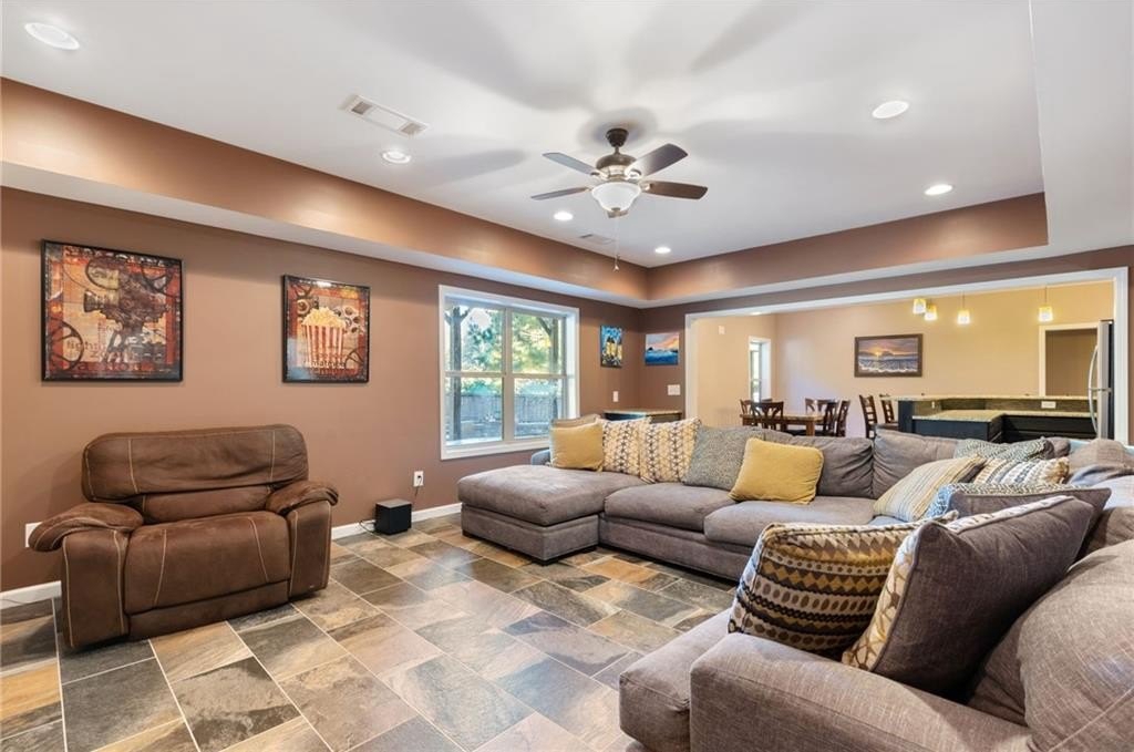 Welcome to 6049 Cove Park Dr in desirable Lanier Springs. This gorgeous home has space for everyone! The main floor features an open concept kitchen and living space as well as a spacious formal dining room, office with french doors and a great guest bedroom with full bath. Upstairs you will find four bedrooms including the incredible primary suite with room for a sitting area, large walk in closet and en suite bath with heated tile floors. A secondary bedroom has a private en suite as well and the other two secondary bedrooms share a bathroom - both with direct access. There is a great media room as well as a laundry room with storage upstairs. The fully finished terrace level is incredible with a great bar area, rec space, work out room, bedroom, full bath and storage as well. It walks out to a great paver patio with a fire pit. The private backyard is fenced and backs up to undeveloped land for complete peace and serenity. The beautiful treed views are home to lots of birds and wildlife. Lanier Springs has great amenities as well as schools. The location is very convenient to shops, restaurants, highways, entertainment in Sugar Hill, Buford and Lake Lanier as well.