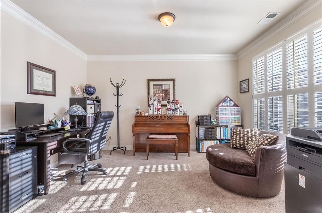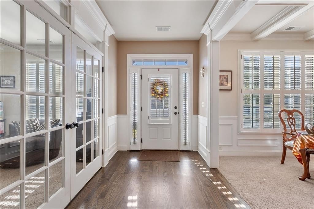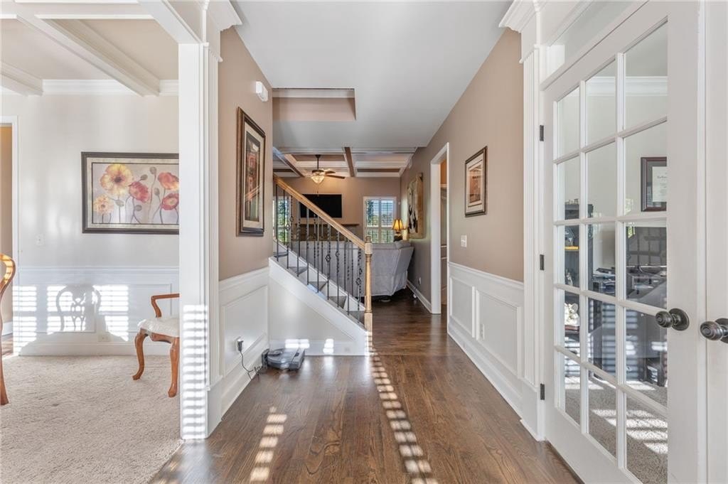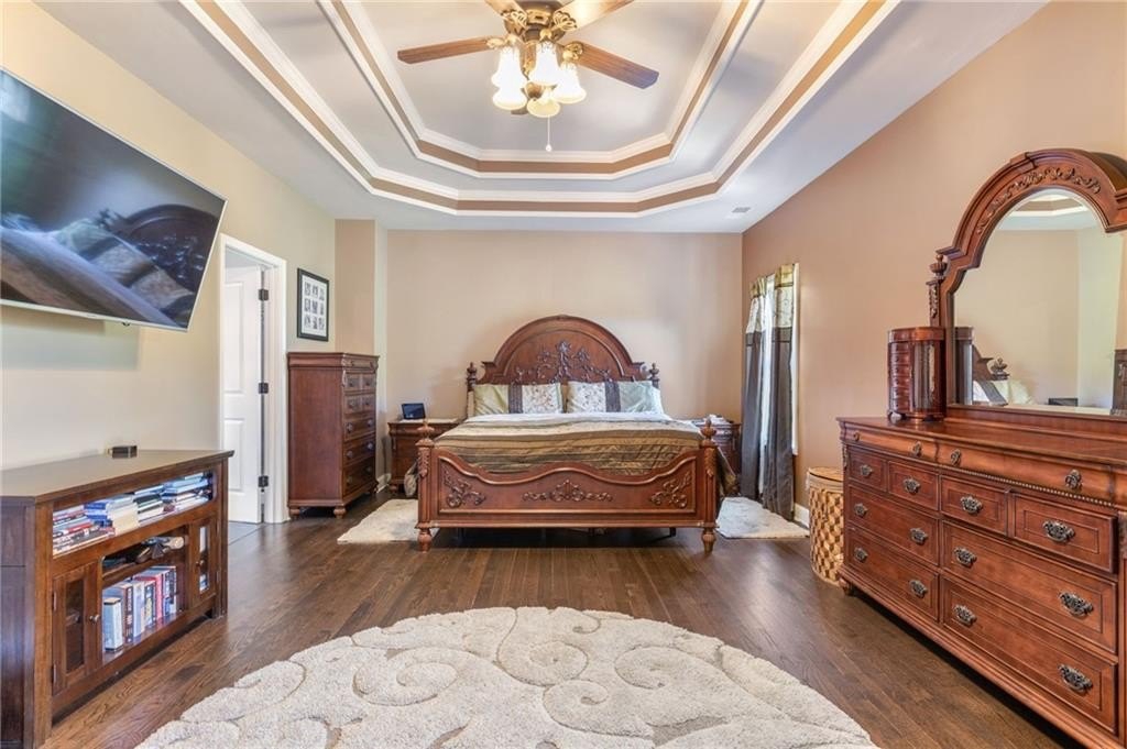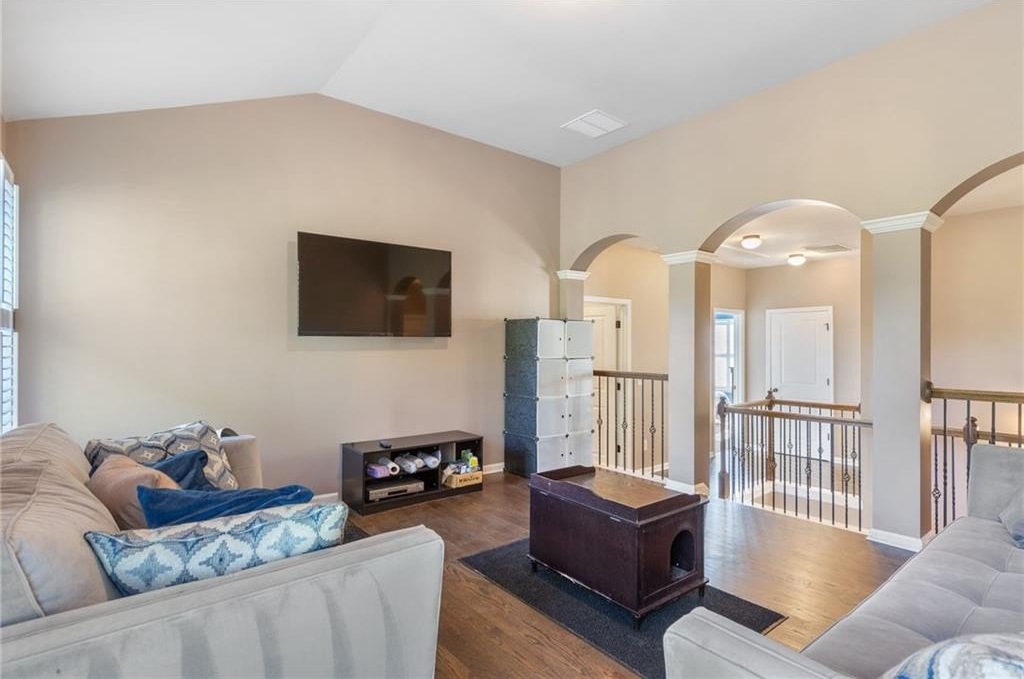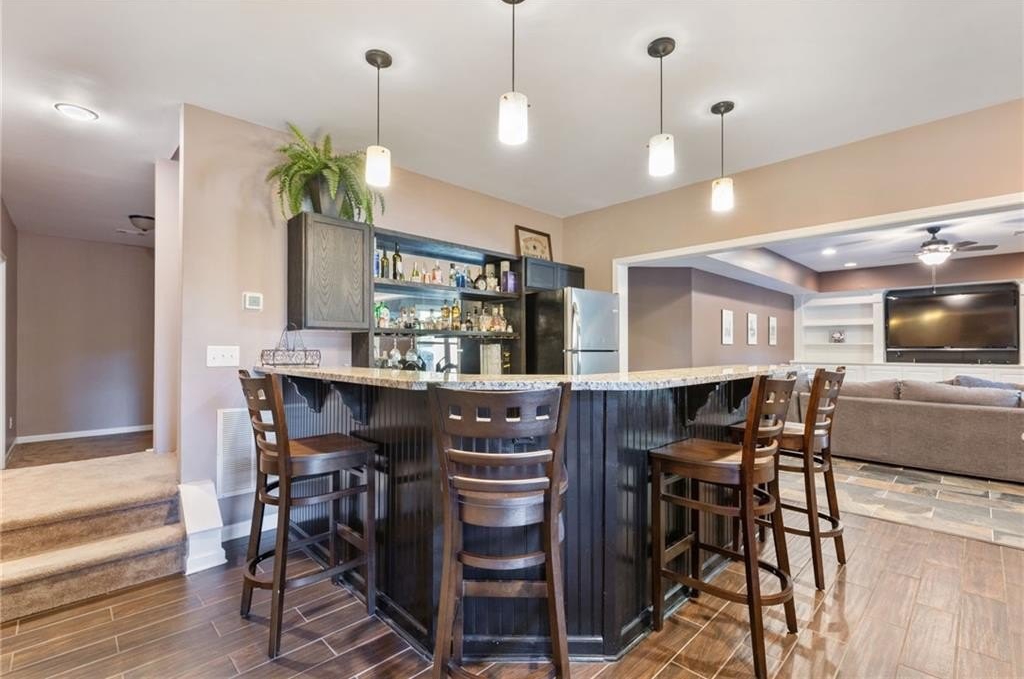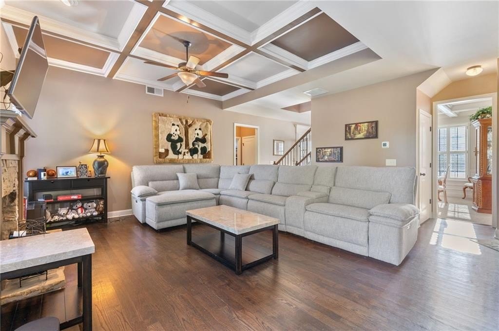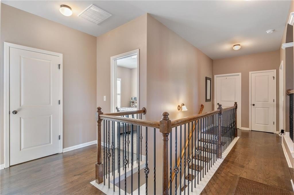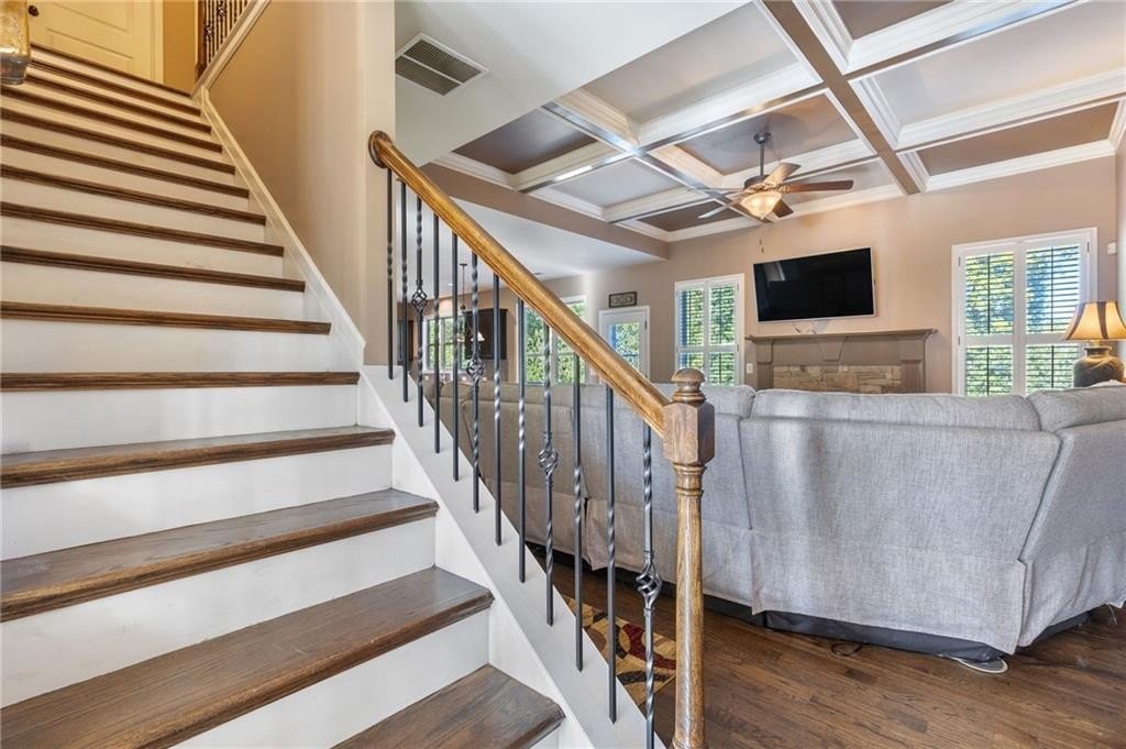 Welcome to 6049 Cove Park Dr in desirable Lanier Springs. This gorgeous home has space for everyone! The main floor features an open concept kitchen and living space as well as a spacious formal dining room, office with french doors and a great guest bedroom with full bath. Upstairs you will find four bedrooms including the incredible primary suite with room for a sitting area, large walk in closet and en suite bath with heated tile floors. A secondary bedroom has a private en suite as well and the other two secondary bedrooms share a bathroom - both with direct access. There is a great media room as well as a laundry room with storage upstairs. The fully finished terrace level is incredible with a great bar area, rec space, work out room, bedroom, full bath and storage as well. It walks out to a great paver patio with a fire pit. The private backyard is fenced and backs up to undeveloped land for complete peace and serenity. The beautiful treed views are home to lots of birds and wildlife. Lanier Springs has great amenities as well as schools. The location is very convenient to shops, restaurants, highways, entertainment in Sugar Hill, Buford and Lake Lanier as well.
