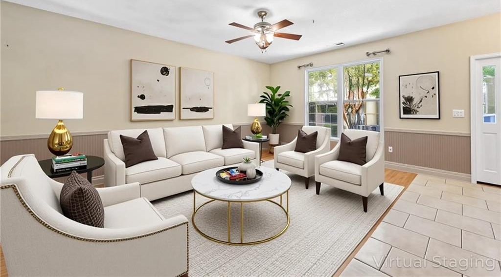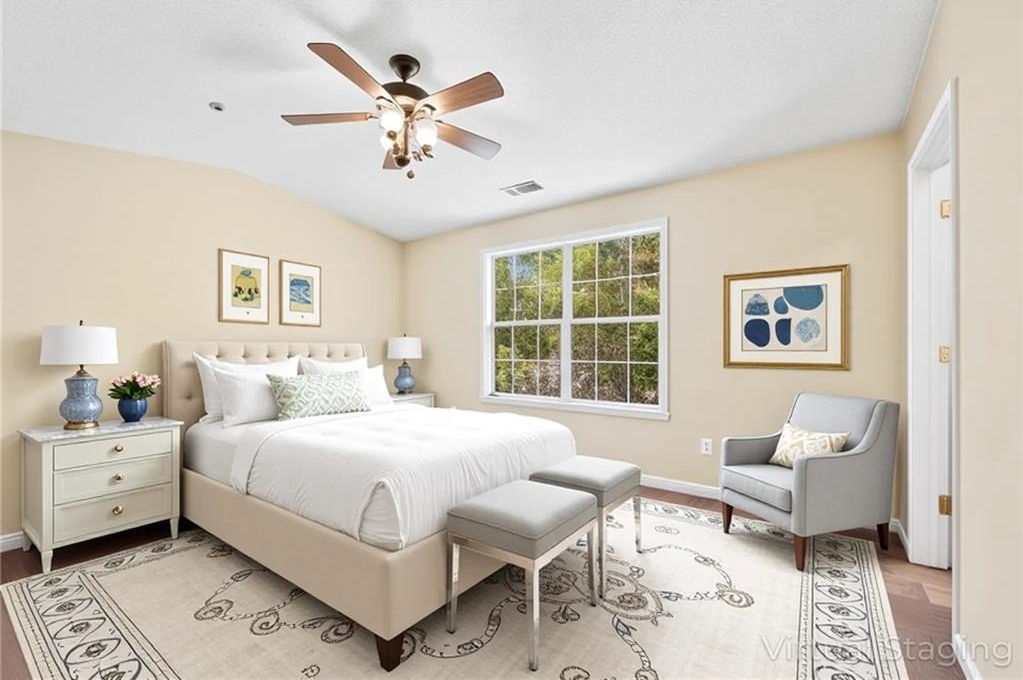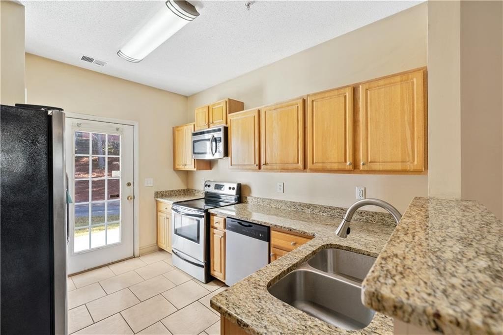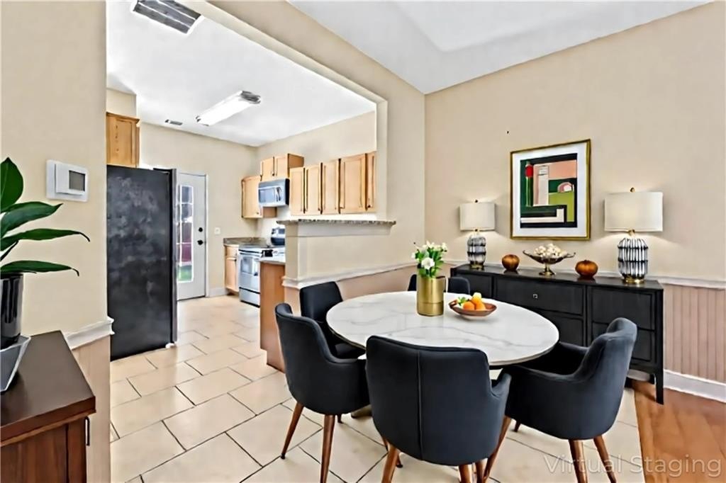 Welcome to this beautifully maintained end-unit townhome offering comfort, convenience, and charm in the heart of Canton. This 3-bedroom, 2.5-bath home features only one shared wall, providing added privacy. Step inside to a bright, open-concept main level that boasts gleaming hardwood floors and abundant natural light. The spacious family room flows seamlessly into a tiled dining area and well-appointed kitchen featuring warm wood cabinetry, stainless steel appliances, a breakfast bar, pantry, and a clear view into the living space—perfect for entertaining or everyday living. All appliances are included - including the refrigerator, washer and dryer! Just off the kitchen, a private patio offers a cozy spot to unwind or host guests. The main level also includes a convenient half bath and access to the rear-entry garage. Upstairs, the generous primary suite features a large walk-in closet and an en suite bath with double vanity sinks and a shower/tub combo. Two additional bedrooms offer ample space and share a second full bath with a clean, modern white vanity and shower-tub combo. A full-size laundry room is also located upstairs for added ease. Enjoy the benefits of a flat driveway, a small but usable yard, and a low-maintenance lifestyle with HOA fees covering termite services, exterior maintenance, and lawn care. The community itself offers sidewalks for morning walks or evening strolls, as well as a neighborhood pool. Tucked away in a quiet, tree-lined enclave, this home is just minutes from shopping, dining, and the vibrant events at The Mill on Etowah, Downtown Canton, and Etowah River Park. A perfect blend of privacy, location, and low-maintenance living—this home truly has it all.