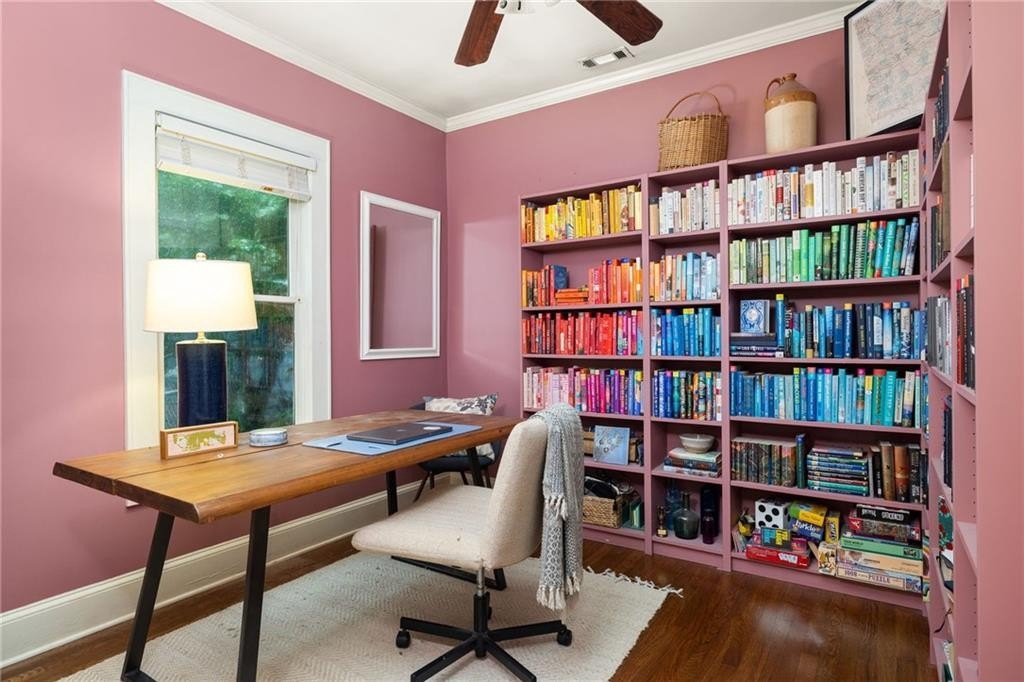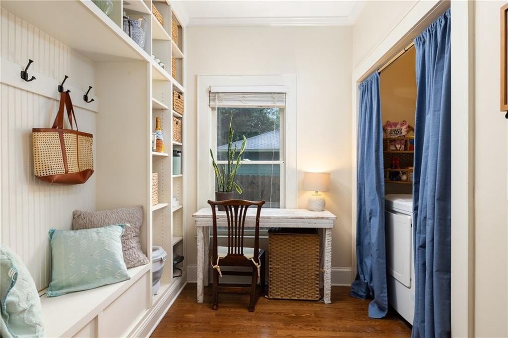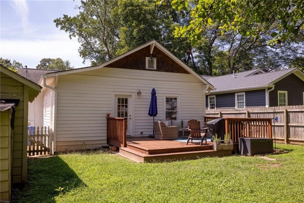 Discover timeless charm with modern convenience in this beautifully renovated 3-bedroom, 2-bathroom bungalow on one of the best streets in Howell Station. Overflowing with curb appeal, this home blends historic character with thoughtful updates for today’s lifestyle. Inside, you’ll find gleaming hardwood floors, a fully renovated kitchen, and an expansive primary suite featuring a spa-like bath with dual vanities, a walk-in shower, and a spacious walk-in closet. A well-designed mudroom with built-in shelving, laundry, and space for a dedicated desk adds both style and functionality, creating the perfect hub for everyday living. Thoughtful design details continue throughout, including custom bookcases in the dining area and in one of the bedrooms: functional and aesthetic, they provide the perfect space for the avid reader or for showcasing treasured collections. Step outside to a fully fenced, flat backyard with a deck built in 2023, ideal for entertaining, gardening, or a place for pets to play. A private driveway provides off-street parking just outside your front and back door. Recent upgrades, including a new HVAC system and hot water heater (both replaced in 2024), ensure comfort and efficiency for years to come. Located just moments from the Atlanta BeltLine and the vibrant Westside’s dining and shopping scene, this home offers the perfect balance of neighborhood charm and urban access.