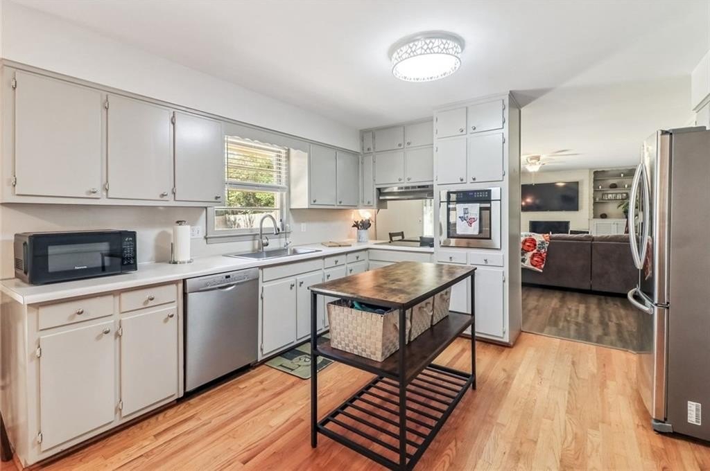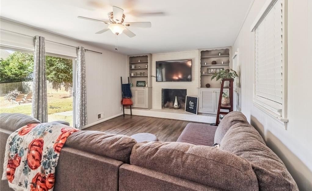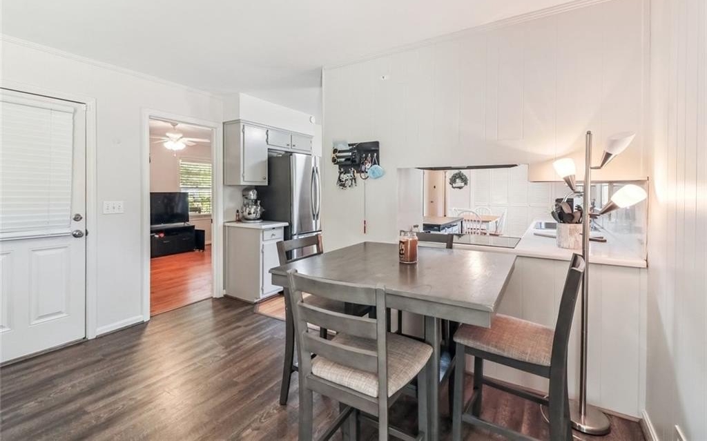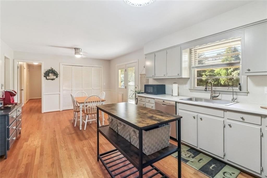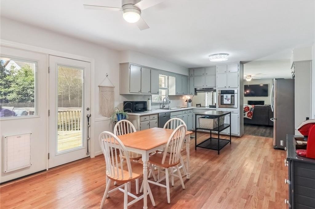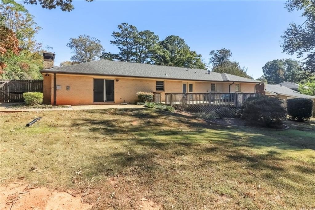 Welcome to this picturesque, move-in ready brick ranch situated on .4 of an acre on a quiet street in Galilee Acres, conveniently located between Tucker and Decatur! This well-maintained home has been freshly painted, has beautiful hardwoods and new flooring in the fireside family room, a 2-year old roof, along with a finished and enclosed 2-car garage with extra door to the exterior. The home features a spacious layout and flow, ideal for both everyday living and entertaining, while the generously sized bedrooms provide plenty of space for relaxation and privacy. A removable wall is currently in place providing the perfect office or 4th bedroom. You'll love the eat-in kitchen with stylish paint color cabinetry, high-end stainless steel appliances, and views to the family room and outdoors. Have a four-legged friend? How you (and they!) will enjoy the built-in pet door leading to the deck and great outdoors! The spacious, fenced-in back yard can be accessed from the large sliding glass door in the family room or a French-style door in the kitchen. Providing the perfect relaxing getaway, imagine entertaining family and friends out in this lovely expansive area. Gardeners, grillers and sunbathers welcome!