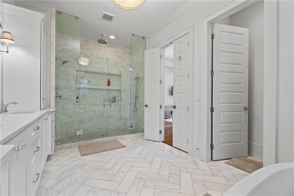 Step inside and discover an open, light-filled floor plan designed for both everyday living and grand entertaining. The chef’s kitchen is a true showstopper, featuring a top-of-the-line Monogram 6-eye gas range with griddle, dual dishwashers, and an Electrolux refrigerator and separate dedicated ice maker (yes, the good ice!). The kitchen flows effortlessly into the family room, creating the perfect gathering space, and also connects to the dining room through a stylish butler’s pantry, ideal for hosting dinner parties or holiday celebrations. A spacious walk-in pantry and large mudroom with built-in nooks for backpacks and shoes add thoughtful convenience. Off the family room, a grilling deck invites you to enjoy outdoor dining and entertaining. Upstairs, you’ll find five spacious bedroom suites, each offering privacy and comfort. The primary suite is a true retreat, featuring a spa-inspired bath with a soaking tub, floor-to-ceiling glass shower, and a private covered porch, the perfect spot to sip your morning coffee while overlooking the serene backyard. A loft or game room adds flexible space for fun or relaxation. The terrace level offers incredible versatility, complete with a dedicated gym, entertaining area, full bath, bedroom, and ample storage. We still haven’t talked about the cherry on top. Enjoy this backyard oasis complete with a Gunite pool and hot tub, a pool house w/ private bath and a massive play area. For the sports enthusiast, there’s even a batting cage!! Rounding out this exceptional property is a three-car garage, high ceilings throughout, and every feature today’s luxury buyer could dream of. This home truly has it all: luxury finishes, family-friendly function, and resort-style living, all in one unforgettable address.