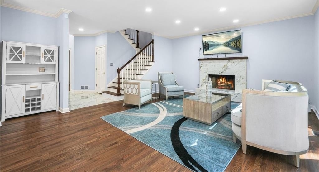 The finished terrace level transforms leisure into luxury, boasting a full wet bar, media and game lounge, dedicated theater room, and fitness area—all with seamless walk-out access to a tranquil backyard oasis. Entertain with ease or unwind beneath the stars on an oversized deck and covered patio, surrounded by lush landscaping, mature trees, and fragrant blooms that frame the home’s impressive .67-acre setting.