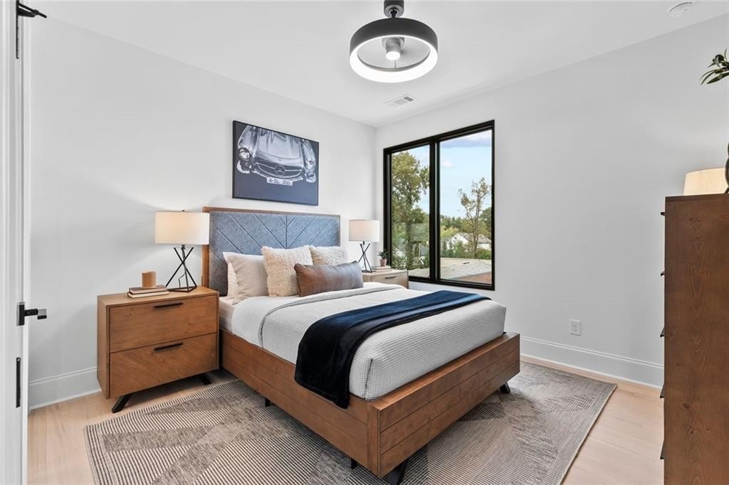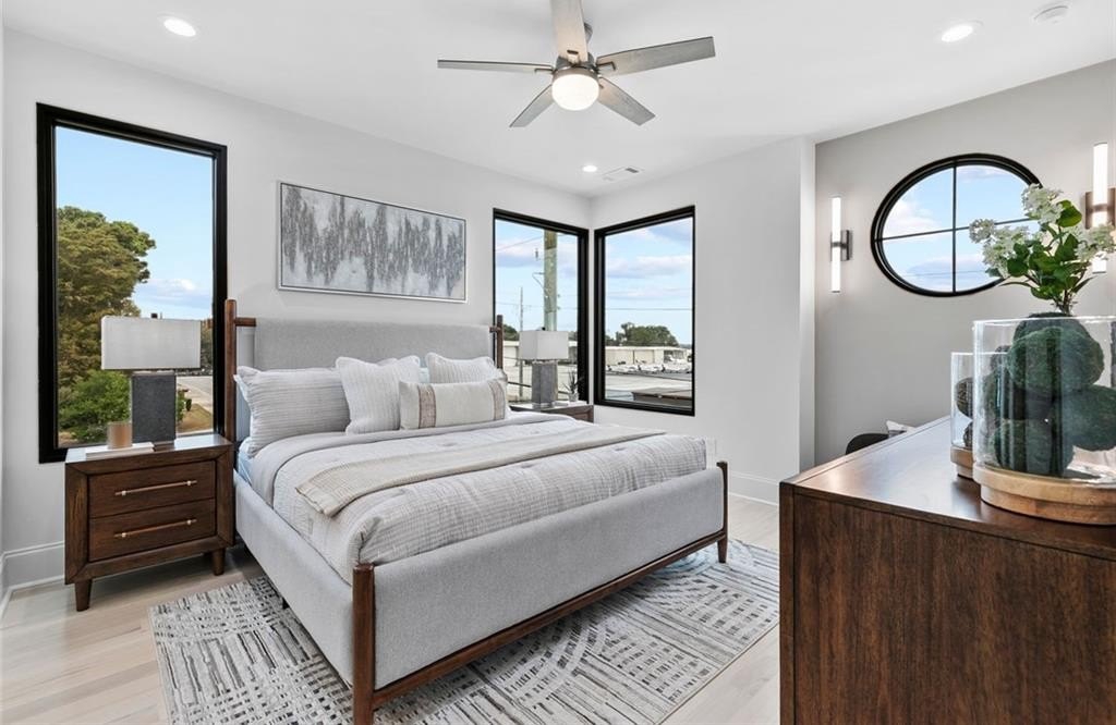 Turn off 8th Street and glide through the motor court into your private two-car garage, the beginning of something special. Inside, the first floor welcomes you with a bright, modern foyer, a full bath, and a spacious bedroom that doubles beautifully as a home office, complete with two closets for effortless organization. Ascend to the open concept main level where luxury meets design. The kitchen is a showstopper featuring one-of-a-kind marble countertops, two-tone cabinetry, a generous island for entertaining, walk-in pantry, and a sleek dry bar with a built-in wine fridge. Fulgor stainless steel appliances anchor the space, complemented by designer lighting and hardwood floors that flow seamlessly throughout. The dining area sets the stage for your first dinner party, while the elevated living room framed by corner windows offers striking views of the PDK runways below. A discreet half bath adds an extra layer of convenience for guests, and a large walk-in storage closet near the staircase ensures everything you need has a stylish place to stay tucked away. On the third level, the indulgence continues with an ensuite secondary bedroom, hallway laundry, and an elegant primary suite boasting dual walk-in closets with custom shelving and a spa-like bath featuring a double vanity, water closet, and oversized walk-in shower. And just when you think you’ve seen it all, the rooftop terrace steals the show. Stretching the full length of the home, it is finished in lush turf with panoramic views of Stone Mountain and the runway lights of Peachtree-DeKalb Airport. Perfect for sunset cocktails or midnight conversations, a gas line awaits your custom outdoor kitchen upgrade. Beyond the home, The Foxtrot offers an enviable lifestyle designed for those who move to their own rhythm. Surrounded by six parks and the sprawling 33-acre Ashford Park Reserve, outdoor adventures are steps away. Minutes from Emory University, top hospitals, major highways, and an array of dining and entertainment options, you’ll enjoy the best of urban living with the ease of a connected community. Experience luxury living at its finest at The Foxtrot, where prime location, exceptional craftsmanship, and unparalleled design converge to create a lifestyle unlike any other. At The Globemaster, every landing feels like a grand arrival.