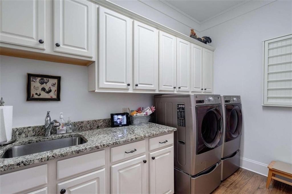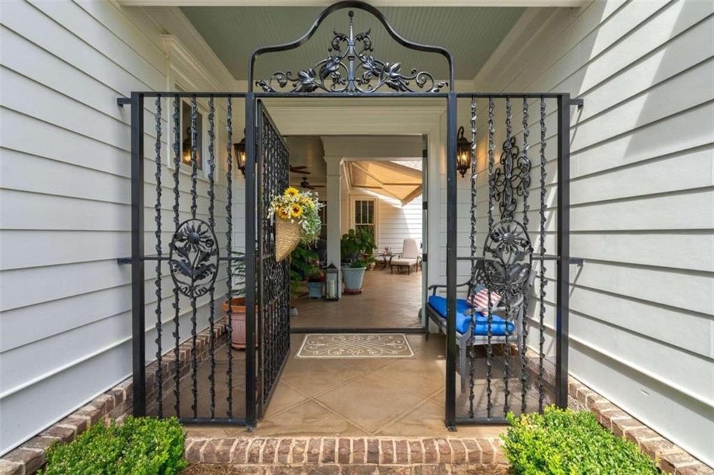 2033 Trimleston Road, a pristine 4 bedroom 4 and a half bath home locate in the North Hill neighborhood of The Georgia Club. As you approach along the charming paver driveway and pass through the elegant wrought iron gates, youll immediately sense the uniqueness of this exceptional residence. Double solid wood entry doors open into a beautifully designed private courtyard, featuring a large outdoor stacked stone fireplace with gas logs that creates a perfect setting for cozy gatherings. This area masterfully combines covered and open-air spaces, making it ideal for any occasion. With its scored concrete flooring and Sunbrella awning, this charming outdoor "room" is sure to become your favorite spot in the home. Off the courtyard, youll find two entrances: one leading to a charming, detached guest suite and the other to the main house. The detached guest suite features vaulted ceilings, a private bath, and a walk-in closet, making it an ideal retreat for visiting guests or a separate home office. The main house entry greets guests with a welcoming foyer, highlighted by beautiful heart-of-pine flooring, a striking staircase with a custom runner, and elegantly appointed light fixtures. Adjacent to the foyer, the formal dining room offers a picturesque view of the courtyard and connects seamlessly to the chefs kitchen and the open-concept great room. The kitchen exudes a decorators elegance with its glazed white cabinetry and beautifully coordinated stone countertops. A darker wood island and accent pieces frame the five-burner cooktop with a sleek stainless steel vent hood, while select display cabinetry flanks the cooktop, and a tumbled stone backsplash adds texture and charm. This chefs haven is equipped with double ovens, a large flat island offering ample preparation space and room for gathering, and a butlers pantry complete with a wine chiller, additional cabinet space, and a separate pantry. The kitchen seamlessly flows into a spacious great room, ideal for both entertaining and relaxing. This inviting space features access to both the courtyard and the private, fully fenced rear yard, which has been transformed into an additional outdoor retreat with a flagstone patio and grilling station. The great rooms cozy atmosphere is enhanced by a stacked stone fireplace and wooden architectural beams. The primary suite features a grand double door entrance, thoughtfully set apart from the great room, leading to a retreat that truly impresses. The spacious bedroom, which opens to the private courtyard sitting area, offers beautiful views and the perfect blend of seclusion and openness. The suite is enhanced by his-and-her closets, each with custom closet systems, and a spa-like bath designed for relaxation. The luxurious bathroom includes separate vanities, a soaking tub, and an oversized zero-entry shower complete with a bench, rain can showerhead, and a frameless glass door. The first floor of this home also features an additional bedroom or office with an ensuite bathroom. This versatile space boasts heart-of-pine floors, elegant wood beams, and an abundance of natural light. The main floor further includes a stylish powder room and a generously sized laundry room, complete with custom cabinetry, granite countertops, and a stainless-steel sink. Upstairs, youll find an open loft, an additional bedroom and bathroom, and a bonus room designed to accommodate all your extra needs. The Georgia Club is a gated community w/ a private golf & country club that includes a 27 holes of championship golf, aquatic center, fitness center, tennis & pickle ball, on site restaurant, & more. The Georgia Club is a fabulous community that offers a lifestyle unlike any other.