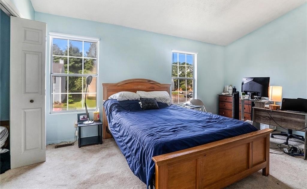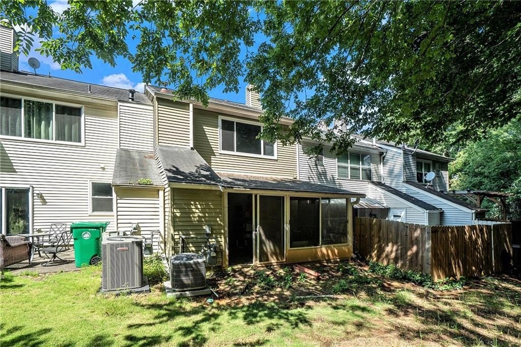 Welcome to this beautifully updated townhome located in the sought-after Washington Square gated community! Let's make this your new destination. As you step inside, you'll be greeted by a spacious living room featuring warm hardwood floors and a cozy fireplace, perfect for relaxing or entertaining with family and friends. The open kitchen is a standout with sleek stone countertops, white cabinets, and stainless steel appliances-including a refrigerator with icemaker, stove, microwave, and dishwasher. There's also a comfortable eat-in dining area, and from the kitchen, you can step right out onto a lovely closed in sun room that overlooks a peaceful creek and tree-lined view-an ideal spot for morning coffee or unwinding in the evening. Upstairs, you'll find two generously sized bedrooms, each with its own private ensuite bathroom and ample closet space. The lower level offers a half bath, and a bright sunroom that opens to a fenced outdoor area for added privacy. The home is surrounded by thoughtful landscaping and includes an irrigation system in the front yard for easy maintenance. Additional perks include two assigned parking spaces, access to the community pool, and HOA coverage for water, sewer, and trash. You'll love being part of a friendly neighborhood just steps from Graves Park, a 70-acre public space with walking trails, tennis and volleyball courts, a dog park, and a playground. This home truly has it all-style, space, and a prime location.