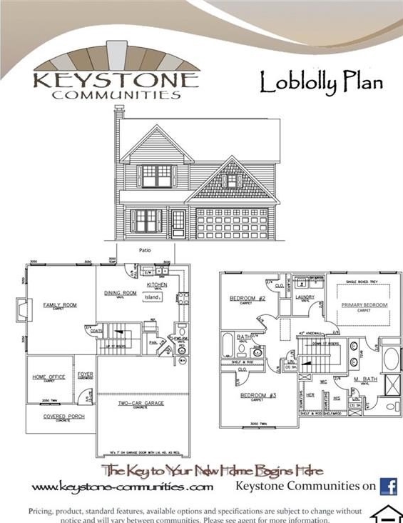 Discover the perfect blend of comfort, functionality, and future potential in this inviting 3-bedroom, 2-bath home nestled in a spacious cul-de-sac setting. From the moment you step onto the welcoming front porch, ideal for morning coffee or evening chats, you’ll feel right at home. Inside, a light-filled foyer leads to a dedicated home office, offering a quiet space for remote work, study, or creative pursuits. The heart of the home features an open-concept family room, kitchen, and breakfast area designed for effortless entertaining and everyday connection. Whether you're prepping meals or sharing stories, this central space brings everyone together. Step outside to a private back deck, perfect for weekend barbecues or peaceful unwinding. Upstairs, all three bedrooms are thoughtfully arranged for privacy, including a spacious primary suite with dual closets and a private bath for a touch of luxury. A convenient upstairs laundry room and secondary full bath complete the upper level. ? **Bonus Feature**: A full unfinished basement offers endless possibilities. Expand your living space, create a home gym, workshop, media room, or simply enjoy abundant storage. With generous square footage and high ceilings, it’s a blank canvas ready for your vision. Builder is currently offering $10,000 in closing cost contribution with use of one of their preferred lenders and contract by November 15 and closing in 2025. 1st photo is actual home, remainder were from previously built Loblolly plans. Built by Keystone Communities