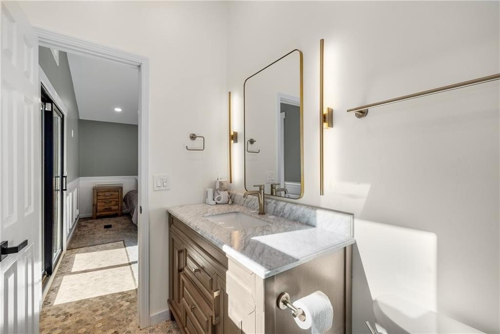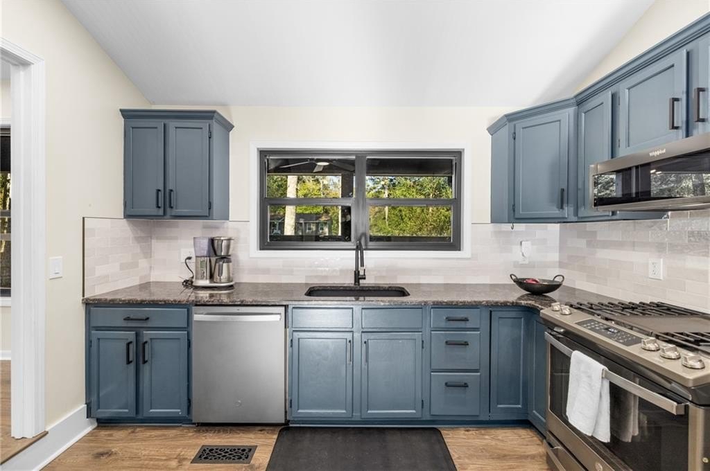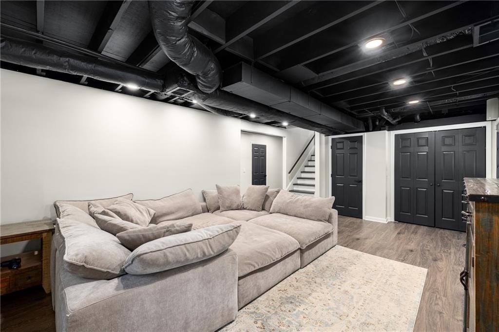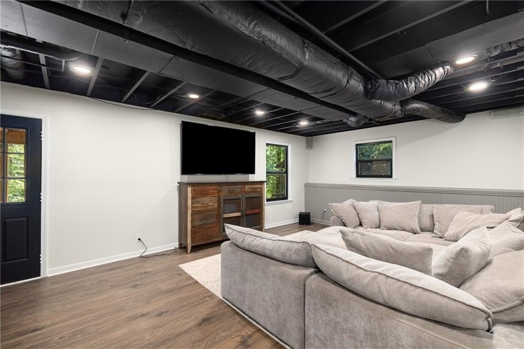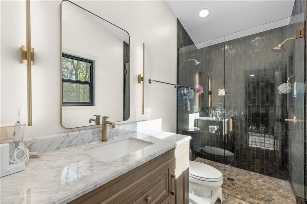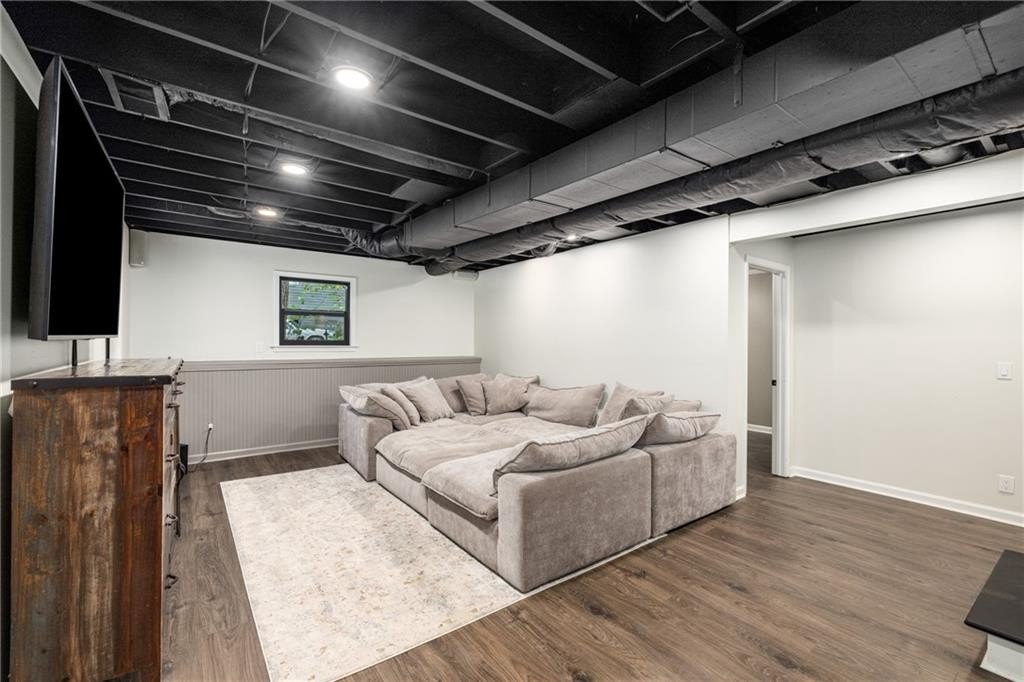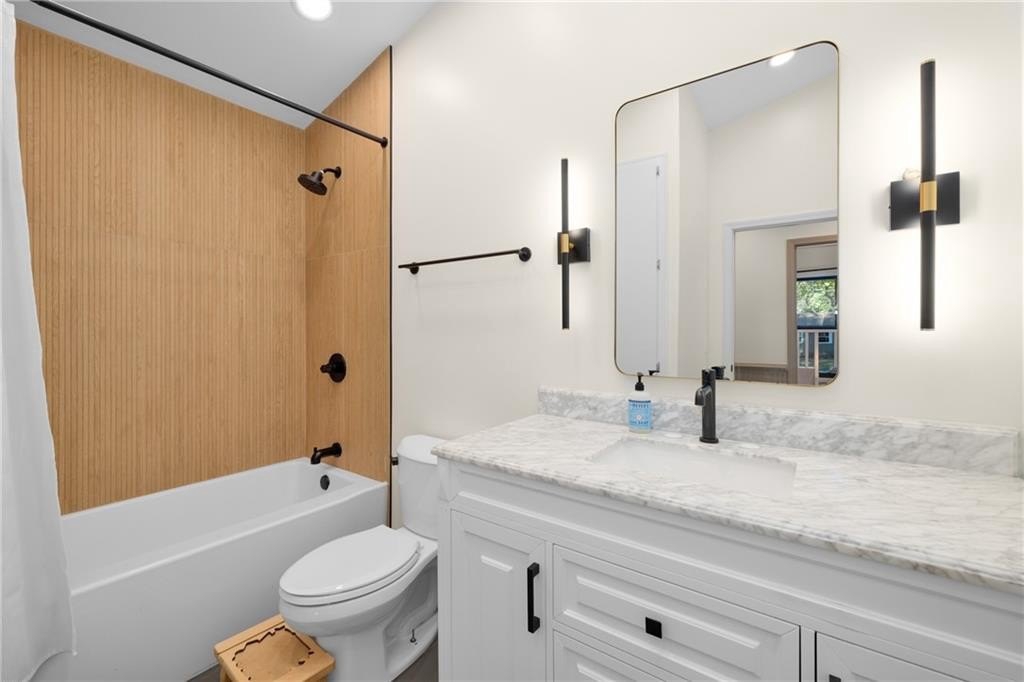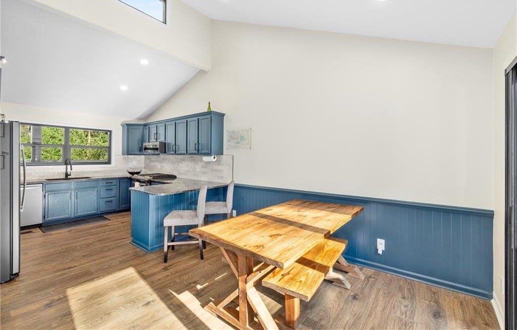A private mountain-style retreat right in the heart of Woodstock. Tucked away on a quiet street, feels like an escape to the mountains, yet it sits right in Woodstock close to shops, restaurants, and top-rated schools. This is the kind of home that makes you breathe easier the moment you arrive. Surrounded by trees and peaceful views, it feels like a weekend getaway that never ends. Inside is a completely renovated home that blends rustic charm with modern luxury. Every inch has been reimagined, starting with a brand-new roof, new paint, and new windows. High vaulted ceilings fill the home with natural light, and new flooring ties everything together with warmth and style. The kitchen is the centerpiece of the home. Stainless steel appliances, sleek recessed lighting, and an accordion-style sliding glass door create a space that feels open and inviting. That door leads to a massive custom-built deck that stretches across the entire back of the home. Nearly seventy thousand dollars were invested into this outdoor space, which connects directly to the primary suite and offers the perfect setting for quiet mornings or evening gatherings under the stars. The primary suite feels like your own lodge-inspired retreat. It has vaulted ceilings and a spa-style stepless shower with luxury tile, double shower heads, and a new vanity. The two secondary bedrooms include a fun connecting door between their closets, perfect for kids who love secret hideouts. The hallway bathroom is completely renovated with fluted wood-look tile, stylish fixtures, and a skylight that fills the space with natural light. The finished basement is designed for relaxation and entertainment. It features a large open area perfect for a movie room, a fourth bedroom, and a storage room that could easily be converted into a future bathroom. The two-car garage has been insulated, heated, and air-conditioned for year-round comfort. It includes brand-new garage doors, a built-in doggie door that opens to the fenced backyard, making life easy for your four-legged friend. Outdoors, the updates continue with a rebuilt front porch with a cozy swing that invites you to slow down, relax, and enjoy the peaceful surroundings, an above-ground pool surrounded by decking, and a storage shed. The property sits on more than half an acre with a beautifully maintained lawn and no HOA, giving you the freedom to enjoy it your way. Every detail in this home was thoughtfully designed, from the lighting to the finishes. It feels like a peaceful mountain getaway, yet it is fully modern, move-in ready, and located right here in Woodstock.
