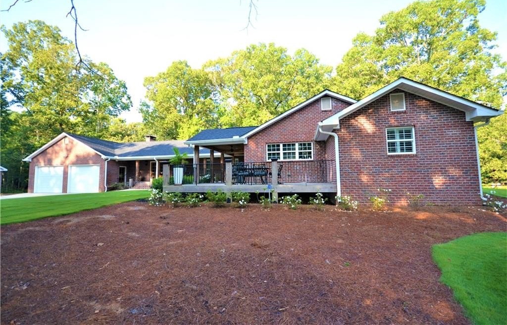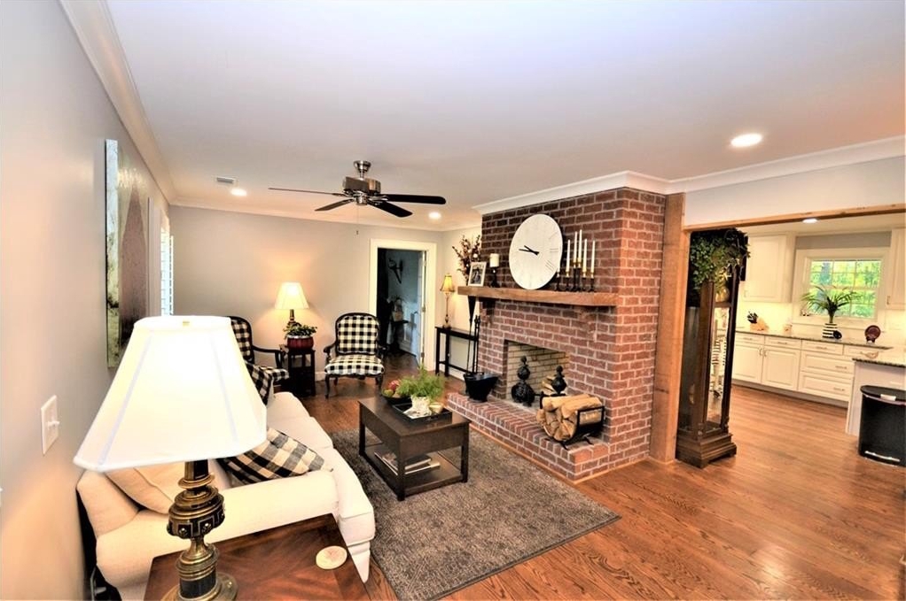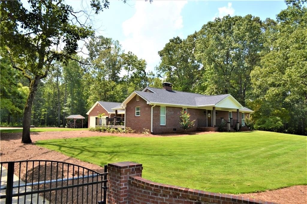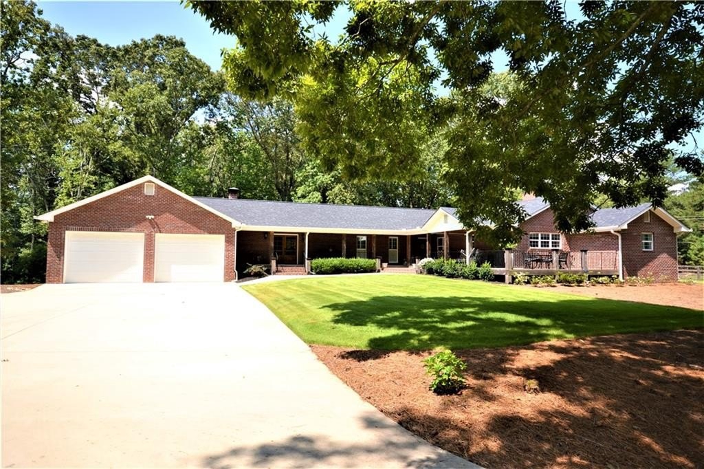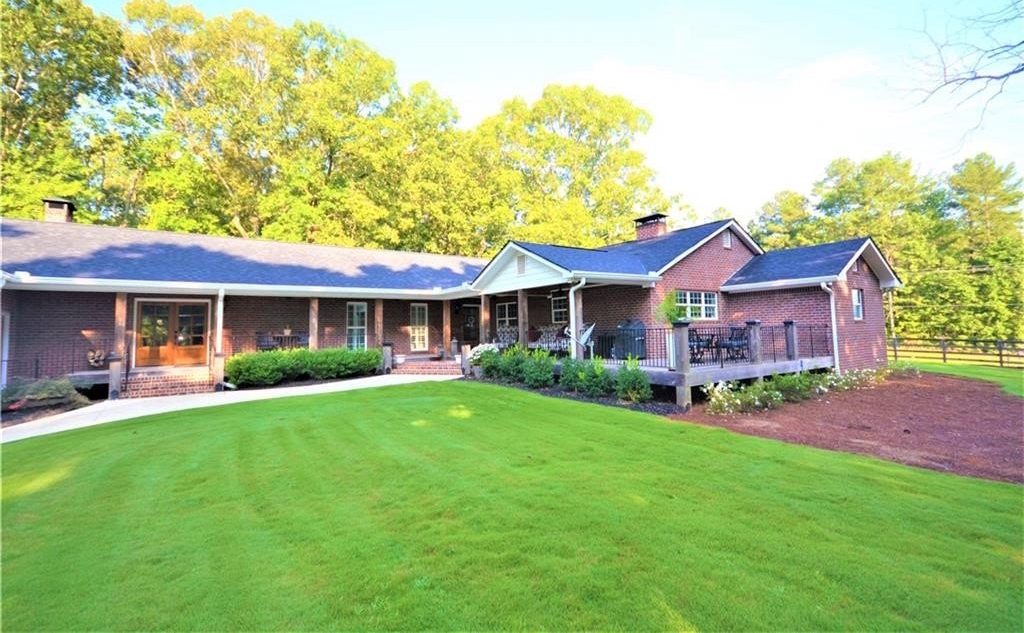 Wow, the attention to detail on this sprawling ranch remodel and expansion is breathtaking! The original home built in the 30’s was stripped down to the framing and rebuilt around the heart of the home, the kitchen! Anchored by a massive two-sided fireplace, the kitchen is the main gathering place to the home; holidays in this space will create memories for generations. Gleaming white custom cabinetry, glistening granite counters, farmhouse sink, one of a kind vent hood, two pantries all open to the roomy dining area! On the other side of the massive masonry fireplace is the cozy family room, ideal for family gathering or relaxing around with incredible fireplace. A study off the family room would make a great home office or the owner would consider adding a closet for it to be a 3rd bedroom. On the other end of this home is an enormous guestroom with an adjoining full bathroom. The long hallway off the dining room leads to the new Owner’s Suite which is a whole new wing added to the original home. Rarely is a laundry room a highlight to a home but this one is incredible. Plenty of storage, custom cabinetry and granite, built in ironing board and pass-through laundry door to the master closet, saves time and steps! The master is a true private oasis. The brick fireplace features a mantle hewn from a black walnut tree that was cut on site of the original homeplace. Enter the master bath with separate vanities, and incredible walk-in tile shower, with niches, bench and dual shower heads.The master closet is large enough to be an extra bedroom! If you ever to decide to actually go outside, the layout of the home forms a courtyard feel. The back porch and dining area are ideal for moving a meal or party outside. The porch is accessible from the dining area or the master and runs the entire length and width of the home. At the end of the covered porch is the attached two car garage…again where no detail was missed or expense spared. The brick fireplace in the master forms one of the interior walls and was built to accommodate a woodburning fireplace in the spacy garage. All of this situated on a gorgeous almost 5 acre tract with mature hardwoods all around!