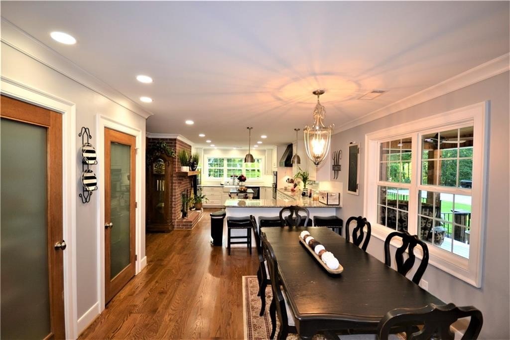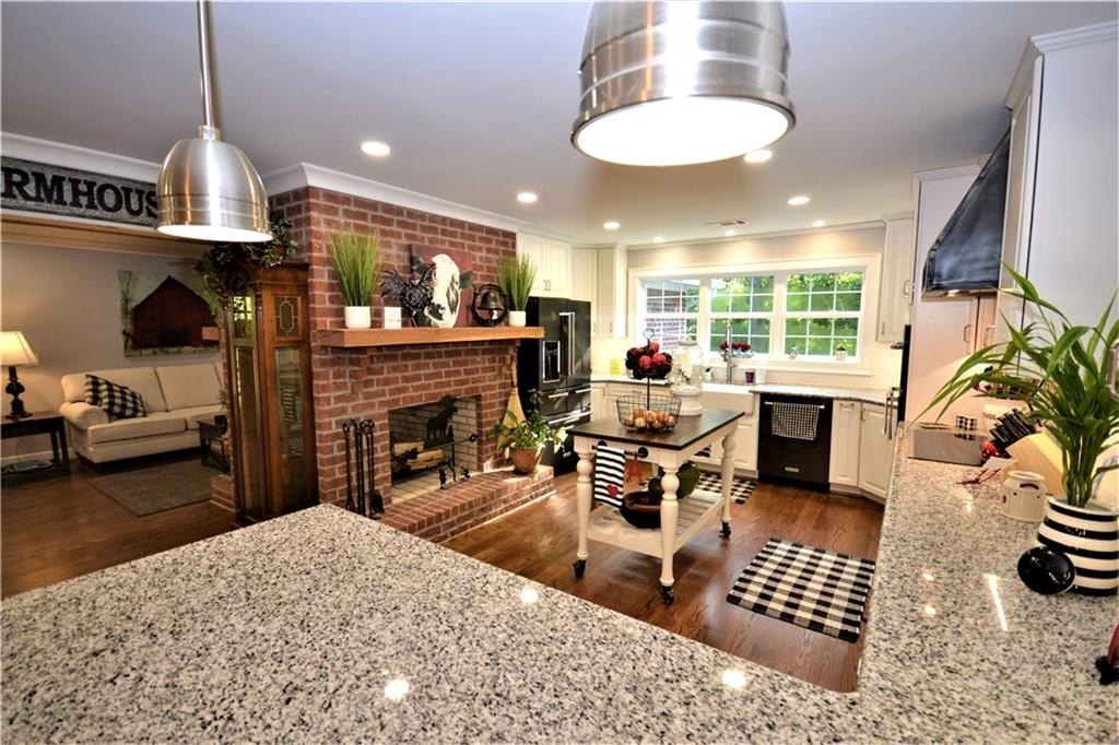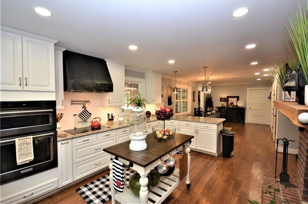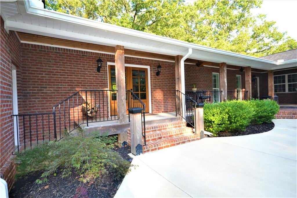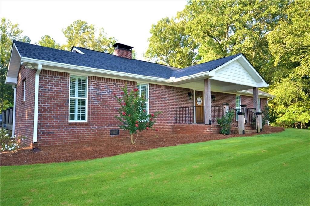 Wow, the attention to detail on this sprawling ranch remodel and expansion is breathtaking! The original home built in the 30’s was stripped down to the framing and rebuilt around the heart of the home, the kitchen! Anchored by a massive two-sided fireplace, the kitchen is the main gathering place to the home; holidays in this space will create memories for generations. Gleaming white custom cabinetry, glistening granite counters, farmhouse sink, one of a kind vent hood, two pantries all open to the roomy dining area! On the other side of the massive masonry fireplace is the cozy family room, ideal for family gathering or relaxing around with incredible fireplace. A study off the family room would make a great home office or the owner would consider adding a closet for it to be a 3rd bedroom. On the other end of this home is an enormous guestroom with an adjoining full bathroom. The long hallway off the dining room leads to the new Owner’s Suite which is a whole new wing added to the original home. Rarely is a laundry room a highlight to a home but this one is incredible. Plenty of storage, custom cabinetry and granite, built in ironing board and pass-through laundry door to the master closet, saves time and steps! The master is a true private oasis. The brick fireplace features a mantle hewn from a black walnut tree that was cut on site of the original homeplace. Enter the master bath with separate vanities, and incredible walk-in tile shower, with niches, bench and dual shower heads.The master closet is large enough to be an extra bedroom! If you ever to decide to actually go outside, the layout of the home forms a courtyard feel. The back porch and dining area are ideal for moving a meal or party outside. The porch is accessible from the dining area or the master and runs the entire length and width of the home. At the end of the covered porch is the attached two car garage…again where no detail was missed or expense spared. The brick fireplace in the master forms one of the interior walls and was built to accommodate a woodburning fireplace in the spacy garage. All of this situated on a gorgeous almost 5 acre tract with mature hardwoods all around!