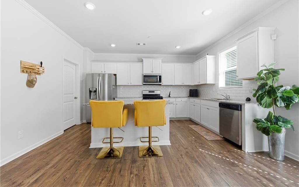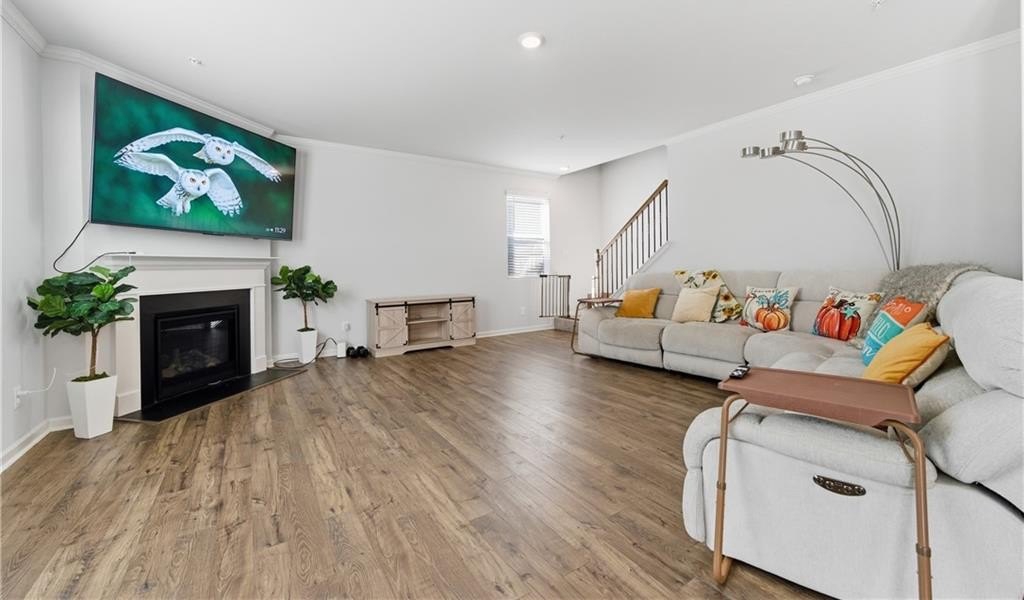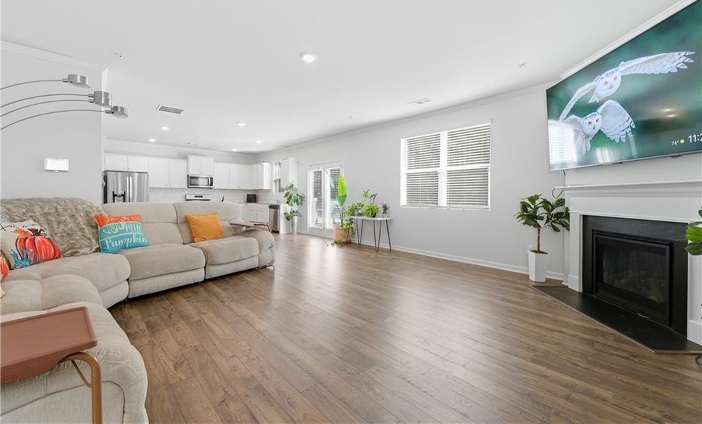 This barely lived-in two-story home sits on a level lot and offers an inviting open floor plan with LVP flooring throughout the main level. The living and dining room combo flows seamlessly into a bright family room with a cozy fireplace. The kitchen features white cabinetry, a walk-in pantry, and plenty of natural light, making it perfect for cooking and entertaining.