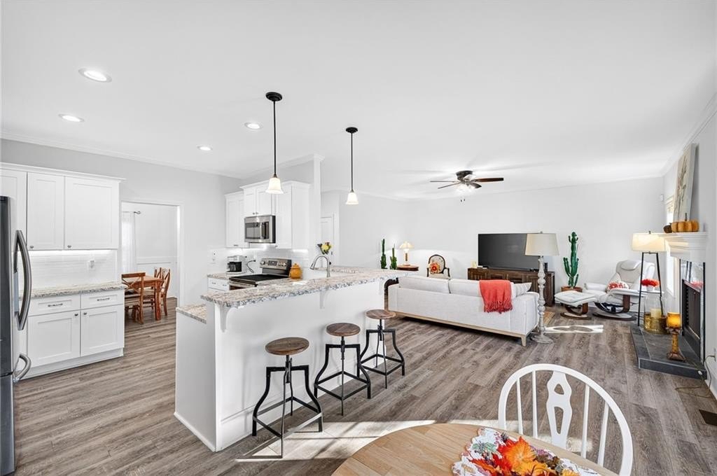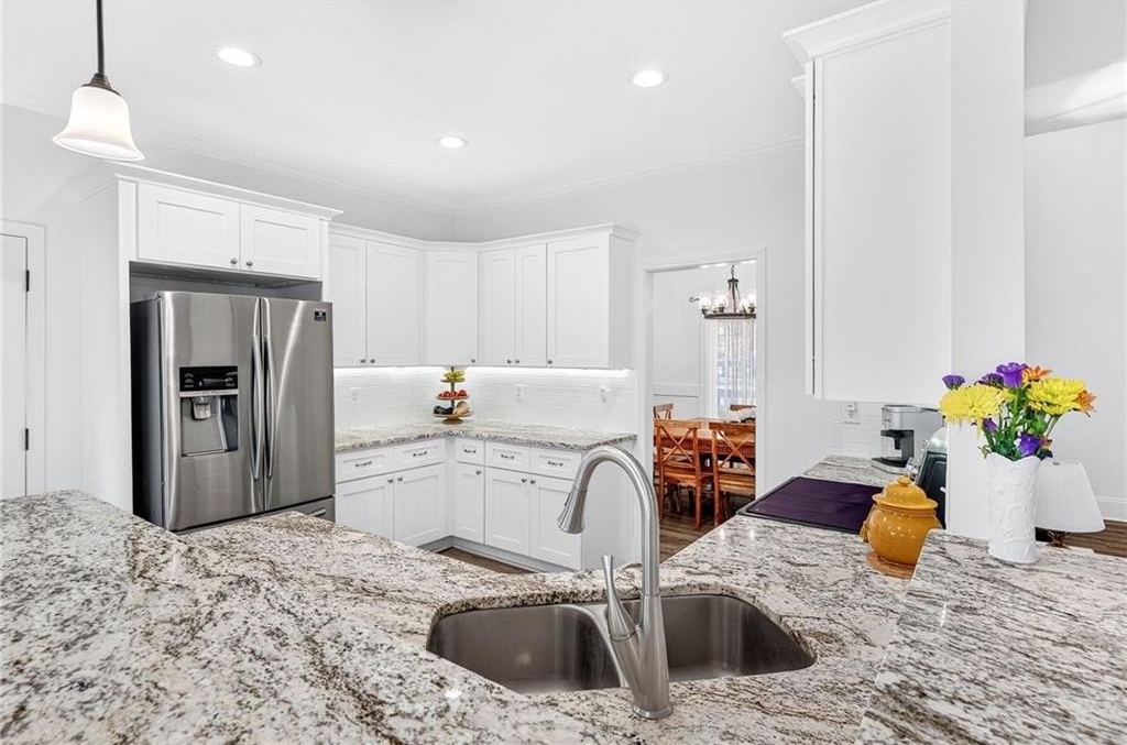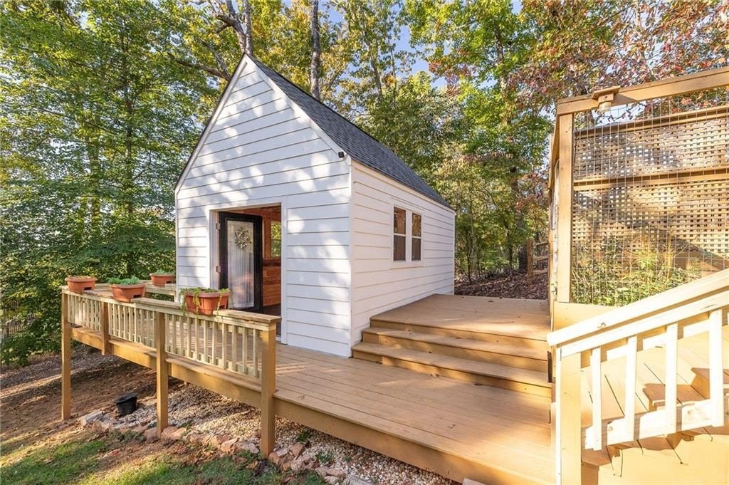 Welcome home to a peaceful retreat near Lake Lanier! Built in 2021, this thoughtfully designed home offers modern living in a quiet, rural setting. The property includes the adjoining lot at 5240 Laurel Lane, combining for a full acre of privacy and room to roam. Step inside to an inviting, light-filled interior with a clean, modern feel. The open kitchen features white cabinetry, granite countertops, stainless steel appliances, and a large pantry with space to add a mudroom. It connects seamlessly to the family room with backyard views, creating the perfect space for casual gatherings or relaxed evenings at home. Upstairs, the spacious primary suite offers a walk-in closet with a custom organization system and a spa-like bath with soaking tub, glass-enclosed shower, and double vanities. Two additional bedrooms and an oversized laundry room provide plenty of comfort and convenience for daily living. The unfinished terrace level adds over 1,100 square feet of potential, already framed and stubbed for a bedroom, bath, and recreation area. Whether you envision a guest suite, media room, or workspace, the possibilities are endless. Outside, enjoy a peaceful cul-de-sac location with a rocking-chair front porch and a fenced backyard with multi-level decking, ideal for entertaining or enjoying seasonal lake views. The custom garden shed, complete with French doors and loft, offers endless flexibility. Use it as a creative studio, home office, or workshop. The fenced garden area is ready for your next harvest and protected from wildlife. Recent updates include fresh interior paint (2025), a new multi-level deck with walkway to the garden shed (2023), a whole-house water filtration system with UV light (2022), and terrace-level waterproofing for a moisture-free environment (2022). Life here unfolds at a peaceful, easy pace. Mornings are quiet, evenings are calm, and nature surrounds you. Conveniently located near Lake Lanier, Don Carter State Park, Atlanta Botanical Gardens, and Riverbrook Village’s new Publix, this home offers the best of both worlds: rural tranquility and modern convenience.