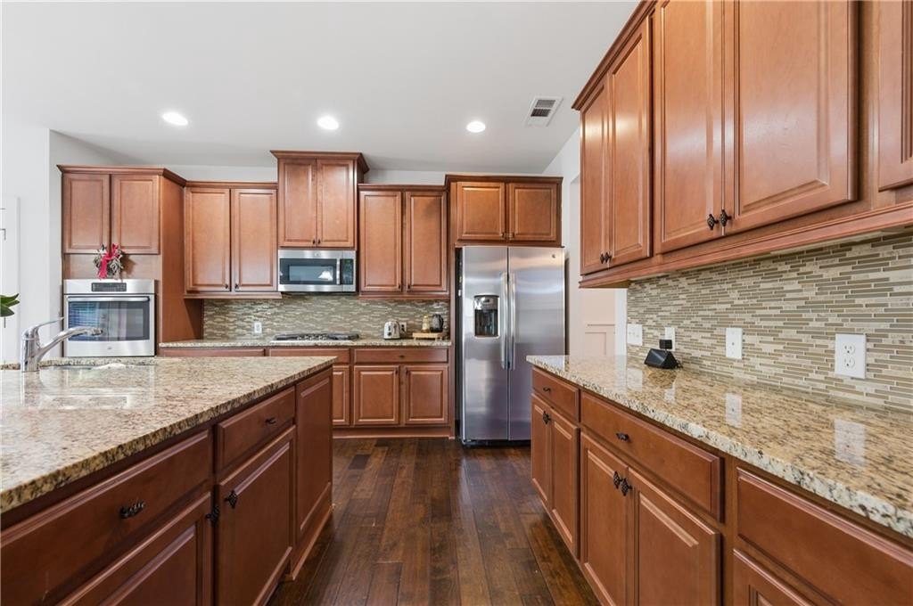 Step inside to find pristine white interiors and beautiful bamboo-style hardwood floors flowing throughout the main level. The bright, open kitchen is a true showpiece, complete with granite countertops, stainless steel appliances, and ample cabinet space - perfect for entertaining or gathering.