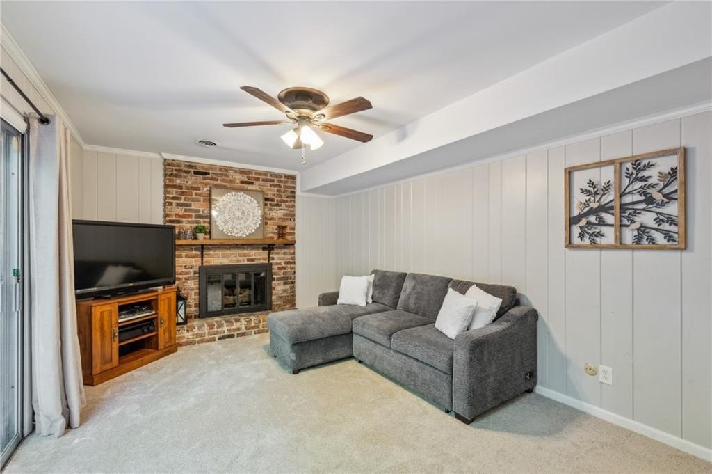 Over 2,000 sq ft of flexible space with a newer roof, HVAC, fresh interior paint, brand-new carpet, a cozy fireside family room, and a well-designed kitchen ready for your personal touch. The layout includes three bedrooms up and a fourth bedroom with bath on the daylight terrace level, perfect for guests or multi-use space.