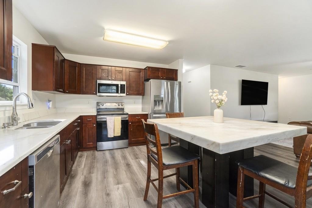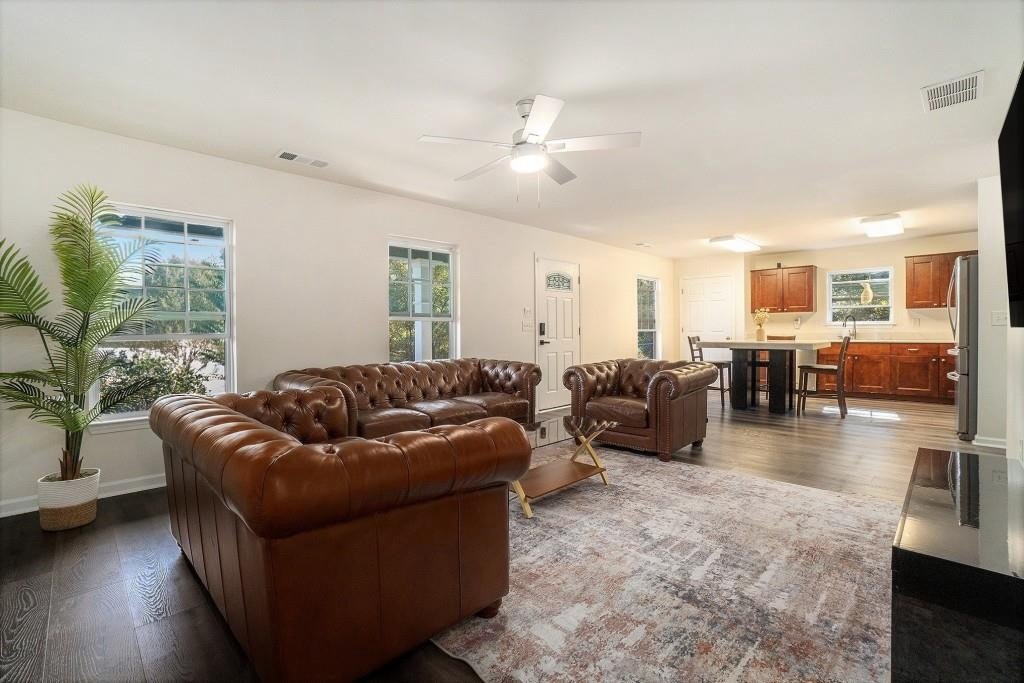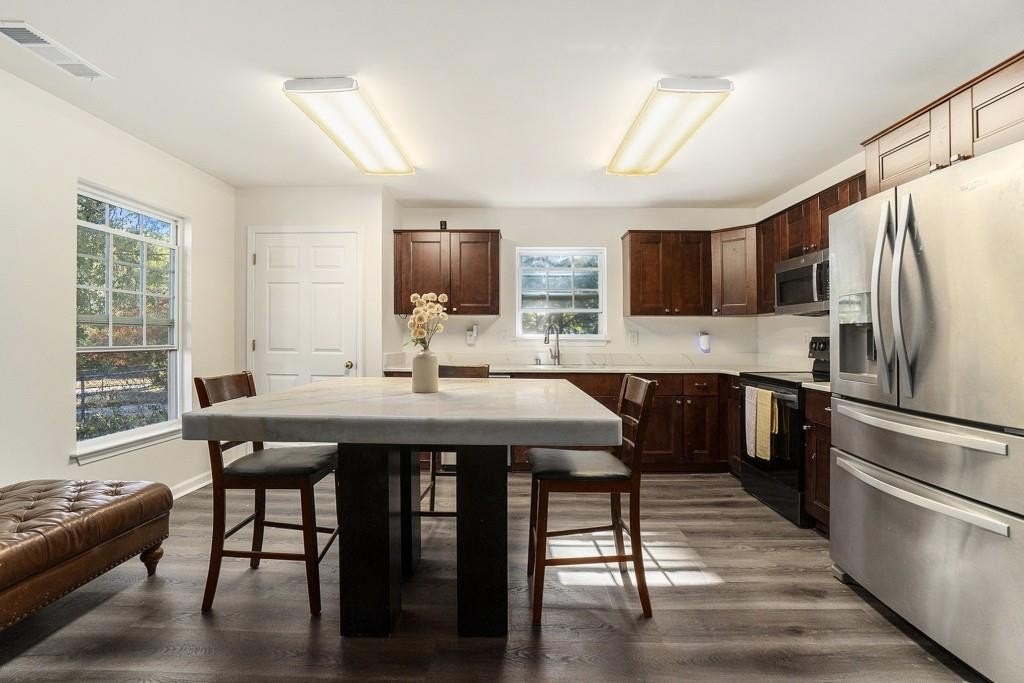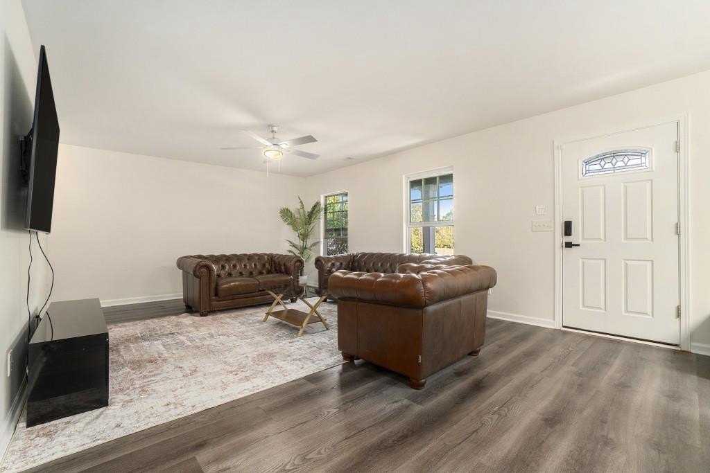 Updated Ranch in Austell! Enjoy the perfect blend of Comfort and Convenience just minutes from Shopping, Dining, and Entertainment with quick access to The Battery, Smyrna Market Village, the Westside, Downtown, and more. Step inside to discover Open-Concept Living featuring Dark Flooring throughout. The inviting Family Room flows seamlessly into the Eat-In Kitchen complete with Dark Cabinetry, Stainless Steel Appliances, and plenty of space for everyday dining or entertaining. Retreat to the Primary Bedroom offering a Private Ensuite Bathroom and Walk-In Closet. Two Additional Bedrooms share a Hall Bathroom, ideal for guests or family. Outside, unwind on the Covered Patio overlooking the Spacious, Flat Backyard perfect for relaxing, gardening, or play. A Move-In Ready Gem in a Prime Location!