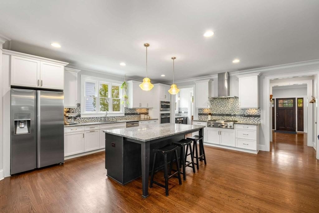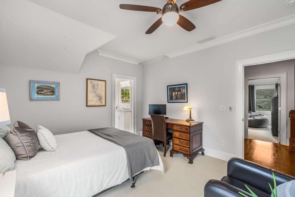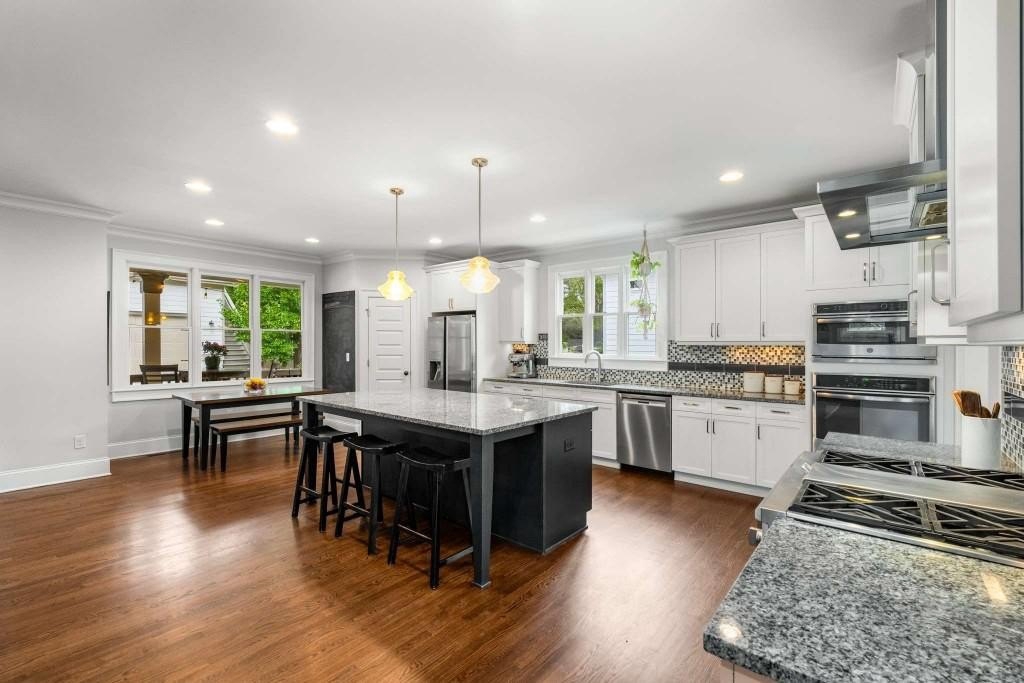 Welcome to this stunning home in the highly desirable Oakhurst neighborhood of Decatur, where timeless character meets modern living. This spacious 5-bedroom, 5.5-bath residence offers open-concept living with a seamless flow between the gourmet kitchen, living area, and formal dining room perfect for both entertaining and everyday life. The main level features gleaming hardwood floors, high ceilings, abundant natural light, and a dedicated office ideal for remote work. Enjoy three covered porches for year-round outdoor living. Upstairs, you'll find four generously sized bedrooms, each with an ensuite bath, plus an oversized laundry room with ample storage. The primary suite is a true retreat with two walk-in closets, a spa-inspired bath featuring a large rain shower and soaking tub, and a sunroom ideal for relaxing or the perfect workout/Peloton space. The oversized two-car garage includes built-in storage and a finished suite above, complete with one bedroom and one full bath perfect for guests, an au pair, or a college-aged child. Step outside to a fully fenced backyard oasis designed for entertaining and play, complete with a fire pit, bocce court, and raised vegetable gardens. Located in the heart of historic Oakhurst, this home is just moments from the neighborhood's vibrant village center filled with shops, restaurants, and art galleries, as well as highly rated Decatur schools. Enjoy the perfect blend of community spirit, walkability, and modern comfort this home truly has it all!