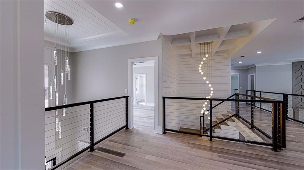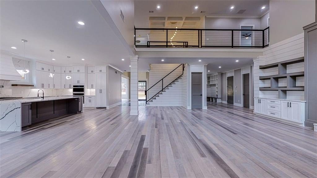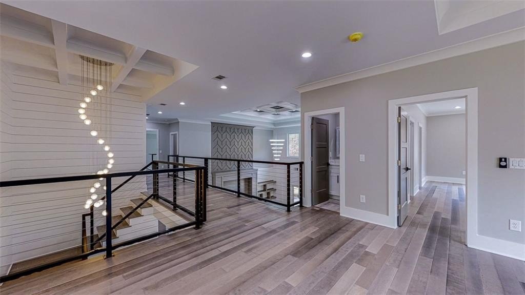 Ascending the floating staircase, the second level reveals a collection of oversized bedroom suites, each with soaring ceilings, custom closets, and individually designed baths that echo the home’s bespoke luxury. A dramatic loft provides an additional living retreat, complemented by a wet bar, powder room, and a secondary laundry suite that elevate convenience to an art form.