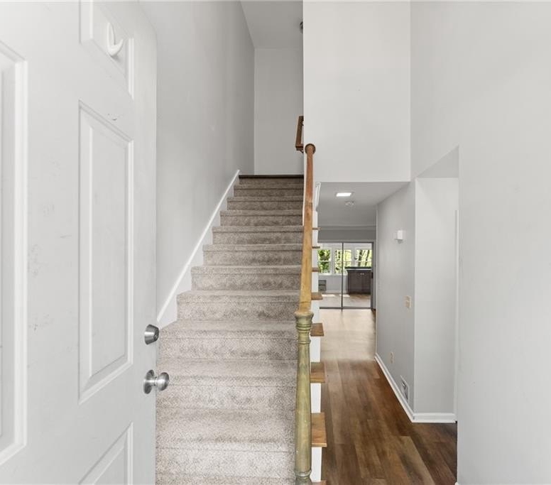 Welcome to Cinnamon Cove, a charming lakeside community on Lake Lanier! Nestled on a lot with peaceful wooded views and seasonal glimpses of the water, this townhome balances tranquility, functionality, and affordability. The main level offers a welcoming two-story foyer, a spacious living area, a bright sunroom overlooking the trees, an eat-in kitchen with newer appliances, and a convenient half bath. Upstairs, you'll find two generously sized bedrooms and a full bathroom. The finished walk-out basement takes this unit over the top! Ideal for a third bedroom, guest suite, or recreation space, with plumbing already in place for adding a full bath or kitchenette, complete with its own private entry. The Cinnamon Cove community offers low-maintenance living, where the HOA is responsible for handling lawn care and maintaining the property's exterior! You'll also have access to the community amenities, including a clubhouse, pool, and a private walking trail leading to the lake. Enjoy feeling tucked away while remaining just minutes from shopping, lakeside dining, Van Pugh Park, and Downtown Flowery Branch. Don’t miss this opportunity to enjoy lakefront living at an affordable price!