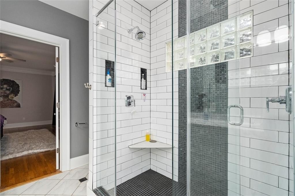 The main-level primary suite offers a large walk-in closet and spa-style bath with marble double vanity, frameless glass shower, and tile flooring. Two additional bedrooms, a hall bath, and laundry complete the main level. Upstairs, find a flexible loft space, the 4th bedroom, and a full bath — perfect for guests, a home office, or creative studio.