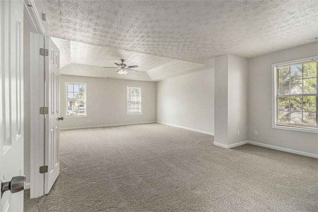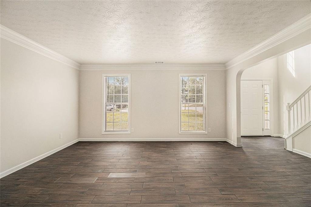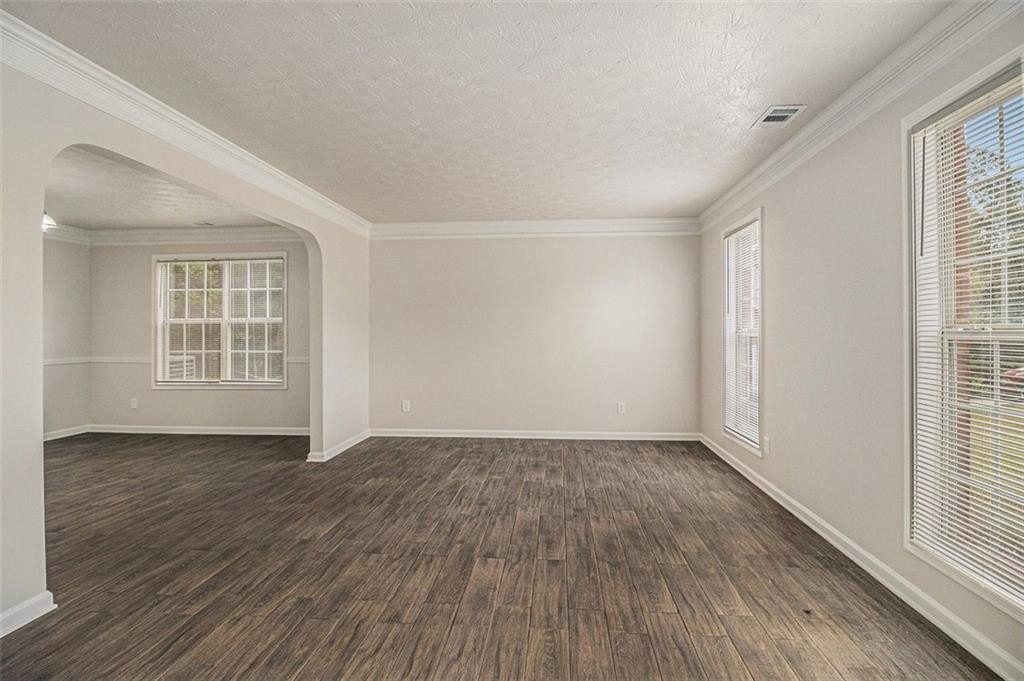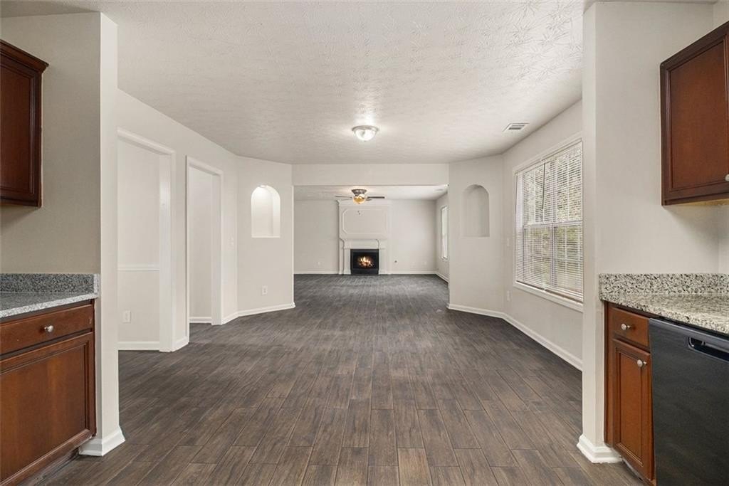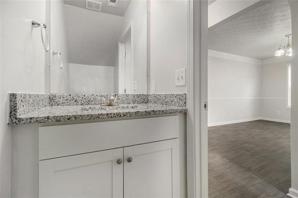 Fresh from a comprehensive update with new flooring, fresh paint, and granite countertops in kitchen, this 2,880-square-foot home on Silva Court delivers practical updates throughout. The 4-bedroom, 2.5-bath layout maximizes usable space with distinct living areas including a formal living room, separate dining room, and spacious family room with fireplace, providing flexibility for both entertaining and daily routines. The updated kitchen features granite countertops, rich wood cabinetry with walk-in pantry storage, and a generous breakfast nook with direct access to the patio and oversized backyard, creating an easy flow for indoor-outdoor living. Upstairs, the primary suite includes a walk-in closet and private bath with dual white vanities topped with granite, soaking tub, and separate shower. Three additional carpeted bedrooms share a second full bath upstairs, with the convenience of an upstairs laundry room eliminating trips between floors. The main level powder room adds functionality for guests and daily use. A two-car garage provides ample parking and storage. Recent mechanical updates provide peace of mind: the roof was replaced 8 years ago, water heater 3 years ago, and HVAC system 6 years ago, meaning major systems are already addressed. The Conley location offers quick access to both I-285 and I-675, with Hartsfield-Jackson Airport approximately 15 minutes south. Daily shopping is convenient with grocery stores and retail options along nearby Moreland Avenue and Highway 138. The established