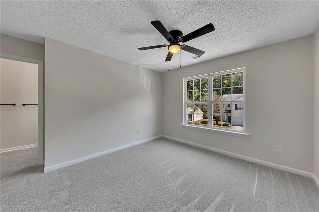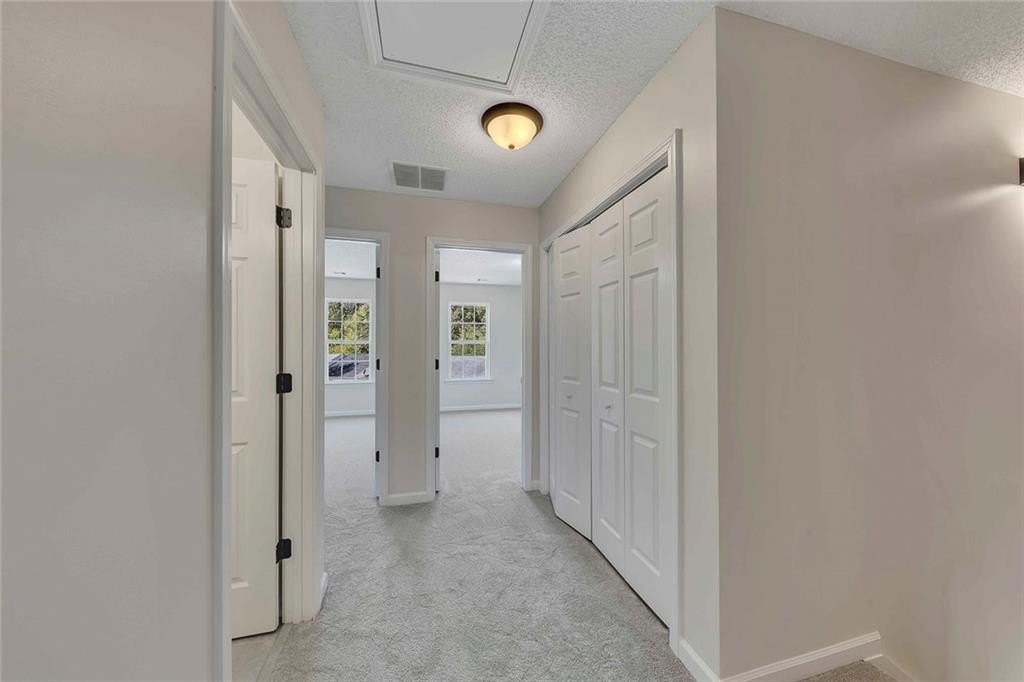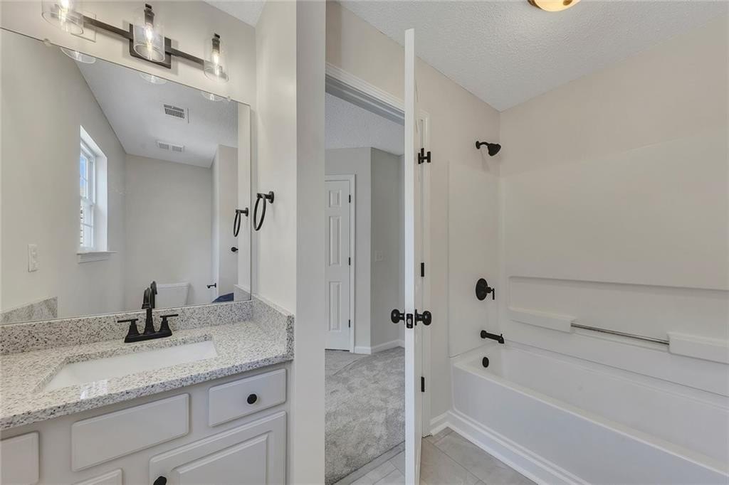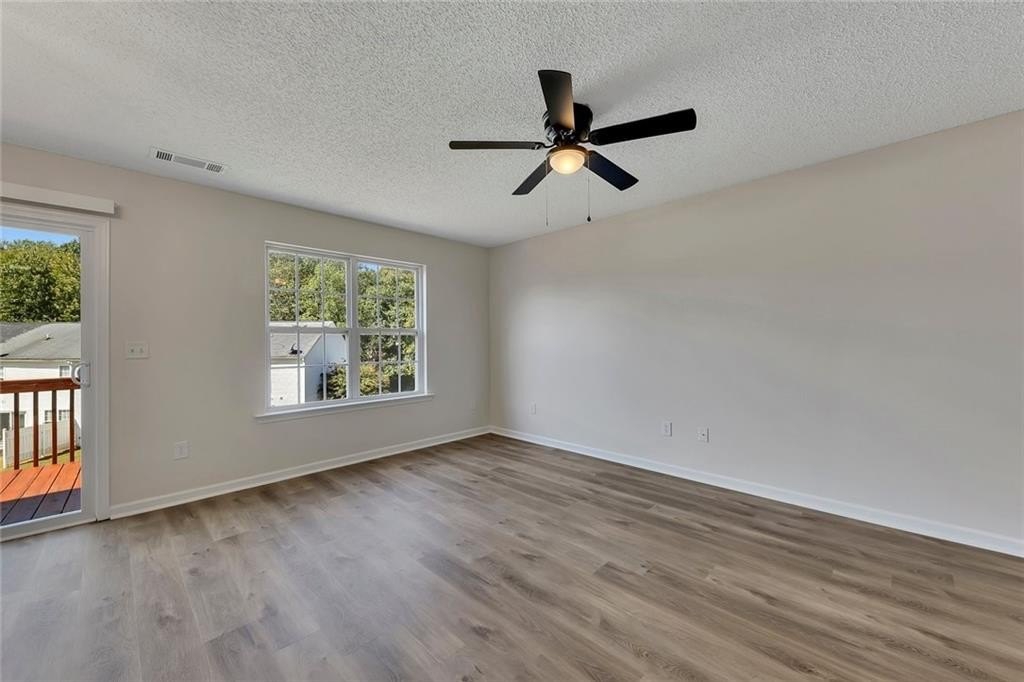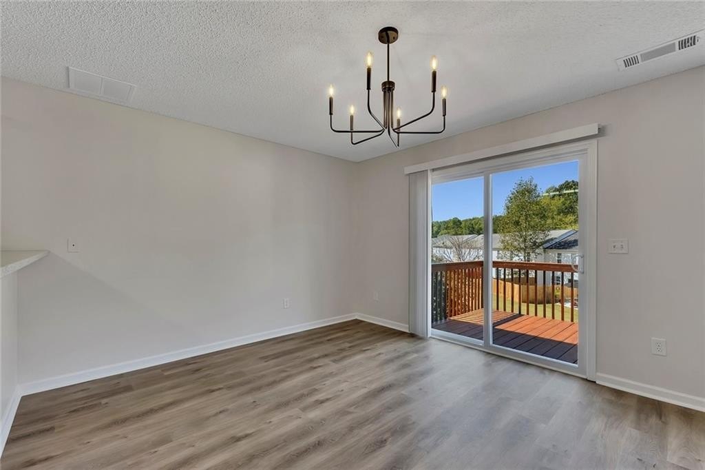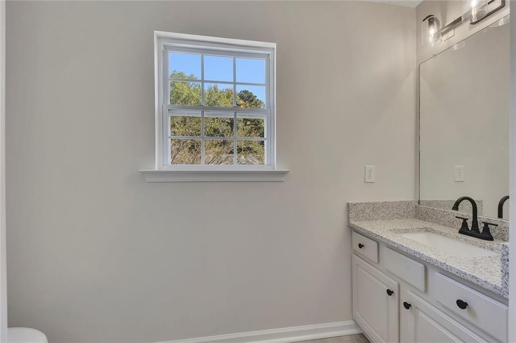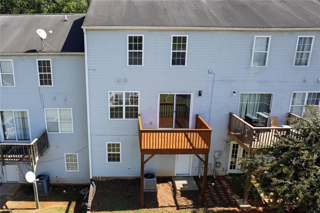 overlooks the back courtyard. Plenty of room on the main floor for a sizable living room as well as a dining room table. Tons of natural light and a back deck with a view make this the perfect home for entertaining and grilling out. Upstairs bathrooms have been upgraded with new granite countertops,