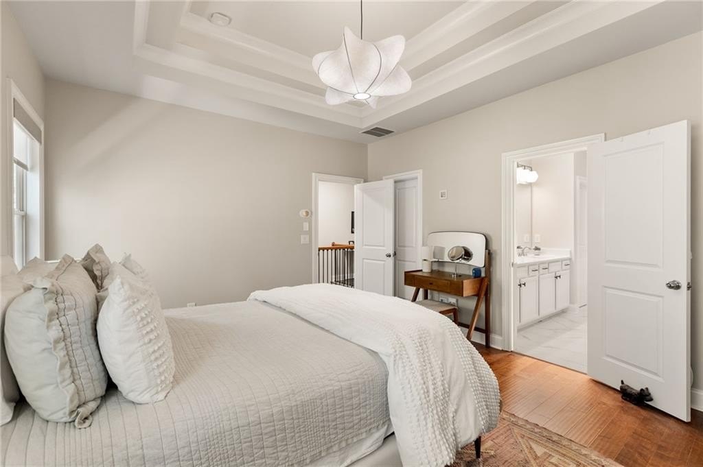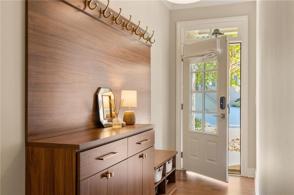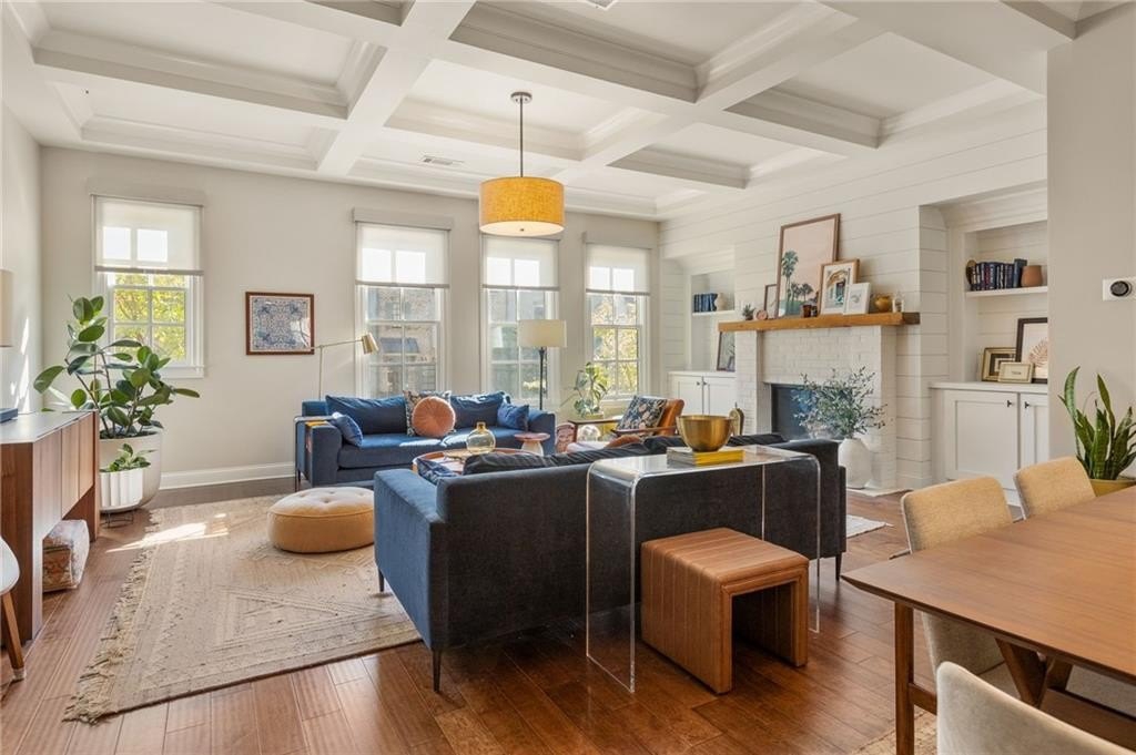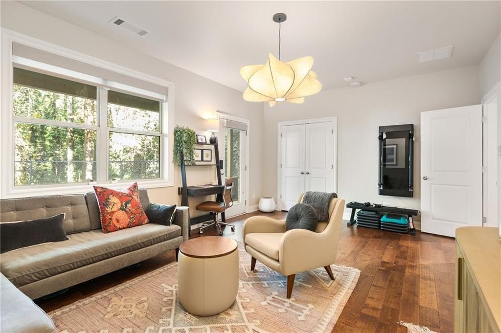 Step into a life made for entertaining at Skyland Brookhaven, where modern comfort meets timeless design just moments from the vibrant Dresden dining district. This elegant townhome was crafted with the entertainer in mind, offering a large open layout with clearly defined areas for dining and living. A wall of windows fills the living room with natural light, while a fireplace flanked by built-in bookshelves anchors the space with warmth and character. The chef’s kitchen flows seamlessly into the living and dining areas and features a large island perfect for gathering, premium cabinetry with pull-out shelving, and a custom California Closets pantry that makes both everyday living and hosting effortless. French doors open to a spacious deck overlooking peaceful greenspace, creating the ideal setting for morning coffee, weekend dinners, or evenings under the stars. Upstairs, the primary suite feels separate and serene, providing a private retreat with a custom California Closets walk-in, double vanity, soaking tub, and separate shower. Two additional bedrooms share a full bath and a dedicated laundry room, making daily life organized and convenient. The lower-level bedroom offers its own ensuite and walk-out access to the back patio and woods, providing a quiet, calming space perfect for guests, a home office, or a private hideaway. Thoughtful upgrades elevate every space, from premium manufactured wood flooring and upgraded lighting to custom shades and WiFi-enabled switches. A hard-wired internet extender ensures fast, seamless connectivity throughout the home, while alternating floor plans between units minimize noise transfer. Nestled on a peaceful, tree-lined street, Skyland Brookhaven delivers the perfect mix of connection and calm. Residents enjoy resort-style amenities including a pool, clubhouse, fitness center, and community park. Just beyond the neighborhood, Skyland Park offers walking trails, sand volleyball courts, and a dog park, giving even more options for outdoor enthusiasts. With a prime location just one mile from Downtown Brookhaven’s restaurants and shops, fifteen minutes to Buckhead or Midtown, and thirty minutes to Hartsfield-Jackson International Airport, this townhome makes it easy to enjoy the best of Atlanta living in one beautifully curated package.