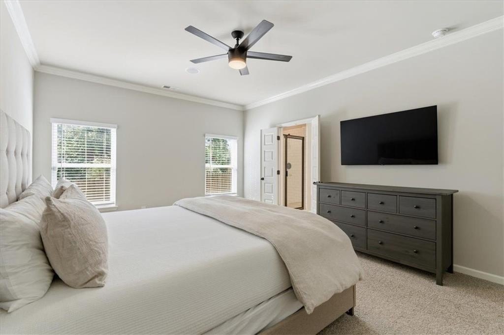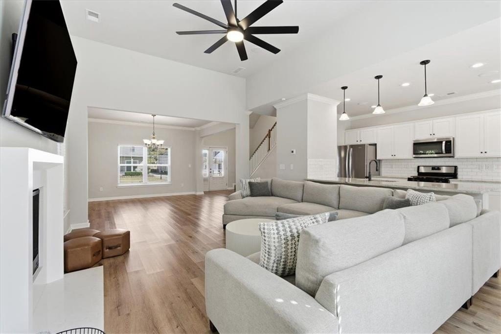 This meticulously maintained home sets the standard for pride of ownership, inside and out, every detail shines, and you won’t find a blade of grass out of place! Nestled on a quiet dead end street in a well kept neighborhood within the highly sought after Fayette County school district, it immediately impresses with its curb appeal and inviting presence. Step inside to be greeted by abundant natural light, soaring ceilings, and luxury vinyl plank flooring throughout. The open, airy floorplan flows seamlessly, creating spaces that are both stylish and comfortable. The updated kitchen features stainless steel appliances, granite countertops, ample cabinet space, and an eat-in breakfast area overlooking the great room, perfect for everyday living or entertaining. In the great room, an elegant marble fireplace invites you to cozy up on chilly evenings with a cup of cocoa and your favorite movie. The formal dining room offers plenty of space for gatherings, while the primary en suite on the main level serves as a private retreat with a massive walk in closet and an updated bath with double vanity, tiled walk in shower, and relaxing soaking tub. Upstairs, a versatile loft area provides an ideal reading nook or home office, while two spacious bedrooms share a convenient Jack and Jill bathroom with double vanity. An additional secondary en suite with vaulted ceilings and walk in closet offers the perfect setup for guests, teens, or in-laws. Even the garage impresses with sealed epoxy floors, upgraded paneling, and LED lighting for a clean, finished look. With major systems, including the roof, HVAC, and dual water heaters, only five years old, this home combines modern comfort with peace of mind. All this is set within Fayetteville, a community that blends historic charm with modern convenience. Just south of Atlanta, the area offers a revitalized downtown, a thriving film industry, and a high quality of life. Residents enjoy local gems like Starr’s Mill Park, with its scenic red mill and waterfall, and Fun Spot America Theme Park for family fun. Fayetteville is home to Trilith Studios, a major film campus, and nearby The Town at Trilith, a walkable “live-work-play” community with boutique shops, restaurants, and creative spaces. Downtown blends history, culture, and commerce along Main Street, while Fayette Pavilion, Georgia’s largest open air shopping center, provides even more shopping, dining, and entertainment options, all just 30 minutes from Downtown Atlanta and Hartsfield-Jackson Airport. This home truly has it all, comfort, style, and a location you’ll love. The only thing missing is you!