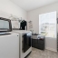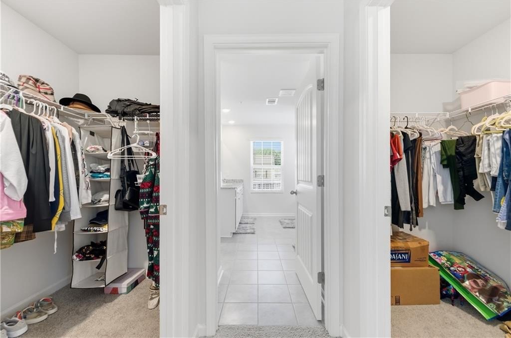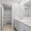 cabinetry, a separate toilet/shower area, and a cultured marble countertop. A large walk-in laundry room and a deep linen closet add