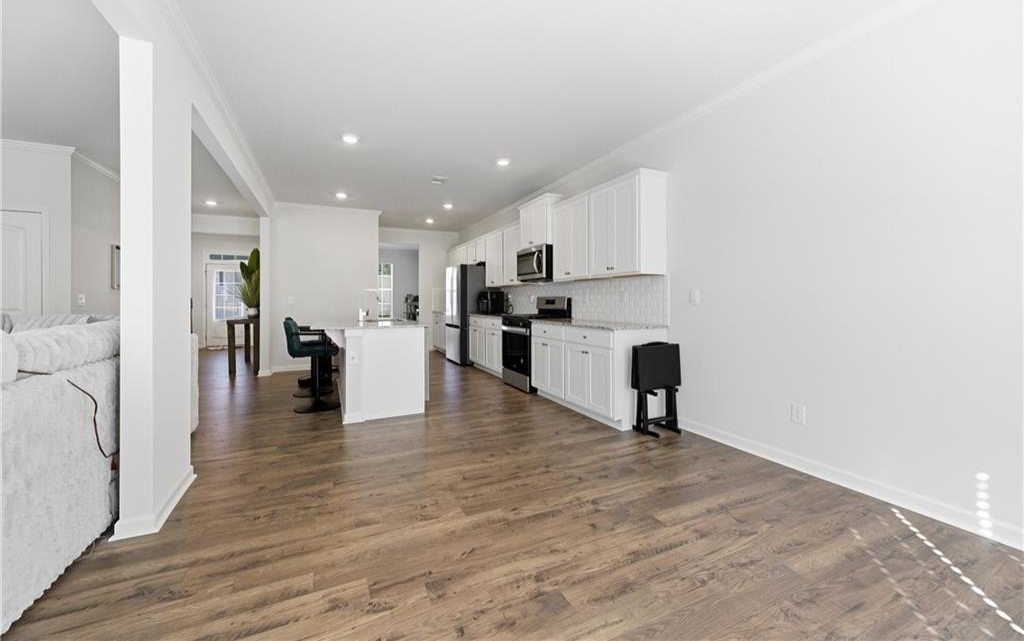stair spindles, recessed lighting, and a two-car garage on the main level. Barely over a year old, this home feels like new and is located in