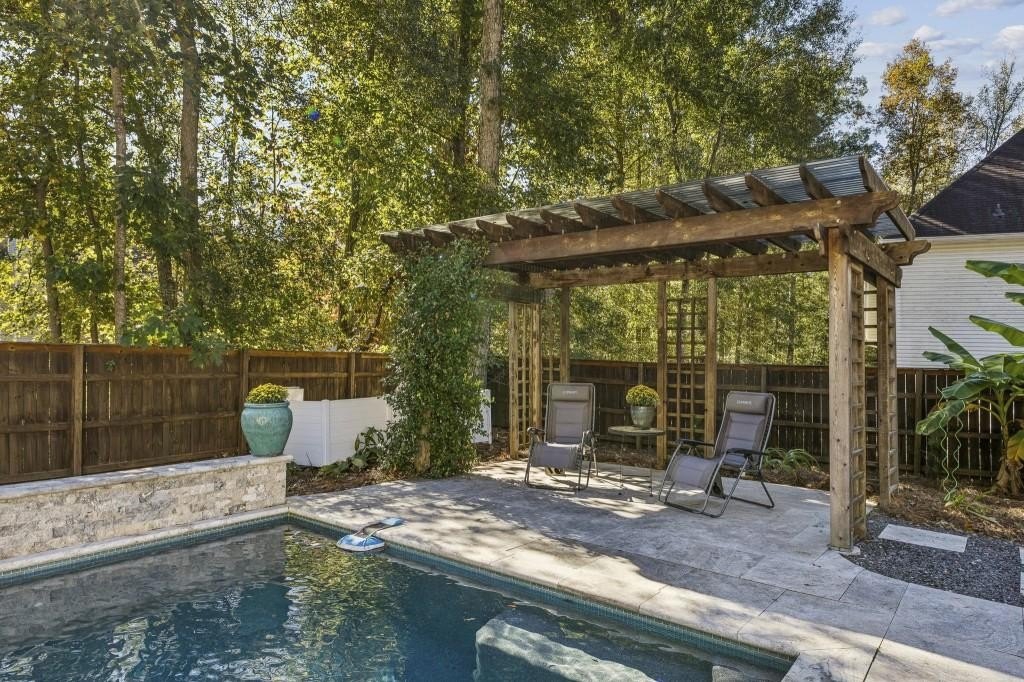 Beautifully Updated Home with Backyard Oasis in Stockbridge! Discover this Meticulously Upgraded Home tucked away on a Quiet, Wooded 1.3 Acre Lot in the desirable Summer Leigh neighborhood. Set back from the street, the Long Driveway crosses a Charming Creek, leading to a private retreat surrounded by nature. A Covered Front Porch welcomes you into a Light-Filled Interior featuring High Ceilings, Crown Molding, and Stranded Bamboo Flooring throughout the main living areas and bedrooms. The Open-Concept layout seamlessly connects the Dining Area, Fireside Family Room, and Remodeled Kitchen complete with Custom Cabinetry, Quartz Countertops, an Induction Stove, Convection Oven, and Soft-Close Storage. The Primary Suite offers a spa-like retreat with a Remodeled Bathroom, modern finishes, and an organized walk-in closet featuring Elfa Shelving. Two additional Bedrooms share a Full Bathroom on the Main Level. Upstairs, you'll find a versatile Bonus Room above the Garage ideal for a Guest Suite, Playroom, or Home Office. Step Outside to your Backyard Oasis, featuring a Sparkling In-Ground Pool with Sheer Descent Fountains and Bubblers, a Travertine Split-Face Pool Wall and Deck, and a relaxing Saltwater Hot Tub. A charming Cedar Pergola nearby offers the perfect spot for lounging or outdoor dining.Surrounded by mature trees, this space offers the perfect blend of luxury and tranquility. Additional highlights include a Lenox Energy-Efficient Heat Pump and Built-In Garage Cabinets for extra storage. Conveniently located near top-rated schools, shopping, dining, and less than two miles from I-75, this home combines Comfort, Convenience, and Modern Design in one of Stockbridge's most desirable communities.