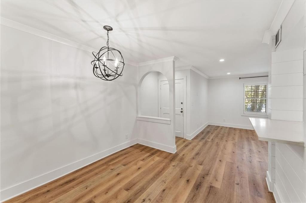 Complete Renovation in 2022, in a great location within the community! The mid level floor unit allows for privacy and an abundance of natural light with wooded views! Close to the front of the neighborhood so you can walk to the Cafe, pools, golf course, gym & tennis. Top-rated schools, close to private schools. Minutes to 75, 285, 85 & 25 minutes to the airport. The kitchen was opened up with high-end finishes. This property was a one-bedroom with a second full bathroom added. The home was completely gutted in 2022 and renovated with high-end finishes throughout.