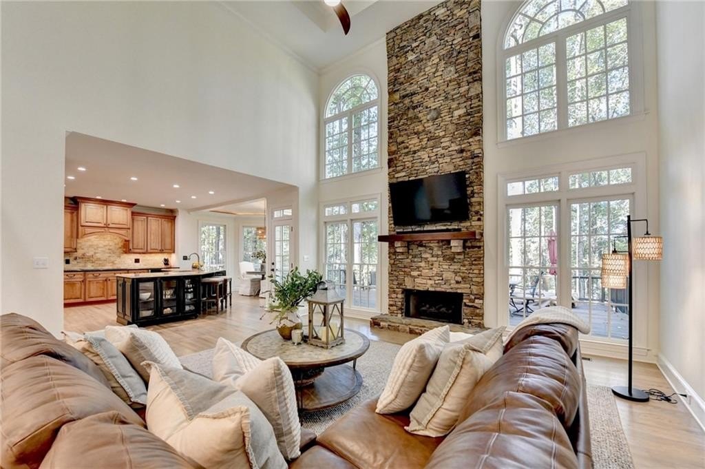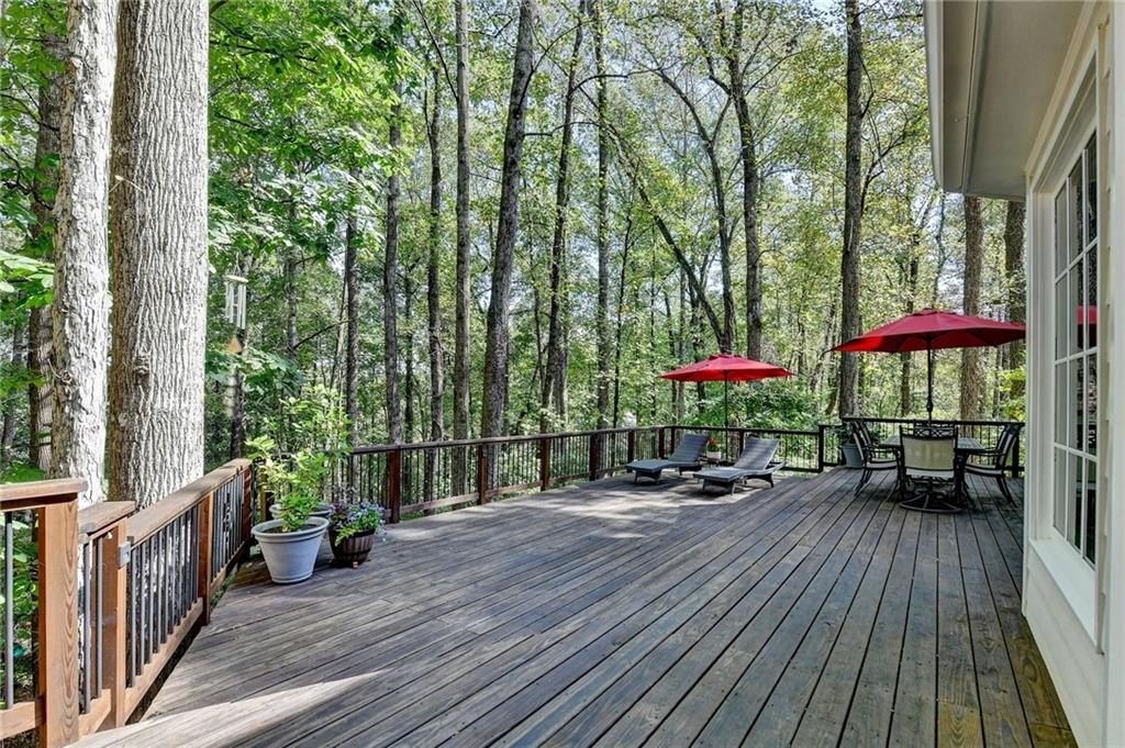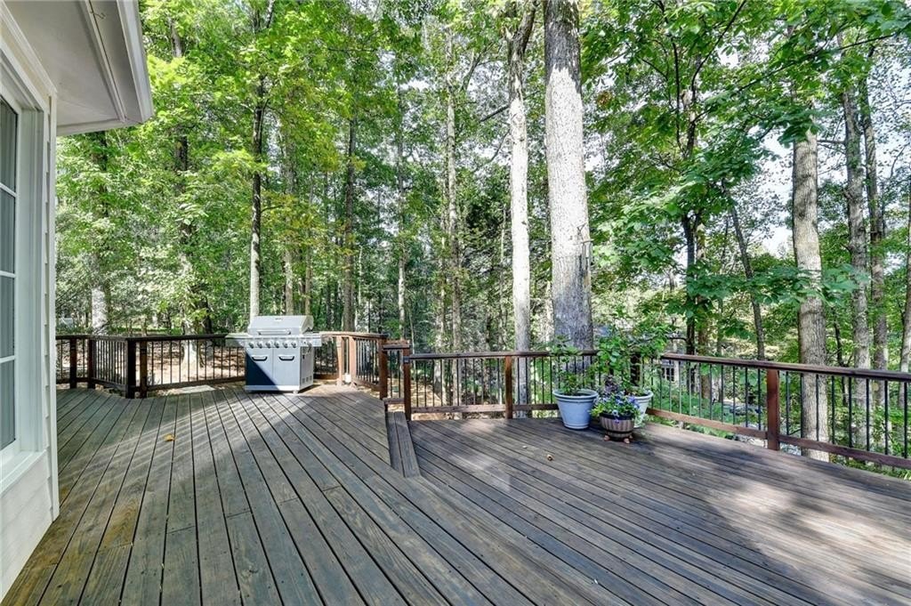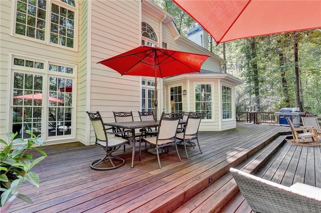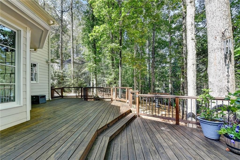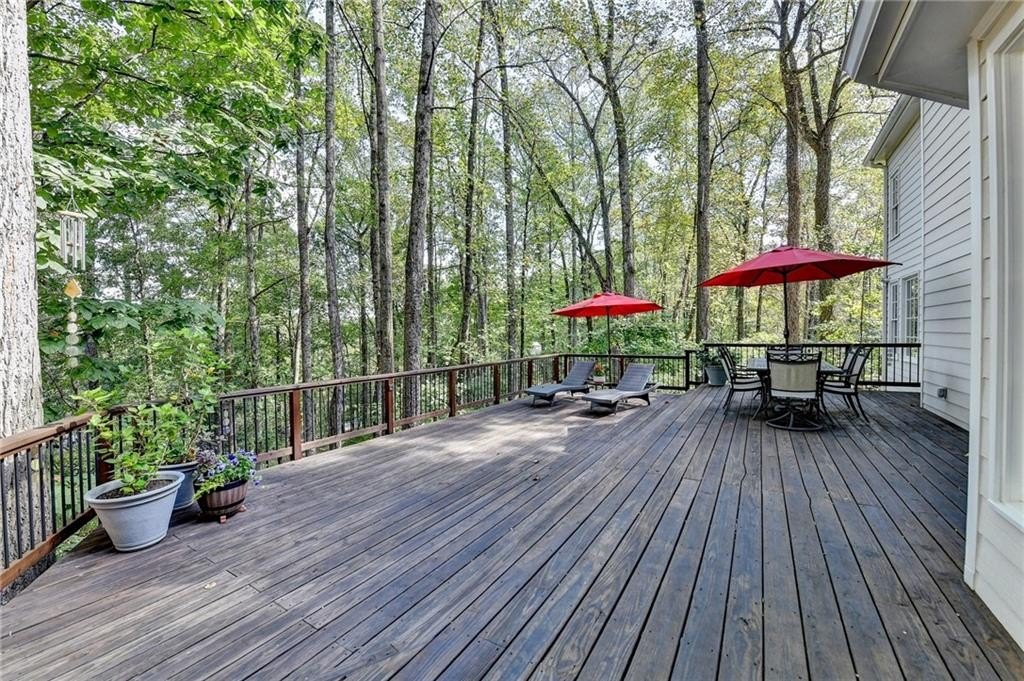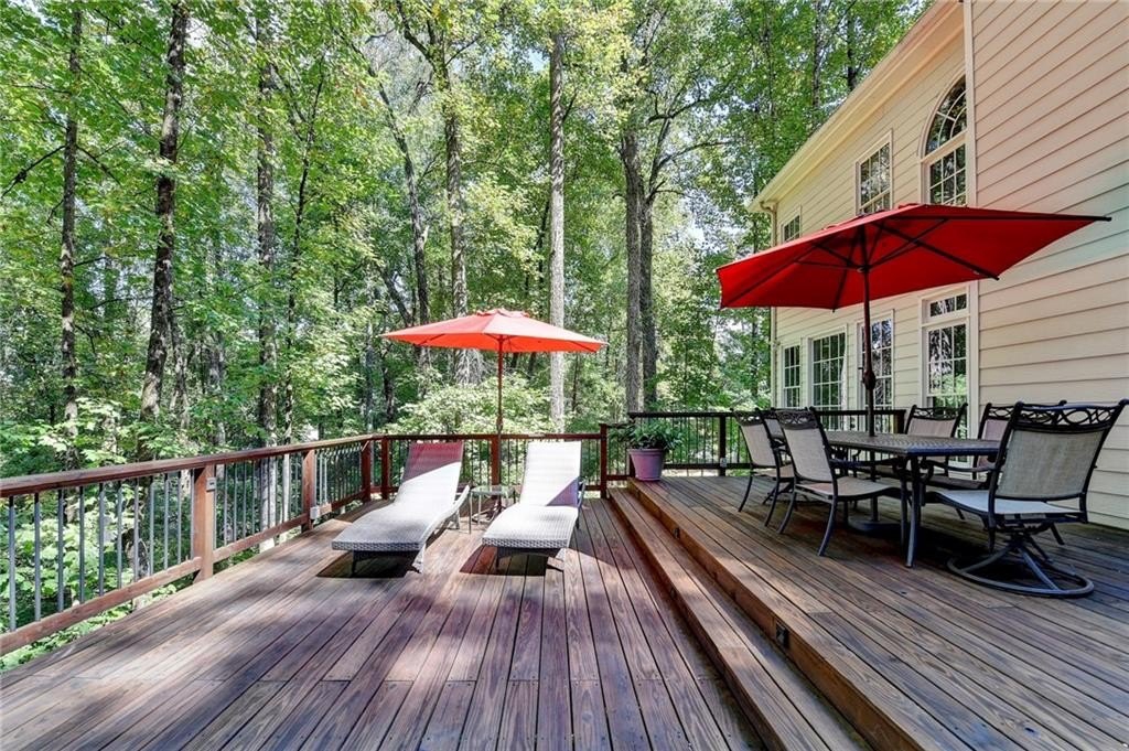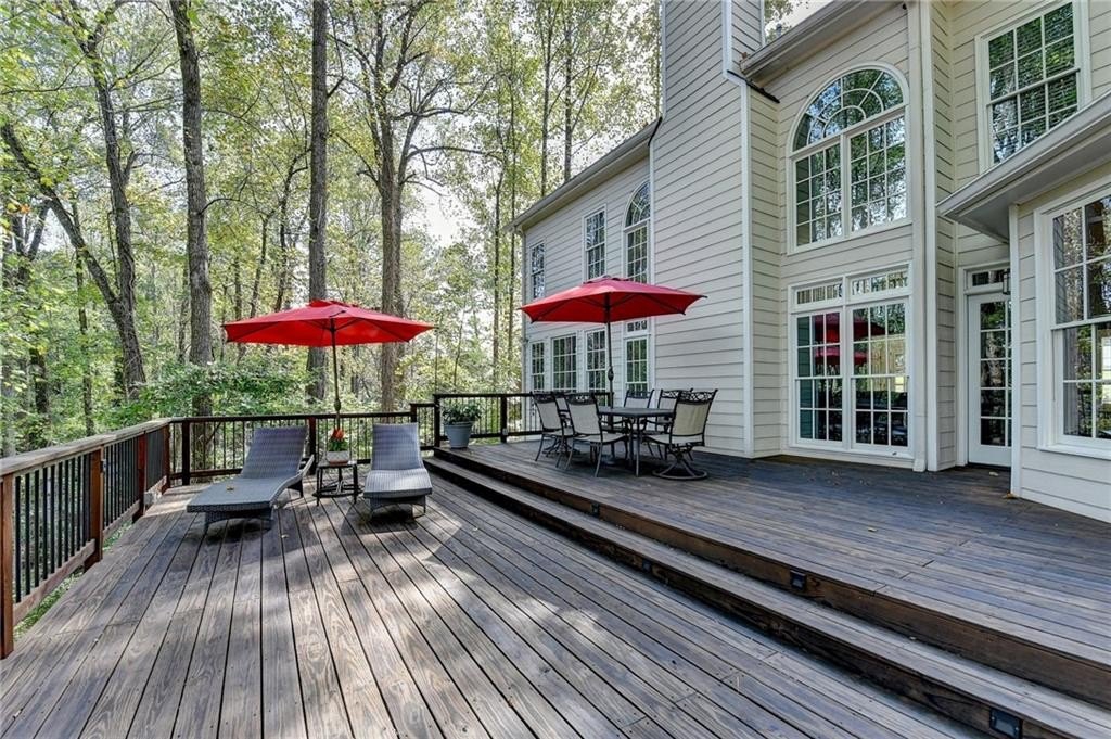 Wow! This home is truly a masterpiece on a quiet cul de sac in the heart of Johns Creek… It has been impeccably maintained and wonderfully updated. You will fall in love with the open flow of the home and its dramatic features. Refinished hardwoods grace the main level along with freshly painted walls, new designer lighting and new stair spindles. The huge two-story family room has such a presence with the dramatic floor to ceiling stacked stone fireplace and custom wood mantle. You are steps away from the oversized custom kitchen with gorgeous cabinets, pull out drawers, large pantry, abundant storage, under counter lights, pot filler as well as massive island with lighted glass cabinetry that showcases your treasures. The eat in kitchen enjoys so much natural light and overlooks the private backyard and incredible deck. You will absolutely adore spending time on TWO spectacular decks which were rebuilt in 2019 and re-stained in 2025. The main level deck offers sooo much space to relax and entertain. Imagine the parties you can host here! The second deck is off the terrace level. Upstairs you will enjoy an oversized primary suite with sitting area and fireplace, large bath and spacious closet. Three additional secondary bedrooms and two full baths round out the second floor. The terrace level boasts new LVP floors, special acoustic tiles in the media room, full bath with quartz counters and of course the beautiful lower deck. The home features NEW windows across the back of the home, gutter guards, irrigation in the front, LED lighting throughout, two 50 gallon water heaters (2019), newer siding back of home, and NEW DRIVEWAY (2024) It is RARE to find a home as move in ready as this one!